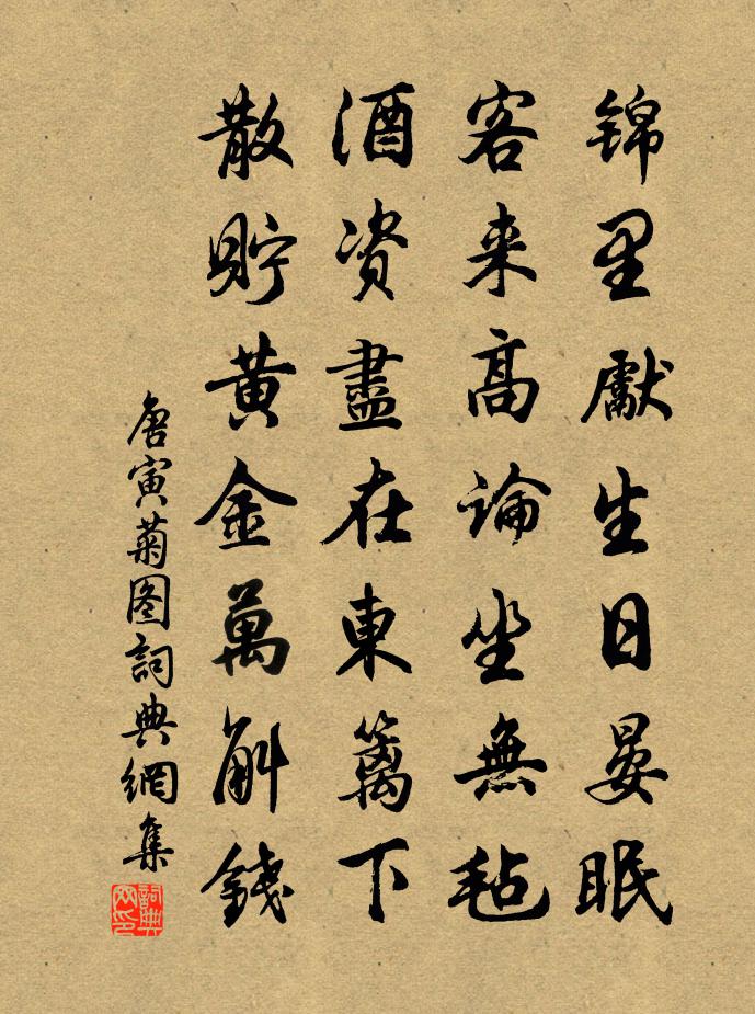 詩詞名句歷史字典書法欣賞書法字典國語詞典說文解字康熙字典古漢語字典標 題 作 者 詩 句 菊圖作者:唐寅 朝代:明代菊圖原文錦里先生日晏眠,客來高論坐無氈。酒資盡在東籬下,散貯黃金萬斛錢。詩詞問答問:菊圖的作者是誰?答:唐寅問:菊圖寫於哪個朝代?答:明代問:唐寅的名句有哪些?答:唐寅名句大全唐寅菊圖書法欣賞菊圖書法作品詩詞推薦贈許紒岩林尚仁〔宋代〕年齒未三十,清名已照人。才高猶苦學,俸薄不言貧。留客醉終日,愛花吟過春。自憐閒未得,滿面撲京塵。訪楊湖陰不遇因題其門陳輔〔宋代〕北山松枌未飄花,白下風輕麥腳斜。身似舊時王謝燕,一年一度到君家。洞仙歌朱彝尊〔清代〕三竿日出,愛調妝人近。鳧藻熏爐正香潤。看櫻桃小注,桂葉輕描。圖畫裡只少耳邊朱暈。金簪二寸短,留結殷勤游虞山頂維摩院周才〔宋代〕西風近重陽,青女作奇釀。高人事幽討,木落秋可望。山溪步屈曲,策以九節杖。林空眼界寬,雲深開法藏。歡迎二十日步上方廣寺觀蓮華峰雲氣異甚項安世〔宋代〕曉發名溪莊,午飯馬跡庫。下車著芒鞋,扶杖陟罔路。碾槽深側足,石磴高舉步。初登黃茅嶺,稍入青箬霧。苔深文成王安石〔宋代〕文成五利老紛紛,方丈蓬萊但可聞。萬里出師求寶馬,飄然空有意凌雲。真廟輓辭梅詢〔宋代〕愁煙暗鼎湖,龍馭入清都。陟降紅雲陛,陪歆赤帝雲。亮陰真聖嗣,遺詔盡嘉謨。尚見孤臣泣,蒙知直殿廬。喜雨和史司直二首吳潛〔宋代〕六丁海面揭封回,天上屯雲撮得來。連月不曾聽澍雨,今年方始見轟雷。定知水畎移秧插,底用泥塗把谷栽。閱說章華台碑高華〔宋代〕故國興亡數,勤民土木嘉。廢台稱是楚,辨物愧非華。敬賦虛齋孫君容膝陳著〔宋代〕雲連屋不居,三閒葺茅茨。田園非不寬,一畝環竹籬。楚楚山下花,湛湛池邊□。丈室南坡□,容膝以扁之。誰謂幽居劉應時〔宋代〕煙重柳腰困,雨肥梅臉皴。夜窗無銷鑰,晨氣濕衣巾。日晏猶便睡,犬鳴知有人。西家新釀熟,祀灶請比鄰。雪堂仍舊老師和予送可師新字韻見招復作五首釋慧空〔宋代〕不觸波瀾手,而彰名句身。向來天上寺,得此眼中人。一別湘湖路,三回嶺海春。何時清夜坐,聽我話韶新。句高堯輔〔宋代〕一枕寒聲湘浦雨,滿窗秋色洞庭煙。秦淮馬之純〔宋代〕城中那有大川行,惟有秦淮入帝城。十里牙檣並錦纜,萬家碧瓦與朱甍。船多直使水無路,人鬧不容波作聲。流到烏江泛舟寓目賀鑄〔宋代〕滄江浩渺寄星槎,望極紛紛兩眼花。但見潮頭澍木杪,直疑山背落天涯。鴟夷信得平生樂,仲御尤宜抵死夸。倉父再和宿囊山三首劉克莊〔宋代〕恰似病沙門退院,又如老禪錄歸農。素無才調宴三閣,不願歌詞傳六宮。萬首漏名宗派農,百年占籍醉鄉中。暮齡點絳唇王十朋〔宋代〕畏日炎炎,梵香一炷熏亭院。鼻根充滿。好利心殊淺。貝葉書名,名義誰能辨。西風遠。勝鬟不見。喜見瓊花面。過玉林魏慶芝〔宋代〕一步離家是出塵,幾重山色幾重雲。沙溪清淺橋邊路,折得梅花又見君。茅李嶠〔唐代〕楚甸供王日,衡陽入貢年。麏包青野外,鴟嘯綺楹前。堯帝成茨罷,殷湯祭雨旋。方期大君錫,不懼小巫捐。別趙李曹蕭元之〔宋代〕蓮幕皆佳士,如君淡素何。圄空公事少,官滿薦書多。憂國關豐歉,籌邊定戰和。艱難別知己,吾道欲滄波。名句推薦諸葛大名垂宇宙,宗臣遺像肅清高。杜甫《詠懷古蹟五首·其五》 兩句三年得,一吟雙淚流。賈島《題詩後》 君子愛財,取之有道。佚名《增廣賢文·上集》 弓背霞明劍照霜,秋風走馬出鹹陽。令狐楚《少年行四首·其三》 盡人事以聽天命。李汝珍《鏡花緣·第六回》 相逢喚醒京華夢,吳塵暗斑吟發。詹玉《齊天樂·送童瓮天兵後歸杭》 見人善,即思齊。縱去遠,以漸躋。李毓秀《弟子規·信》 三百年間同曉夢,鐘山何處有龍盤。李商隱《詠史二首·其一》 洛陽親友如相問,一片冰心在玉壺。王昌齡《芙蓉樓送辛漸》 看朱成碧思紛紛,憔悴支離為憶君。武則天《如意娘》