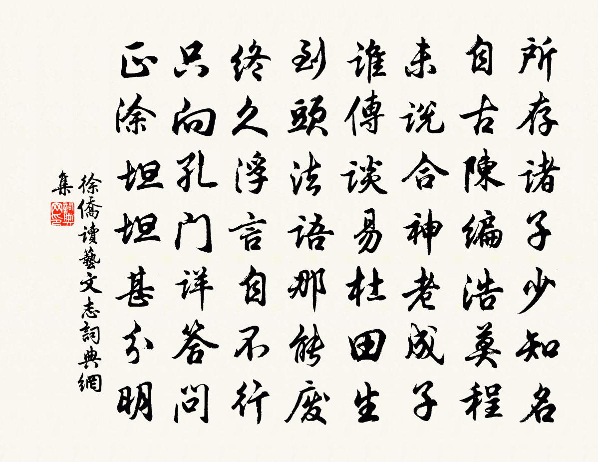 詩詞名句歷史字典書法欣賞書法字典國語詞典說文解字康熙字典古漢語字典標 題 作 者 詩 句 讀藝文志作者:徐僑 朝代:宋代讀藝文志原文所存諸子少知名,自古陳編浩莫程。未說合神老成子,誰傳談易杜田生。到頭法文那能廢,終久浮言自不行。只向孔門詳答問,正塗坦坦甚分明。詩詞問答問:讀藝文志的作者是誰?答:徐僑問:讀藝文志寫於哪個朝代?答:宋代徐僑讀藝文志書法欣賞讀藝文志書法作品詩詞推薦讀少陵詩陳棣〔宋代〕建安七子文,騷雅生贅癘。除苛起膏肓,公為第一流。滿朝競飛翔,惟公獨淹留。平生一嚴武,幾成鞭虎頭。定知少婦遊春詞施肩吾〔唐代〕簇錦攢花鬥勝游,萬人行處最風流。無端自向春園裡,笑摘青梅叫阿侯。浣溪沙張泌〔唐代〕鈿轂香車過柳堤,樺煙分處馬頻嘶,為他沉醉不成泥。花滿驛亭香露細,杜鵑聲斷玉蟾低,含情無語倚樓西。馬上十五夜月色皦然有頃雲生遂不復見陸游〔宋代〕北望但空闊,南望橫群山。青天無翳行素月,寥寥永夜非人間。九醞漿成老仙醉,六銖衣薄天宮寒。翠眉真人不火同仲達雪後踰小山游蔡氏園得紅梅數枝奇絕因張耒〔宋代〕與君陟巘踏春泥,邂逅紅梅得一枝。失卻孤山風露格,卻成卯酒醉冰肌。賞春宋度宗〔宋代〕珠簾翠幕千門曉,麗日和風萬國春。乍雨乍晴雖莫測,無非天地發生仁。西江月(腰痛,舊傳陳復齋名方,歲久失之)劉克莊〔宋代〕思邈方書去失,休文老病來攻。新年筋力太龍鍾。腰似鐵錨兒重。雅拜怎生搢笏,徐行也要扶筇。田翁邀飲不能從清平樂 壽彬齊四月二十八日陳櫟〔元代〕清和天氣。三莢萱猶翠。恰喜先生初度至。近迓薰弦佳致。幾年人物彬彬。文華質實惟均。壽宿臨之在上,龍溪文吊李翰林曹松〔唐代〕李白雖然成異物,逸名猶與萬方傳。昔朝曾侍玄宗側,大夜應歸賀監邊。山木易高迷故壟,國風長在見遺篇。投金送程、劉二侍郎兼獨孤判官赴安西幕府李白〔唐代〕安西幕府多材雄,喧喧惟道三數公。繡衣貂裘明積雪,飛書走檄如飄風。朝辭明主出紫宮,銀鞍送別金城空。天外昔與微之在朝日同蓄休退之心迨今十年…且結後期白居易〔唐代〕往子為御史,伊余忝拾遺。皆逢盛明代,俱登清近司。予系玉為佩,子曳繡為衣。從容香菸下,同侍白玉墀。朝見題畫四首唐寅〔明代〕雪滿梁園飛鳥稀,暖煨榾柮閉柴扉。瓦盆熟得松花酒,剛是溪丁拾蟹歸。進讀唐書終帙宋庠〔宋代〕隋室重氛極,唐家景命新。地歸裂殘壤,天洗戰餘塵。遂納諸戎貢,爭陪二月巡。瀛洲登俊老,煙閣盡名臣。輕重送楊山人歸嵩陽高適〔唐代〕不到嵩陽動十年,舊時心事已徒然。一二故人不復見,三十六峰猶眼前。夷門二月柳條色,流鶯數聲淚沾臆。鑿井沁園春 嘲昆季析居凌雲翰〔元代〕樹上凌霄,堂前紫荊,秋來尚芳。柰牝雞晨語,**憔悴,妖狐晝嘯,鴻雁分張。仁智匪周,喜憂非舜,一旦天倫酬友人見寄新文孟郊〔唐代〕為客棲未定,況當玄月中。繁雲翳碧霄,落雪和清風。郊陌絕行人,原隰多飛蓬。耕牛返村巷,野鳥依房櫳。我無生查子(和李商老)謝薖〔宋代〕情親難語離,且盡玻璃盞。雙鯉有來時,莫使音書緩。征驂去若飛,不道家山遠。相見小馮君,笑語迎歸雁。郴江百詠並序孤山阮閱〔宋代〕瘴山蠻嶺斗嵯峨,高可躋登不可磨。萬岫千岩皆闒茸,一峰孤秀不如多。江城子(贈舉之)洪适〔宋代〕冥冥雲嶼兩經秋。落霞收。斷煙留。小閣涼生,清馥凝金虬。乘興開顏那草草,煩玉腕,舉瓊舟。明年此日楚江頭偈頌九首釋如淨〔宋代〕打破黑漆桶,十方空索索。不受靈山記,安居大圓覺。名句推薦此身如傳舍,何處是吾鄉。蘇軾《臨江仙·送王緘》 翻空白鳥時時見,照水紅蕖細細香。蘇軾《鷓鴣天·林斷山明竹隱牆》 霸圖今已矣,驅馬復歸來。陳子昂《燕昭王》 一字無題外,落葉都愁。張炎《八聲甘州·記玉關踏雪事清游》 用天之道,分地之利,謹身節用,以養父母,此庶人之孝也。孔子及其弟子《孝經·庶人》 春酒香熟鱸魚美,誰同醉?纜卻扁舟篷底睡。李珣《南鄉子·雲帶雨》 飛鴻過也。萬結愁腸無晝夜。蔣氏女《減字木蘭花·題雄州驛》 漠漠蕭蕭,香凍梨花雨。吳大有《點絳唇·送李琴泉》 金槳木蘭船,戲采江南蓮。劉孝威《採蓮曲·金槳木蘭船》 但使情親千里近,須信。無情對面是山河。辛棄疾《定風波·席上送范廓之游建康》