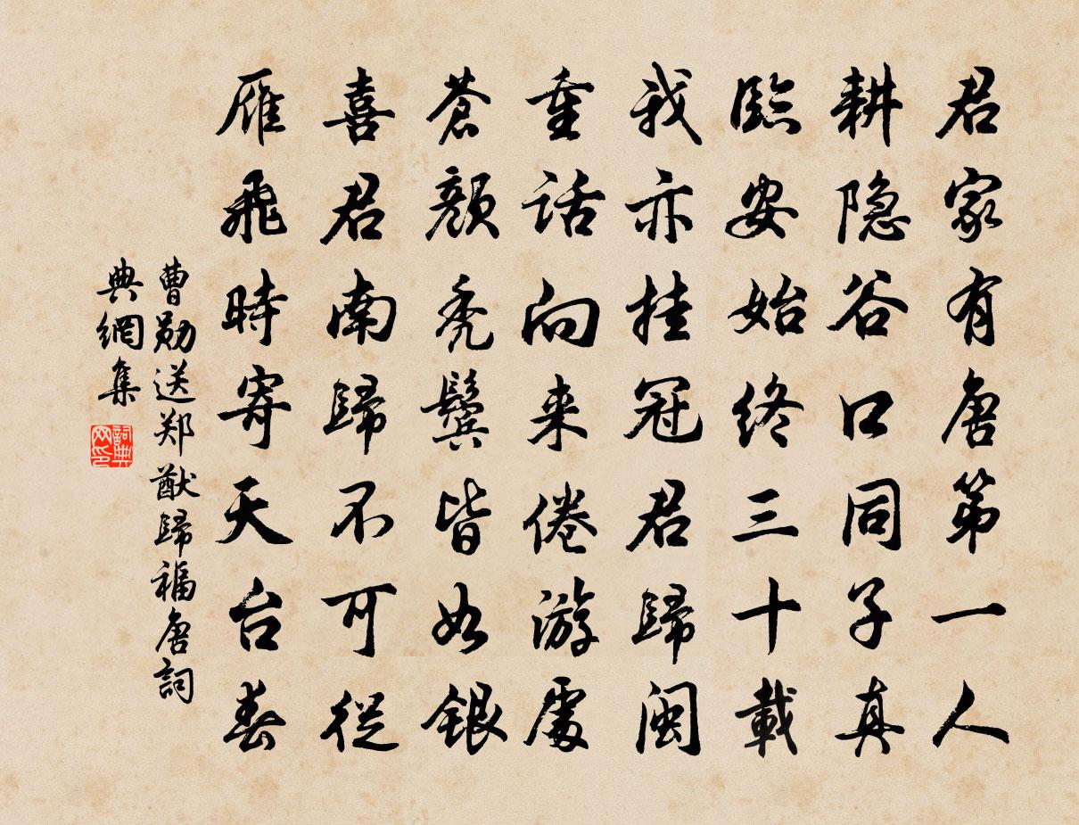 詩詞名句歷史字典書法欣賞書法字典國語詞典說文解字康熙字典古漢語字典標 題 作 者 詩 句 送鄭猷歸福唐作者:曹勛 朝代:宋代送鄭猷歸福唐原文君家有唐第一人,耕隱谷口同子真。臨安始終三十載,我亦掛冠君歸閩。重話向來倦遊處,蒼顏禿鬢皆如銀。喜君南歸不可從,雁飛時寄天台春。詩詞問答問:送鄭猷歸福唐的作者是誰?答:曹勛問:送鄭猷歸福唐寫於哪個朝代?答:宋代曹勛送鄭猷歸福唐書法欣賞送鄭猷歸福唐書法作品詩詞推薦游淨居寺向敏中〔宋代〕四面煙嵐合,吟魂到便清。亂山供遠翠,幽竹送寒聲。磬韻聽時歇,雲根望處生。塵機閒擺落,潛得笑浮榮。五郊樂章。舒和佚名〔唐代〕御征乘宮出郊甸,安歌率舞遞將迎。自有雲門符帝賞,猶持雷鼓答天成。漢柏王奕〔宋代〕膚剝心枯歲月深,孫枝已解作龍吟。烈風吹起孤高韻,猶作峰頭梁甫音。寄子虡子遹陸游〔宋代〕大兒再度吳門秋,小兒錢塘逾月留。恨身不能插兩翅,與汝相守寬百憂。聞鍾時宿雲外寺,待月亦上湖邊樓。但常呈明叔七首趙蕃〔宋代〕屋角梅開才一枝,道人眼淨得先窺。寒聽政爾猶官舍,不似茅檐見汝時。春日龍輔〔宋代〕風吹花香薰洞房,白日照鏡光射梁。後園草暖雙蝶曬,堂前塵落對燕翔。送陳明府之任潘鹹〔唐代〕客見天台縣,閭閻樹色間。驂回幾臨水,帶緩獨開山。吏散落花盡,人居遠島閒。過於老萊子,端簡獨承顏。偈頌七十一首釋了惠〔宋代〕這些業種自何來,雖不同門共一家。連累山僧至今日,一重枷上又添枷。覽鏡(一作李嗣宗詩)李崇嗣〔唐代〕歲去紅顏盡,愁來白髮新。今朝開鏡匣,疑是別逢人。西山三首(即岷山,捍阻羌夷,全蜀巨障)杜甫〔唐代〕彝界荒山頂,蕃州積雪邊。築城依白帝,轉粟上青天。蜀將分旗鼓,羌兵助井泉。西戎背和好,殺氣日相纏。辛苦擬韓偓體張至龍〔宋代〕一聲阿鵲顫鸞雙,學調新詞未得腔。拜了夜香郎喚睡,旋收鍼線背銀釭。秋夜獨酌陳與義〔宋代〕涼秋佳夕天氛廓,河漢之涯秋漠漠。月出未出林彩變,幽人露坐方獨酌。自歌新詞酒如空,天星下飲觥船中。忽思錦堂春司馬光〔宋代〕紅日遲遲,虛郎轉影,槐陰迤邐西斜。彩筆工夫,難狀晚景煙霞。蝶尚不知春去,謾繞幽砌尋花。奈猛風過後,縱古井鄭獬〔宋代〕百尺青梧桐,下有寒泉井。分明古鏡中,照見梧桐影。朝汲水花清,暮汲水花冷。願持沆瀣杯,遠寄蓬山頂。三月奉教作李嶠〔唐代〕銀井桐花發,金堂草色齊。韶光愛日宇,淑氣滿風蹊。蝶影將花亂,虹文向水低。芳春隨意晚,佳賞日無暌。寄中洲茶與尤延之,延之有詩,再寄黃檗茶,楊萬里〔宋代〕詩人可笑信虛名,擊節茶芽意不輕。爾許中洲真後輩,與君顧渚敢連衡。山中寄去無多子,天上歸來太瘦生。更送感春三首張耒〔宋代〕悠悠朝興暮還息,官閒事少門無客。空山多陰春雨足,飢馬蕭蕭空伏櫪。文章工巧謀愈疏,顏鬢衰遲進無策。系身壽史丞相程公許〔宋代〕君不見唐朝郭元振,退朝愉色奉溫清。又不見國初王文康,黑頭拜相歸捧觴。台袞崇嚴親壽考,歷數古今良亦少。謝程帥袁制使陳造〔宋代〕昔人道與俱,物外一不假。而我同是見,兼取及土苴。虛心超萬境,詩筆時一把。造詣豈二機,此秘知者寡。題畫冊花草四首墨竹宋高宗〔宋代〕墨花垂免頴,千古尚漓漓。翠羽風前葉,秋聲雨一枝。詩題春粉節,繃脫玉嬰兒。湘浦人何在,空聞鳳管吹。名句推薦霜天秋曉,正紫塞故壘,黃雲衰草。蔡挺《喜遷鶯·霜天秋曉》 近者不親,無務求遠墨子《墨子·02章 修身》 移舟去。未成新句。一硯梨花雨。周晉《點絳唇·訪牟存叟南漪釣隱》 他鄉生白髮,舊國見青山。司空曙《賊平後送人北歸》 四牡何時入,吾君憶履聲。張九齡《奉和聖制送尚書燕國公赴朔方》 得言不可以不察。數傳而白為黑,黑為白。呂不韋《呂氏春秋·論·慎行論》 富貴多憂,貧窮自在。佚名《增廣賢文·上集》 繡帳已闌離別夢,玉爐空裊寂寥香。馮延巳《浣溪沙·春到青門柳色黃》 舊山松竹老,阻歸程。岳飛《小重山·昨夜寒蛩不住鳴》 玉顏憔悴三年,誰復商量管弦。王建《宮中調笑·團扇》