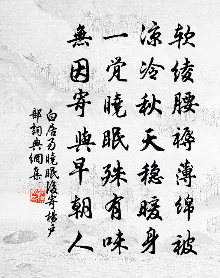 軟綾腰褥薄綿被,涼冷秋天穩暖身。一覺曉眠殊有味,無因寄與早朝人。