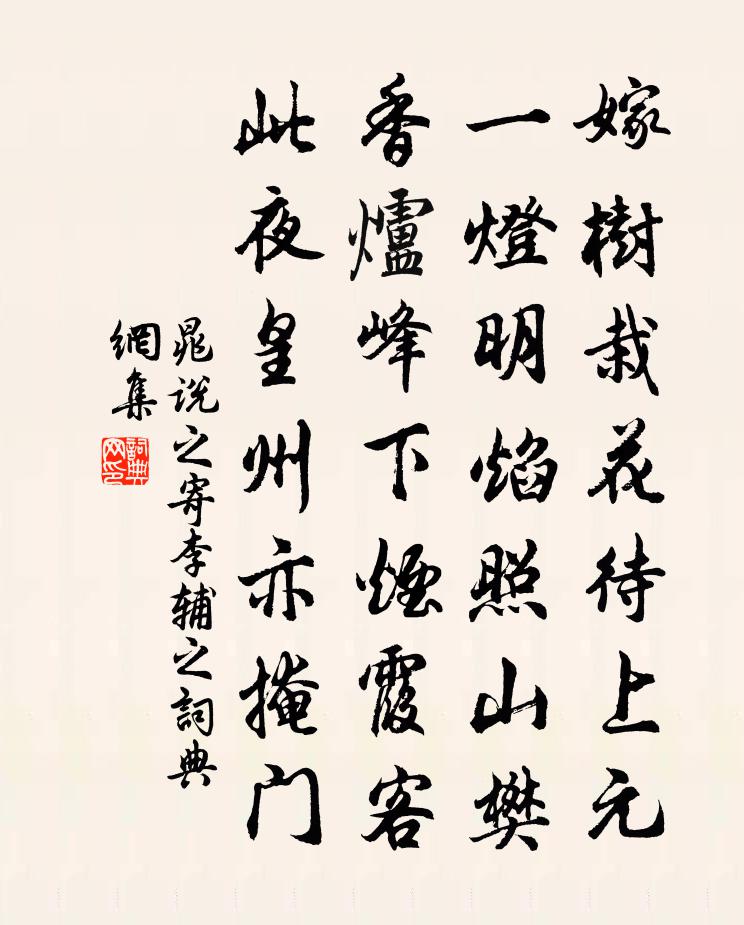 詩詞名句歷史字典書法欣賞書法字典國語詞典說文解字康熙字典古漢語字典標 題 作 者 詩 句 寄李輔之作者:晁說之 朝代:宋代寄李輔之原文嫁樹栽花待上元,一燈明焰照山樊。香爐峰下煙霞客,此夜皇州亦掩門。詩詞問答問:寄李輔之的作者是誰?答:晁說之問:寄李輔之寫於哪個朝代?答:宋代晁說之寄李輔之書法欣賞寄李輔之書法作品詩詞推薦滿庭芳方千里〔宋代〕山色澄秋,水光融日,浮萍飄碎還圓。數行征雁,分破白鷗煙,高下回塘暗谷,寫幽思、終日濺濺。閒凝望,殘霞偈頌八十七首釋慧開〔宋代〕稽首老瞿曇,擔頭人鬧藍。米香三拜了,天上與人間。少年游(林鐘商)張先〔宋代〕帽檐風細馬蹄塵。常記探花人。露英千樣,粉香無盡,驀地酒初醒。探花人向花前老,花上舊時春。行歌聲外,靚秋曉聞禽聲五韻陸游〔宋代〕秋曉風露佳,天宇曠以清。鳥雀當此時,意樂有和聲;人獨不自喜,乃欲鳴不平。世事雖萬端,但可笑絕纓。君看與子先足及伯暢甥別投宿明月山客邸悵然有賦程公許〔宋代〕岐路暫須執手,高城忍更回頭。大家制兒女淚,努力為名業謀。和參政丁侍郎洛下新植小園寄留台張郎中二首宋祁〔宋代〕水竹郊園占洛畿,私書素友約忘機。公今已為蒼生出,雖有雲山那得歸。止酒呂耐軒〔宋代〕終年不舉酒,愛漱玉池津。自謂醒時好,誰知醒者嗔。貧交滋味薄,老眠是非真。拚死成何事,劉伶輩誤人。宮詞張公庠〔宋代〕中使傳呼喜復忙,盡催歌舞到昭陽。薰爐煙山隨指見,無奈衣輕不受寒。減字木蘭花 憲掾黃君美弄璋,援蘇伯侑侍郎宋褧〔元代〕六日,壽席醉賦春空靄靄。兒解飛騰窺五采。我制佳名。異姓他年敘弟兄。我須白早。亦願兒年如我老。緩步徐行出塞徐錫麟〔清代〕軍歌應唱大刀環,誓滅胡奴出玉關。只解沙場為國死,何須馬革裹屍還。奉答賜酒鵝詩庾信〔南北朝〕雲光偏亂眼。風聲特噤心。冷猿披雪嘯。寒鳥抱凍沉。今朝一壼酒。實是勝千金。負恩無以謝。惟知就竹林。滕王閣懷古奉呈撫州別駕兼簡戶曹林亦之〔宋代〕城連帝子閣西頭,水繞南昌故郡流。山短天長歐鷺小,夜深雲淨月星浮。澹臺墓暗竹根古,孺子亭荒荷葉秋。漠漠鷓鴣天晁端禮〔宋代〕洛水西來 * 波。北瞻丹闕正嵯峨。先皇秘聿無人解,聖子神孫果眾多。民物阜,歲時和。帝居不用壯山河。卜年晦日宴高氏林亭周思鈞〔唐代〕早春驚柳穟,初晦掩蓂華。騎出平陽里,筵開衛尉家。竹影含雲密,池紋帶雨斜。重惜林亭晚,上路滿煙霞。和運使王學士舟次德清見寄蔡襄〔宋代〕洛陽平昔夸文會,君已勝冠我壯圾。談道最先稱賈誼,憂時曾見哭唐衢。敢將膠漆論同志,幸得湖山可共娛。須向再和陳與義〔宋代〕洪河豈不壯,余潤彌九里。海內所詠歌,在德不在水。德人經行地,可敬及蒲葦。況有水如此,浪去劇雪委。念昔燕歸來/喜遷鶯仇遠〔宋代〕三疊曲,四愁詩。心事少人知。西風未老燕遲歸。巢冷半乾泥。流紅句,回文字。除燕知,誰能記。一聲卻到畫樓次韻黃貳車三絕句史彌寧〔宋代〕菩提坊里著詩豪,佳木繁陰暑易逃。不用移文勒回駕,箇中境界盡清高。過王山人舊居耿湋〔唐代〕故宅春山中,來逢夕陽入。汲少井味變,開稀戶樞澀。樹朽鳥不棲,階閒雲自濕。先生何處去,惆悵空獨立。過荊軻冢四絕句晁說之〔宋代〕刺客傳中軻絕倫,後來尪怯寂無人。秦人更甚燕人恨,不葬燕台留葬秦。名句推薦形影忽不見,翩翩傷我心。曹植《雜詩六首·其一》 地白風色寒,雪花大如手。李白《嘲王歷陽不肯飲酒》 漫向寒爐醉玉瓶,喚君同賞小窗明。陸游《浣溪沙·和無咎韻》 三顧頻煩天下計,兩朝開濟老臣心。杜甫《蜀相》 快意事過非快意,自古敗名因敗事。佚名《增廣賢文·下集》 皮之不存,毛將安傅?左丘明《左傳·僖公·僖公十四年》 大直若屈,大巧若拙,大辯若訥。老子《老子·德經·第四十五章》 廄馬散連山,軍容威絕域。李白《君子有所思行》 如今卻憶江南樂,當時年少春衫薄。韋莊《菩薩蠻·如今卻憶江南樂》 樹大招風風撼樹,人為名高名喪人。吳承恩《西遊記·第三十三回》