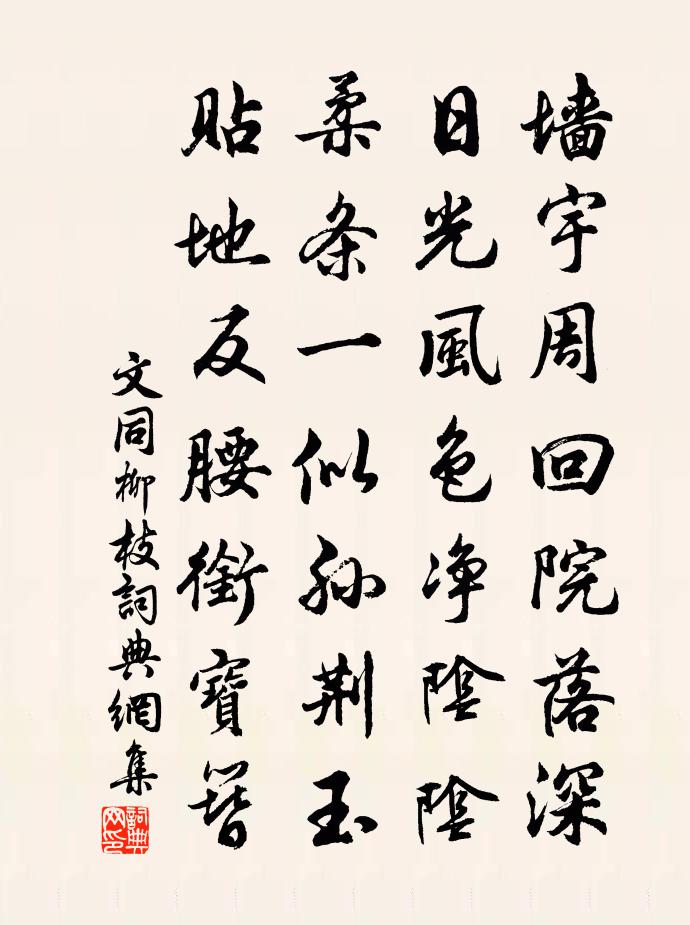 詩詞名句歷史字典書法欣賞書法字典國語詞典說文解字康熙字典古漢語字典標 題 作 者 詩 句 柳枝作者:文同 朝代:宋代柳枝原文牆宇周回院落深,日光風色淨陰陰。柔條一似孫荊玉,貼地反腰銜寶簪。詩詞問答問:柳枝的作者是誰?答:文同問:柳枝寫於哪個朝代?答:宋代文同柳枝書法欣賞柳枝書法作品詩詞推薦餞許州宋司馬赴任薛稷〔唐代〕令弟與名兄,高才振兩京。別序聞鴻雁,離章動鶺鴒。遠朋馳翰墨,勝地寫丹青。風月相思夜,勞望潁川星。含雲晚歸寄真師楊時〔宋代〕每扣禪關即晚歸,塵中回首萬緣非。不愁幻翳迷心地,且聽潮音振祖衣。歸路往來無別徑,夜光清徹有餘輝。虎溪吳侍郎生朝宋庠〔宋代〕朝端舊記生賢日,使節臨門恩有秩。詔書感會形溫辭,宴品豐華動私室。降崧孕昴誠不誣,史簡詩絃互褒述。賢人書帷陳宓〔宋代〕青編有補曾無損,白璧難全易作瑕。欲下涼帷玩真味,莫將絲履染塵沙。游東郭趙氏園陸游〔宋代〕清晨呼馬出,馭吏請所之。錦城浩如海,我亦無與期。有花即入門,莫問主人誰。下馬據胡床,傲睨忘訶譏。人言次韻景安吳山觀雪方回〔宋代〕盡洗眼底塵,頓寬胸中憂。此雪端為誰,奇哉君之游。平步飛鳥背,長嘯孤峰頭。恍惚閬苑,嫖姚結鄰樓。不了異別王司法陳藻〔宋代〕維舟江岸偶相鄰,還與吾翁是故人。顏貌不知今日改,姓名方記舊時親。少年壯筆生應貴,白髮青衫今尚貧。一笑送從弟郢東歸孟郊〔唐代〕爾去東南夜,我無西北夢。誰言貧別易,貧別愁更重。曉色奪明月,征人逐群動。秋風楚濤高,旅榜將誰共。相州范成大〔宋代〕禿巾髽髻老扶車,茹痛含辛說亂華。賴有鄉人聊刷恥,魏公元是魯東家。集元刺史句詠寒亭杜子是〔宋代〕長山繞井邑,嘐嘐天外青。煙雲無近遠,水石何幽清。半崖盤石徑,如見小蓬瀛。時節方大暑,忽若秋氣生。高亭新雁過妝樓吳文英〔宋代〕夢醒芙蓉。風檐近、揮疑佩玉丁東。翠微流水,都是惜別行蹤。宋玉秋花相比瘦,賦情更苦似秋濃。小黃昏,紺雲唐衢墓(一作賈島詩)佚名〔宋代〕京洛先生三尺墳,陰風慘慘土和雲。從來有感君皆哭,今日無君誰哭君?具足觀修訣晃逈〔宋代〕三空一不空,悟入勢孤雄。得道加殊稱,超天自在公。依韻和王介甫兄弟舟次蕪江懷寄吳正仲梅堯臣〔宋代〕楚客連檣泊晚風,吳人江畔醉無窮。少陵失意詩偏老,子厚因遷筆更雄。貫口信潮千里至,平沙落日一時紅。知君成都即事何耕〔宋代〕零落紅成陣,扶疏綠結幃。簡書留客住,風雨卷春歸。是處羈懷惡,浮生樂事希。錦江拚盡醉,欲典卻無衣。金山游賀鑄〔宋代〕輕舠放中{左氵右霝},岸遠春風壯。楫師俯仰呼,天水爭簸蕩。吾方扣其舷,聊賡小海唱。梢回即東麓,側磴聯送李憲司理還新喻蘇轍〔宋代〕采芹芹已老,浴沂沂尚寒。蒯緱長嘆息,苜蓿正闌乾。黃卷忘憂易,青衫行路難。歸耕未有計,且復調閒官。感懷方岳〔宋代〕拄入風煙更一層,瘦藤對倚玉崚嶒。左花右竹自昭穆,春鶴秋猿相友朋。五畝園為終老計,半間雲住在家僧。蹲鴟夏晚尋於政世置酒賦韻陳子良〔唐代〕聊從嘉遁所,酌醴共抽簪。以茲山水地,留連風月心。長榆落照盡,高柳暮蟬吟。一返桃源路,別後難追尋。送識上人游金山寺范仲淹〔宋代〕空半簇樓台,紅塵安在哉。山分江色破,潮帶海聲來。煙景諸鄰斷,天光四望開。疑師得仙去,白日上蓬萊。名句推薦何處合成愁。吳文英《唐多令·惜別》 半夜呼兒趁曉耕,羸牛無力漸艱行。顏仁郁《農家》 今施人薄而望人厚,則人唯恐其有賜於己也。墨子《墨子·49章 魯問》 仁則榮,不仁則辱。孟子《孟子·公孫丑章句上·第四節》 月華今夜黑,全見梨花白。楊基《菩薩蠻·水晶簾外娟娟月》 八月寒葦花,秋江浪頭白。李頎《送劉昱》 己欲立而立人,己欲達而達人。孔子弟子《論語·雍也篇》 黃河萬里觸山動,盤渦轂轉秦地雷。李白《西嶽雲台歌送丹丘子》 羨青山有思,白鶴忘機。湯恢《八聲甘州·摘青梅薦酒》 學然後知不足,教然後知困。戴聖《禮記·學記》