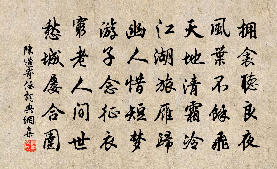 詩詞名句歷史字典書法欣賞書法字典國語詞典說文解字康熙字典古漢語字典標 題 作 者 詩 句 寄侄作者:陳造 朝代:宋代寄侄原文擁衾聽良夜,風葉不餘飛。天地清霜冷,江湖旅雁歸。幽人惜短夢,遊子念征衣。窮老人間世,愁城屢合圍。詩詞問答問:寄侄的作者是誰?答:陳造問:寄侄寫於哪個朝代?答:宋代陳造寄侄書法欣賞寄侄書法作品詩詞推薦閨怨胡仲弓〔宋代〕君居楚尾妾吳頭,咫尺天涯作許愁。多謝有情江上月,夜深分照兩家樓。西楚霸王廟二絕陳淳〔宋代〕轍亂旗靡繞舊畿,烽煙起處羽書馳。思君一劍為平盪,蓋世英魂知不知。景祐饗先農五首佚名〔宋代〕在昔神逐,首茲播殖。無有污萊,盡為稼檣。乃粒斯民,實惟帝力。嘉薦令芳,儜瞻來格。示董伯懿王安石〔宋代〕穿橋度塹只閒行,詠石嘲花亦漫成。嚼蠟已能忘世味,畫脂那更惜時名。長乾里北寒山紫,白下門西野水明。此地題壁二首福州僧〔宋代〕當初只欲轉頭銜,轉得頭銜轉不堪。何似仁王高閣上,倚欄閒唱望江南。贈眇目道人說相葛天民〔宋代〕道人只具一隻眼,覿面全提格外機。塵里神仙誰做得,歸來試舉問 * 。西門行李鹹用〔唐代〕勞禽不擇枝,飢虎不畏檻。君子當固窮,無為仲由濫。爾奮空拳彼擊劍,水縱長瀾火飛焰。漢高偶試神蛇驗,武王新年多雨一日晴色可喜戴復古〔宋代〕一晴良可喜,始覺好新年。綠漲春前水,青開雨後天。看花吾老矣,把酒興悠然。病腳妨行樂,三杯歸醉眠。題龍興寺澹師房韓翃〔唐代〕雙林彼上人,詩興轉相親。竹里經聲晚,門前山色春。捲簾苔點淨,下箸藥苗新。記取無生理,歸來問此身。又次韻三首廖行之〔宋代〕昔人逢秋每悲思,往往捧本騷人言。安知四時皆足樂,但願一切長無冤。山林朝市等昔夢,榮悴開落俱陳根。不如次韻王文甫先生二首陳著〔宋代〕富貴誰能訊女星,得師自分滿平生。河汾他日書成後,王魏中閒亦有名。州將和丁內翰寄題延州龍圖新開柳湖五闋宋祁〔宋代〕昔人楊柳詠依依,曾與征夫說戍期。看盡春條君莫嘆,湖邊雨雪是歸時。題德章山郭養源墨竹王之道〔宋代〕胸次富盤錯,筆端妙蒼翠。霜枝豈人為。菸葉有生意。與可骨已朽,此法誰復嗣。偉哉尋丈姿,綽有萬心勢。次韻戴石屏見簡二首高斯得〔宋代〕入東頗亦交名勝,安道聞孫更崛奇。明月清風能我共,高山流水只君知。遙憐把酒懷人處,正是登樓望遠時。安得梅花喜神譜大開一十四枝宋伯仁〔宋代〕堂下雜籚鞀,如鍾而罄腹。夫子聞於齊,三月不知肉。題宋器之煙波圖程公許〔宋代〕萬頃煙波一釣翁,玄真心事偶相同。平生我亦輕軒冕,分取苕溪半席風。偈頌二十五首釋普岩〔宋代〕入院數日來,人事鬧烘烘。兩腳走如煙,眼不見鼻孔。有懷劉子翬〔宋代〕溪石磊磊出,溪光失溶溶。呼童理新堰,小駐萬折東。素杙競駢立,蒼皮堆已重。誰裁一道天,忽墮顧視中。遠淥次韻邑宰徐何慊出示所作五首陳著〔宋代〕誰其知我獨春秋,小試毫芒大用留。二 * 關社稷,八主地位傲公侯。儒家本色饒青眼,仕路焦心早白頭。笑殺南昌大閱蔡戡〔宋代〕自昔洪都地望雄,劍光直與鬥牛能。角聲悲壯秋風裡,旗影橫斜晚照中。簾幕萬家觀小隊,弓刀千騎擁元戎。此身名句推薦外舉不避仇,內舉不避子。韓非及後人《韓非子·外儲說左下》 悠悠洛陽道,此會在何年。陳子昂《春夜別友人二首·其一》 池邊釣女日相隨,妝成照影竟來窺孟浩然《高陽池送朱二》 村喜禾花實,峰看嶺岫重。趙汝愚《雨後送李將軍還祠偕同寅飲一杯亭》 唯不求利者為無害,唯不求福者為無禍。劉安及其門客《淮南子·詮言訓》 窣地春袍,嫩色宜相照。梅堯臣《蘇幕遮·草》 黃衫飛白馬,日日青樓下。陳克《菩薩蠻·赤闌橋盡香街直》 霜降碧天靜,秋事促西風。葉夢得《水調歌頭·九月望日與客習射西園余偶病不能射》 女為君子儒,無為小人儒。孔子弟子《論語·雍也篇》 怒濤卷霜雪,天塹無涯。柳永《望海潮·東南形勝》