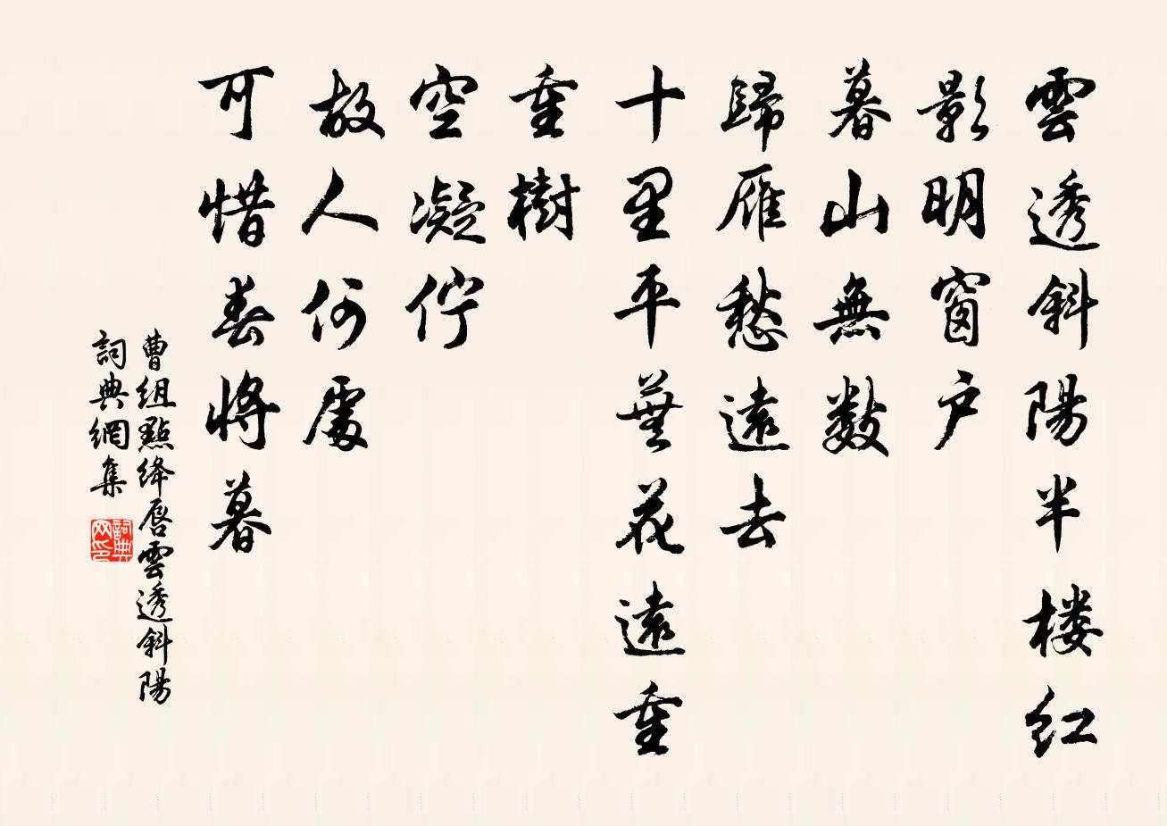 雲透斜陽,半樓紅影明窗戶。暮山無數。