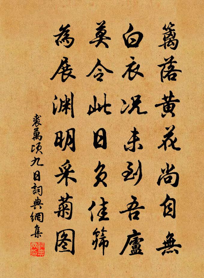 詩詞名句歷史字典書法欣賞書法字典國語詞典說文解字康熙字典古漢語字典標 題 作 者 詩 句 九日作者:裘萬頃 朝代:宋代九日原文籬落黃花尚自無,白衣況未到吾廬。莫令此日負佳篩,為展淵明採菊圖。詩詞問答問:九日的作者是誰?答:裘萬頃問:九日寫於哪個朝代?答:宋代裘萬頃九日書法欣賞九日書法作品詩詞推薦樓頭歐陽修〔宋代〕百尺樓頭萬疊山,楚江南望隔晴煙。雲藏白道天垂幕,簾卷黃昏月上弦。桑落蒲城催熟酒,柳衰章陌感凋年。發光胡笳十八拍十八首王安石〔宋代〕漢家公主出和親,御廚絡繹送八珍。明妃初嫁與胡時,一生衣服盡隨身。眼長看地不稱意,同是天涯淪落人。我今韓退之藍田丞廳記所謂雁鶩者相承以為吏每切徐僑〔宋代〕退之作文自天巧,讀者未免加人私。紙尾連銜行雁鶩,同僚翻作刻木期。句讀中分肯趣短,一輩抱睨何多為。自唐雪後尋梅偶得絕句十首陸游〔宋代〕雙鵲飛來噪午晴,一枝梅影向窗橫。幽人宿醉閒欹枕,不待聞香已解酲。明月泉錢聞詩〔宋代〕團圓一井為誰開,夜夜東隅月色來。釀得新醅飲佳客,分明蟾影浸金杯。送劉仲起主簿樓鑰〔宋代〕劉郎鸞棲海瀕色,不減向來人姓習。凜然軀幹即之溫,語恐傷人中有立。論交雖厚笑甘體,御吏以嚴無束濕。公餘春日書事五首韓元吉〔宋代〕十年騎馬聽朝雞,老竊州符簿領迷。衙鼓不聞春睡足,閉門聊喜得幽棲。復以承晏墨贈之晃沖之〔宋代〕我聞江南墨官有諸奚,老超尚不如庭珪。後來承晏復秀出,喧然父子名相齊。百年相傳文斷碎,仿佛尚見蛟龍背。香閨十詠紫香囊張玉孃〔宋代〕珍重天孫剪紫霞,沉香羞認舊敏華。紉蘭獨抱靈均操,不帶春風兒女花。用厚後弟強甫韻劉克莊〔宋代〕把茅容膝強名庵,宜夏宜冬戶向南。雪厄黃精飢杜二,花欺白髮笑陳三。爾儂柏下已骨朽,此老橘中猶手談。惟有望江南淨圓〔宋代〕西方好,群鳥美音聲。華下和鳴歌六度,光中哀雅攢三乘。聞者悟無生。三惡道,猶自不知名。皆是佛慈親變化,禁中垂柳宋祁〔宋代〕曼線長枝不自收,天姿濯濯與風流。已隨曉珮拖三綬,更伴春旗亞九斿。盡日舞殘芳吹在,此時眠熟暝煙留。宮中誠意吟金朋說〔宋代〕正心謹獨時,篤實惟精一。克念雨不欺,充然四端立。次韻汪以南教授美康使君新政因及賤跡四首方回〔宋代〕吾州今歲得儒臣,坐鎮浮澆力萬鈞。月榭風台尋古蹟,煙畦雨隴勞遺民。長庚往往詩無敵,子美云云筆有神。老懶青龍寺題故曇上人房李端〔唐代〕遠公留故院,一徑雪中微。童子逢皆老,門人問亦稀。翻經徒有處,攜履遂無歸。空念尋巢鶴,時來傍影飛。梅角李龍高〔宋代〕朝暮相催鬢易星,酸風無奈送悲聲。丁寧莫過黃蘆塞,月落霜寒客半醒。示女詩郫城令〔唐代〕深宮富貴事風流,莫忘生身老骨頭。因與太師歡笑處,為吾方便覓彭州。句崔鶠〔宋代〕伯鸞下吳越。喜雨一絕簡趙丞洪咨夔〔宋代〕龍公有眼識英材,好雨隨聲喚得來。酒面添如田水滿,眉頭放與稻花開。菩薩蠻·春閨徐燦〔清代〕困花壓蕊絲絲雨,不堪只共愁人語。斗帳抱春寒,夢中何處山。捲簾風意惡,淚與殘紅落。羨煞是楊花,輸它先到名句推薦好言難得,惡語易施。佚名《增廣賢文·上集》 若是前生未有緣,待重結、來生願。樂婉《卜運算元·答施》 春水碧於天,畫船聽雨眠。韋莊《菩薩蠻·人人盡說江南好》 鳳凰台上鳳凰游,鳳去台空江自流。李白《登金陵鳳凰台》 數聲風笛離亭晚,君向瀟湘我向秦。鄭谷《淮上與友人別》 故人南燕吏,籍籍名更香。岑參《至大梁卻寄匡城主人》 五馬如飛龍,青絲結金絡。李白《陌上桑》 春日遲遲,卉木萋萋。佚名《出車》 當年不肯嫁春風,無端卻被秋風誤。賀鑄《芳心苦·楊柳回塘》 傷心莫問前朝事,重上越王台。倪瓚《人月圓·傷心莫問前朝事》