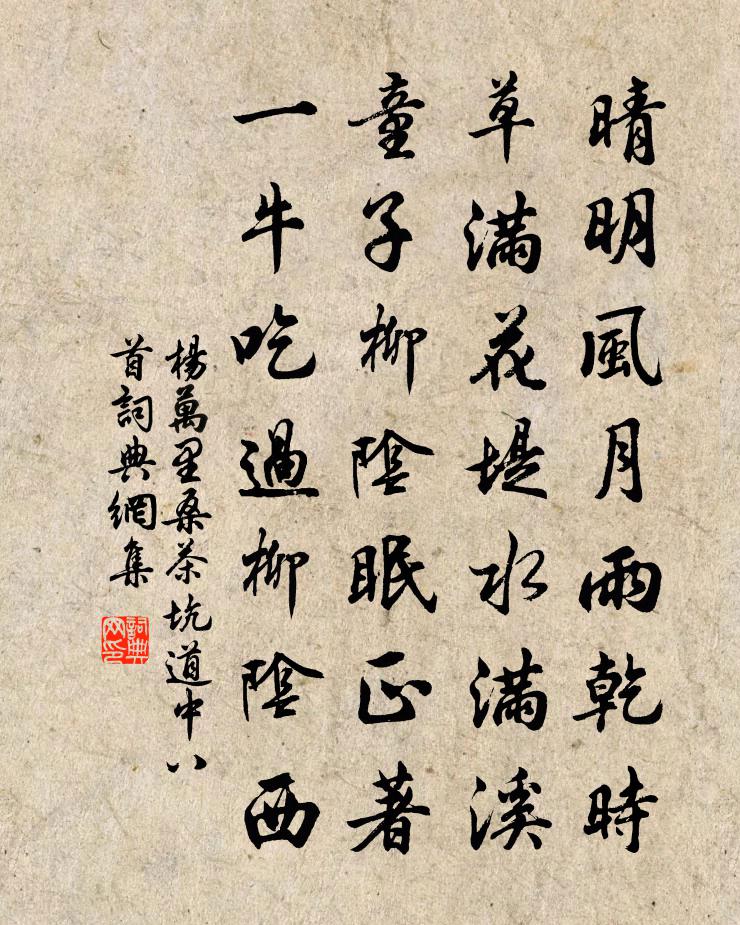 晴明風月雨乾時,草滿花堤水滿溪。童子柳陰眠正著,一牛吃過柳陰西。