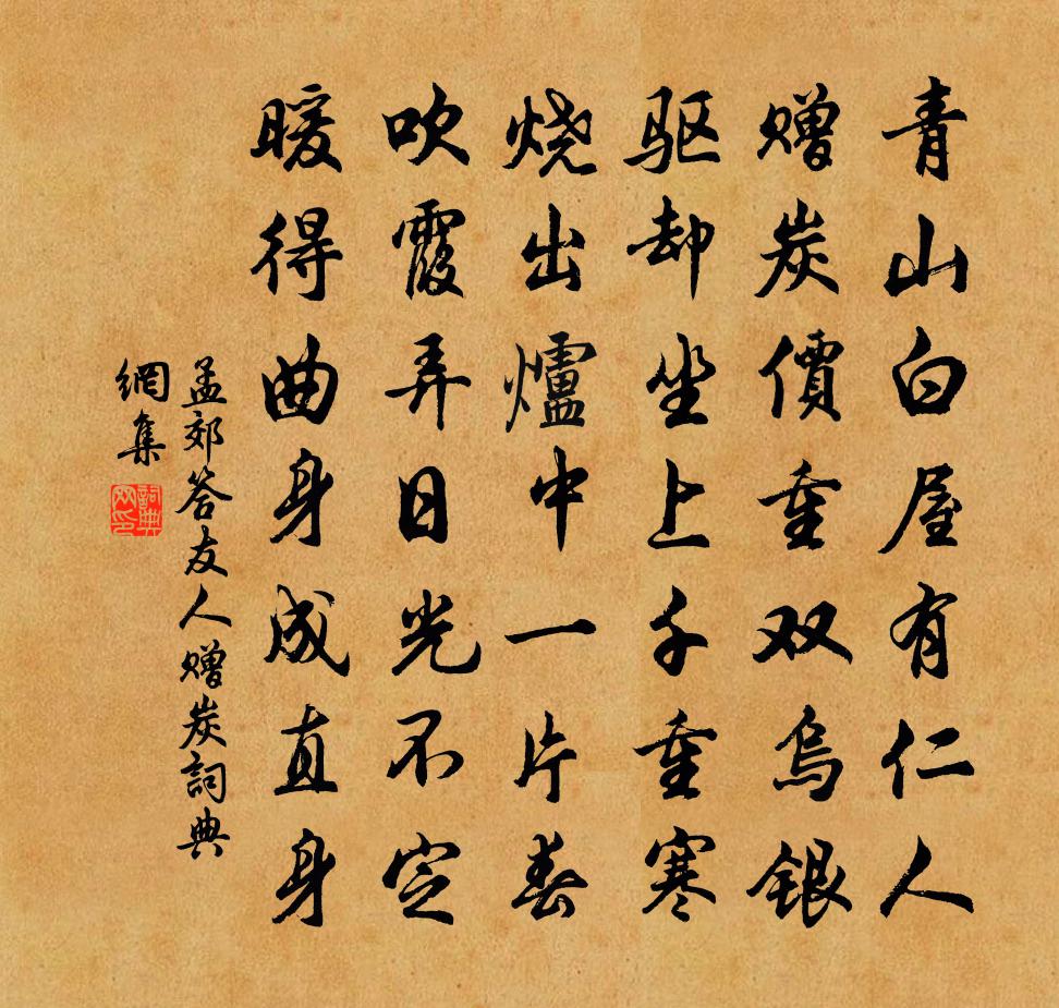 青山白屋有仁人,贈炭價重雙烏銀。驅卻坐上千重寒,燒出爐中一片春。