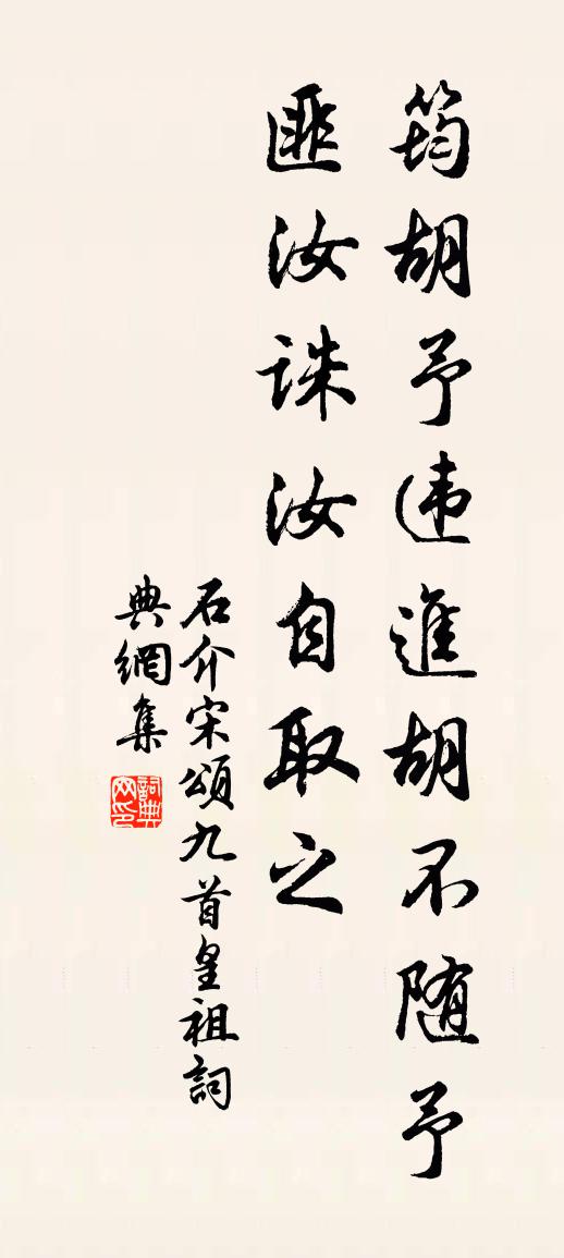 詩詞名句歷史字典書法欣賞書法字典國語詞典說文解字康熙字典古漢語字典標 題 作 者 詩 句 宋頌九首皇祖作者:石介 朝代:宋代宋頌九首皇祖原文筠胡予違,進胡不隨。予匪汝誅,汝自取之。詩詞問答問:宋頌九首皇祖的作者是誰?答:石介問:宋頌九首皇祖寫於哪個朝代?答:宋代石介宋頌九首皇祖書法欣賞宋頌九首皇祖書法作品詩詞推薦採桑子馮延巳〔唐代〕馬嘶人語春風岸,芳草綿綿。楊柳橋邊,落日高樓酒旆懸。舊愁新恨知多少,目斷遙天。獨立花前,更聽笙歌滿畫會張生述懷李節度姬〔唐代〕門前畫戟尋常設,堂上犀簪取次看。最是惱人情緒處,鳳凰樓上月華寒。奉和九日幸臨渭亭登高應制得枝字韋安石〔唐代〕重九開秋節,得一動宸儀。金風飄菊蕊,玉露泫萸枝。 睿覽八紘外,天文七曜披。臨深應在即,居高豈忘危。辛丑歲暮三首戴復古〔宋代〕意氣久凋落,形模老可憎。能扶雙病腳,賴有一枯藤。世味淡如水,吾心達似僧。明朝今日事,一任運騰騰。山家陸游〔宋代〕種藥為生業,彈琴悅性靈。中宵煮白石,平旦誦黃庭。茶熟眠初起,兒扶酒半醒。意行無定處,猿鳥共忘形。鷓鴣天(重九日集句)黃庭堅〔宋代〕寒雁初來秋影寒。霜林風過葉聲乾。龍山落帽千年事,我對西風猶整冠。蘭委佩,菊堪餐。人情時事半悲歡。但將六祖釋安永〔宋代〕黃梅半夜錯分付,才得星兒便亂做。一庾嶺頭屙一堆,後代兒孫遭點污。潘公舍人義榮當世第一流人也仆頃得金華私竊吳芾〔宋代〕一代名流世許誰,獨公皎皎著明暉。少攄妙蘊聊持橐,欲振孤風便拂衣。愧我仰高乖晤對,羨君請益控玄微。今朝自東都還濠州,奉酬王八諫議見贈獨孤及〔唐代〕關西仕時俱稚容,彪彪之鬢始相逢。天地變化縣城改,獨有故人交態在。不言會合跡未並,猶以歲寒心相待。洛陽再次韻陳造〔宋代〕橫前整整萬全兵,自笑空弮借背城。更遣齊竽混東郭,坐令鵠卵化南榮。南陳得法仍宗派,甫白論情自弟兄。顧我雜興陸游〔宋代〕病養精神過服藥,貧知儉約勝營生。皋夔事業今何有,且與心君致太平。新寒陸游〔宋代〕碧蝶飛飛過短籬,山姜石竹有殘枝。誰知老子閒眠處,恰是新寒細雨時。元老和示小詩自謂非戰之罪復作一絕並坐具還蘇轍〔宋代〕請君卻領彌天具,不欲終收陷虎名。莫道昏沉非戰罪,何如不戰屈人兵。賀聖朝 二首贈王司公馬鈺〔元代〕祥煙瑞氣常敷布。便覺心歸素。世人為處我無為,更無思無慮。絳房奼女嬰兒聚。慧目看烏兔。斡旋離坎兩交宮。沁園春(為老人書南堂壁)蔣捷〔宋代〕老子平生,辛勤幾年,始有此廬。也學那陶潛,籬栽些菊,依他杜甫,園種些蔬。除了雕梁,肯容紫燕,誰管門前高侍郎詩佚名〔唐代〕危冠高袖楚宮妝,獨步閒庭逐夜涼。自把玉簪敲砌竹,清歌一曲月如霜。挽孫謙伯二首洪咨夔〔宋代〕日月無多子,鄉邦失兩賢。直為吾黨慟,不作世情憐。握手春風醉,論心夜雨眠。耳言猶歷歷,何忍表君阡。題故翠微宮驪山遊人〔唐代〕翠微寺本翠微宮,樓閣亭台幾十重。天子不來僧又去,樵夫時倒一株松。予久客思歸以秋光都似宦情薄山色不如歸意濃仇遠〔宋代〕迢迢渰水上,有亭曰寒光。水天散鷗鷺,四望山蒼蒼。向來於湖翁,詩詞題屋枋。幾思一遨遊,歲月飛羽忙。聞有古斷腸曲三十首周端臣〔宋代〕修竹生煙晚逗陰,翠羅香袖怯寒侵。恨同社燕身為客,怕剝秋蓮苦在心。名句推薦繞遍迴廊還獨坐。月籠雲暗重門鎖。蘇軾《蝶戀花·雨霰疏疏經潑火》 雖慚老圃秋容淡,且看黃花晚節香。韓琦《九日水閣》 卻愁擁髻向燈前,說不盡、離人話納蘭性德《一絡索·過盡遙山如畫》 弈之為數,小數也;不專心致志,則不得也。孟子《孟子·告子章句上·第九節》 思牽今夜腸應直,雨冷香魂吊書客。李賀《秋來》 立非常之事,必俟非常之人。令狐德棻《周書·列傳·卷十四》 金陵子弟來相送,欲行不行各盡觴。李白《金陵酒肆留別》 野戰格鬥死,敗馬號鳴向天悲。李白《戰城南》 戰陣之間,不厭詐偽。韓非及後人《韓非子·難一》 千呼萬喚始出來,猶抱琵琶半遮面。白居易《琵琶行 / 琵琶引》