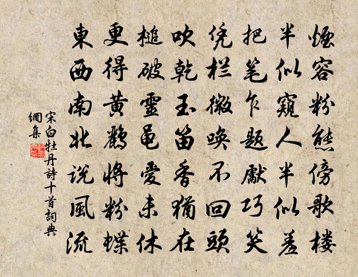 詩詞名句歷史字典書法欣賞書法字典國語詞典說文解字康熙字典古漢語字典標 題 作 者 詩 句 牡丹詩十首作者:宋白 朝代:宋代牡丹詩十首原文煙容粉態傍歌樓,半似窺人半似羞。把筆乍題先巧笑,憑欄微喚不回頭。吹乾玉笛香猶在,槌破靈黽愛未休。更得黃鸝將粉蝶,東西南北說風流。詩詞問答問:牡丹詩十首的作者是誰?答:宋白問:牡丹詩十首寫於哪個朝代?答:宋代宋白牡丹詩十首書法欣賞牡丹詩十首書法作品詩詞推薦滿江紅(倉江分韻送晏鈐乾詞)吳泳〔宋代〕元帥籌邊,誰肯辦、向前一著。大丞相、孫兒挺偉,素閒兵略。楊柳依依煙在眼,檀車嘽嘽春浮腳。更何妨、二十送嚴心傳鄞縣學教任滿陳著〔宋代〕賢哉昔魯山,心地出芝蘭。不負義方教,相傳本色官。三年腳根正,萬里路頭寬。須信功名事,要教人耐看。初夏幽居偶題陸游〔宋代〕展盡高槐日漸長,了無蜂蝶為花忙。青梅旋摘宜鹽白,煮酒初嘗帶臘香。林下光陰無一事,水邊窗戶有餘涼。應門題宗室大年畫扇四首晁補之〔宋代〕西風入叢竹,慘澹帶秋陰。驚起中汦雁,衡陽萬里心。右省僕射相公垂覽和詩,復貽長句,輒次來韻徐鉉〔唐代〕西院春歸道思深,披衣閒聽暝猿吟。鋪陳政事留黃閣,偃息神機在素琴。玉柄暫時疏末座,瑤華頻復惠清音。開晴寶鼎現(和韻已未元夕)吳潛〔宋代〕晚風微動,淨掃天際,雲裾霞綺。將海外、銀蟾推上,相映華燈輝萬砌。看舞隊、向梅梢然晝,丹焰玲瓏玉蕊。漸醉落魄/一斛珠侯置〔宋代〕玉鉤珠箔。夜涼庭院天垂幕。好風吹動綸巾角。羽扇休揮,已怯絺衣薄。扁舟明日清溪泊。歸來依舊情懷惡。為君憶秦娥(五日移舟明山下作)陳與義〔宋代〕魚龍舞。湘君欲下瀟湘浦。瀟湘浦。興亡離合,亂波平楚。獨無尊酒酬端午。移舟來聽明山雨。明山雨。白頭孤客安寧道中即事王文治〔清代〕夜來春雨潤垂楊,春水新生不滿塘。日暮平原風過處,菜花香雜豆花香。玉樓春陳允平〔宋代〕西園斗結鞦韆了。日漾遊絲煙外裊。小橋楊柳色初濃,別院海棠花正好。粉牆低度鶯聲巧。薄薄輕衫宜短帽。便拚寄尹師魯石延年〔宋代〕十年一夢花空委,依舊河山損桃李。雁聲北去燕南飛,高樓日日春風裡。眉黛石州山對起,嬌波淚落妝如洗。汾河蘇養直書簡帖贊岳珂〔宋代〕其作字得東坡之骨,而加以平實。得山谷之體,而去其越軼。其應世接物得馬少游之善,而持以插詘。故先生者施菩薩蠻佚名〔宋代〕寶刀迎面搖寒雪。瓊梳掠鬢橫新月。紅頰駐長春。綠鬟輕綰雲。解飄並括斂。到處題名遍。飛詔待追還。榮居供奉十七夜待月虞儔〔宋代〕青天遙望片雲無,坐待冰輪出海隅。沆瀣已垂梧葉重,嬋娟猶惜桂華孤。夜闌紅燭休更秉,春滿香醑不用沽。且放王少清歸蜀不成復下鄂渚詩項安世〔宋代〕行止不可計,別離當奈何。賦歸重作客,欲泝竟沿波。湖上橘方熟,洲邊魚正多。西山舊相識,不厭屢經過。遺僧楮衾徐集孫〔宋代〕練從水桂華見鄉,雅稱分供衲子床。一段溫和雲共軟,十分明潔月爭光。吟魂有夢圓春草,禪骨無因怯曉霜。金帳釣台連文鳳〔宋代〕諸將驅馳尺寸功,先生來此坐清風。漢家天地間身外,嚴瀨煙波落照中。片石粼粼年歲晚,一絲裊裊利名空。笑余諭俗方岳〔宋代〕稻壓田塍穡頭重,蛟蛇糾蟠扶不動。得霜欲老晴下鎌,卷野秋雲堆作隴。昨日糴米如糴珠,頓落半價多年無。賣刀卜運算元呂渭老〔宋代〕□□矣,余為之輟筆。昨夜酒醒,臥不能穩,試作卜運算元以寄之渡口看潮生,水滿蒹葭浦。長記扁舟載月明,深入發白馬李白〔唐代〕將軍發白馬,旌節度黃河。簫鼓聒川岳,滄溟涌濤波。武安有振瓦,易水無寒歌。鐵騎若雪山,飲流涸滹沱。揚兵名句推薦綺席凝塵,香閨掩霧。晏殊《踏莎行·碧海無波》 山下蘭芽短浸溪,松間沙路淨無泥。瀟瀟暮雨子規啼。蘇軾《浣溪沙·游蘄水清泉寺》 尊卑失序,如冠履倒置;富貴不歸,如錦衣夜行。程登吉《幼學瓊林·卷二·衣服》 遠看山有色,近聽水無聲王維《畫》 德者事業之基,未有基不固而棟宇堅久者洪應明《菜根譚·概論》 長因送人處,憶得別家時張籍《薊北旅思/送遠人》 宣和舊日,臨安南渡,芳景猶自如故。劉辰翁《永遇樂·璧月初晴》 如何亡國恨,盡在大江東!屈大均《秣陵》 春種一粒粟,秋收萬顆子。李紳《古風二首 / 憫農二首》 寫不了相思,又蘸涼波飛去。朱彝尊《長亭怨慢·雁》