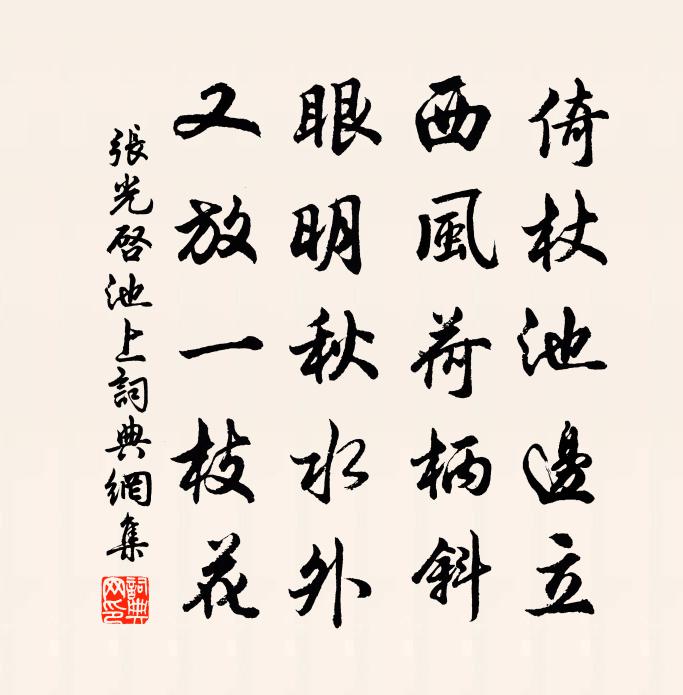拄杖站在池塘邊,西風拂過,托著殘葉的荷柄微微傾斜。