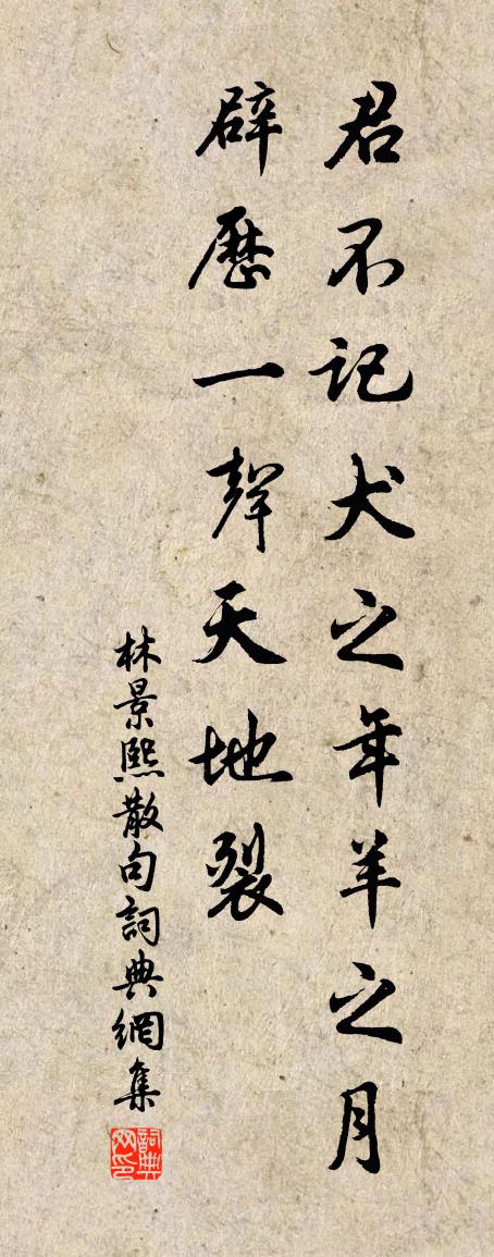 詩詞名句歷史字典書法欣賞書法字典國語詞典說文解字康熙字典古漢語字典標 題 作 者 詩 句 句作者:林景熙 朝代:宋代句原文君不記,犬之年,羊之月,辟歷一聲天地裂。詩詞問答問:句的作者是誰?答:林景熙問:句寫於哪個朝代?答:宋代林景熙句書法欣賞句書法作品詩詞推薦舞鶴四絕岳珂〔宋代〕臨皋亭下翩{左韆去革辶右羽}客,縞袂玄裳憶舊遊。推戶惘然尋不見,笛聲猶認紫貂裘。徐文長傳袁宏道〔明代〕余少時過里肆中,見北雜劇有《四聲猿》,意氣豪達,與近時書生所演傳奇絕異,題曰“天池生”,疑為元人作。送張忠州使君八兄二首曾協〔宋代〕邂逅江乾不自期,坐傾談屑看霏霏。豈無清禁摛華地,只得名城衣錦歸。惜別定知雙鬢換,問詩常恨寸心違。目窮三堂書懷吳則禮〔宋代〕青春已復作許妙,蜀錦輕覆千林殷。愧無好語贈秦嶺,猶想柁樓縈戍山。少日清尊兼白墮,暮年華發與蒼顏。自憐題長沙鋪姚勉〔宋代〕君向長沙驛舍來,驚心此路想遲回。漢庭賈傅曾還否,風撼空山葉欲堆。晚春花項斯〔唐代〕陰洞日光薄,花開不及時。當春無半樹,經燒足空枝。疏與香風會,細將泉影移。此中人到少,開盡幾人知。示邊洞元萼嶺書生〔唐代〕邂逅相逢萼嶺邊,對傾浮蟻共談玄。擬將劍法親傳授,卻為迷人未有緣。村豪梅堯臣〔宋代〕日擊收田鼓,時稱大有年。爛傾新釀酒,飽載下江船。女髻銀釵滿,童袍毳氎鮮。里胥休借問,不信有官權。赤日楊億〔宋代〕赤日亭亭晝正賒,長風萬里憶星槎。銅盤瓊蕊三危露,素綆寒漿五色瓜。蘭室冷光浮玉簟,柳營清吹逐金笳。翠微大觀三年釋奠六首佚名〔宋代〕於論鼓鍾,於茲西雍。粢盛肥碩,有時其容。其容洋洋,鹹瞻像設。幣以達誠,歆我明潔。風流子(范覺民生日)王之望〔宋代〕江國東風早,芳菲又、迤邐報寒梅。正元氣孕和,小春歸候,數丁千載,喜動三台。向此際,上天開景運,王國產湘州九日城北亭子張說〔唐代〕西楚茱萸節,南淮戲馬台。寧知沅水上,復有菊花杯。亭帳憑高出,親朋自遠來。短歌將急景,同使興情催。都門秋思黃景仁〔清代〕側身人海嘆棲遲,浪說文章擅色絲。倦客馬卿誰買賦,諸生何武漫稱詩。一梳霜冷慈親發,半甑塵凝病婦炊。寄語樂隱蘇泂〔宋代〕橘隱仙人是乃翁,幾年涵養在其中。商顏不出渾無事,安得開禧第一功。偈一首釋延壽〔宋代〕欲識永明旨,門前一湖水。日照光明生,風來波浪起。別韻一首司馬光〔宋代〕風日雖寒書景長,探春遠訪白蓮莊。岸冰猶在水先綠,柳葉未生條已黃。老木奶侵苔徑窄,新梅花入酒卮香。天真讀方處士墓誌輓詩題其後閻集賢承旨文趙翰直方回〔宋代〕瑰文寶翰勒堅珉,薤露諸篇序更新。鳳閣鸞台三學士,羊裘魚釣一詩人。登金競奮凌雲筆,埋玉如瞻墊雨巾。逢掖青玉案倪翼周〔宋代〕煙濃水淡荷香淺。近翠幕、聞弦管。逸氣稜層沖碧漢。絕無風骨,煉成鉛鼎,未許童顏換。長門深鎖文君院。前度九日對菊有懷粹老在河上四首黃庭堅〔宋代〕月邀棋約屢登台,學省公廳只對街。九日菊花孤痛飲,百端人事可安排。登雨花台魏禧〔明代〕生平四十老柴荊,此日麻鞋拜故京。誰使山河全破碎?可堪翦伐到園陵!牛羊踐履多新草,冠蓋雍容半舊卿。歌泣名句推薦手攜稚子夜歸院,月冷空房不見人。白居易《為薛台悼亡》 誰家玉笛暗飛聲,散入春風滿洛城。李白《春夜洛城聞笛 / 春夜洛陽城聞笛》 獵人箭底求傷雁,釣戶竿頭乞活魚。王建《寄舊山僧》 晨興好擁向陽坐,晚出宜披踏雪行。白居易《新制綾襖成感而有詠》 和氣吹綠野,梅雨灑芳田。李世民《詠雨》 蘭陵美酒鬱金香,玉碗盛來琥珀光。李白《客中行 / 客中作》 澹月梨花,借夢來、花邊廊廡。史達祖《解佩令·人行花塢》 東武望餘杭,雲海天涯兩渺茫。蘇軾《南鄉子·和楊元素時移守密州》 天不再與,時不久留,能不兩工,事在當之。呂不韋《呂氏春秋·覽·孝行覽》 不入虎穴,焉得虎子。程登吉《幼學瓊林·卷四·鳥獸》