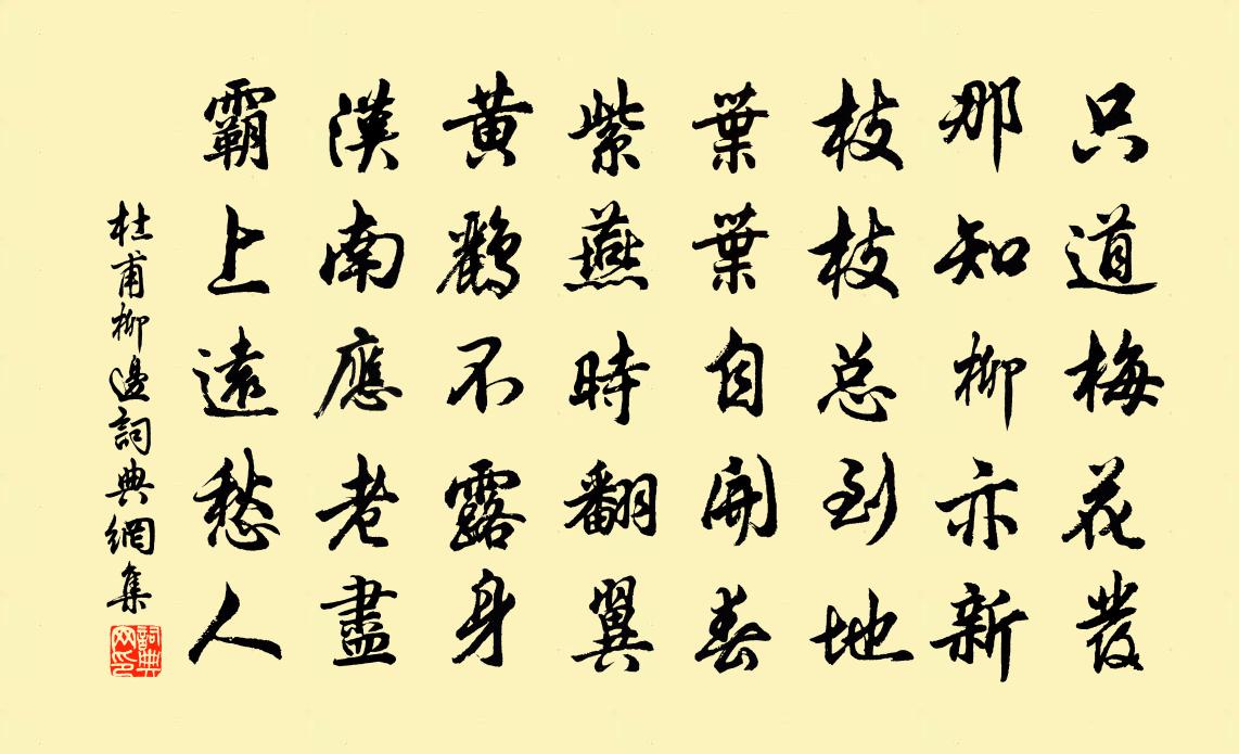 詩詞名句歷史字典書法欣賞書法字典國語詞典說文解字康熙字典古漢語字典標 題 作 者 詩 句 柳邊作者:杜甫 朝代:唐代柳邊原文只道梅花發,那知柳亦新。枝枝總到地,葉葉自開春。紫燕時翻翼,黃鸝不露身。漢南應老盡,霸上遠愁人。詩詞問答問:柳邊的作者是誰?答:杜甫問:柳邊寫於哪個朝代?答:唐代問:柳邊是什麼體裁?答:五律問:杜甫的名句有哪些?答:杜甫名句大全杜甫柳邊書法欣賞柳邊書法作品注釋全唐詩:卷234_26詩詞推薦秋思絕句陸游〔宋代〕菸草茫茫楚澤秋,牧童吹笛喚歸牛。九衢不是風塵少,一點能來此地不?看泉聽風圖唐寅〔明代〕俯首流泉仰聽風,泉聲風韻合笙鏞。如何不把瑤琴寫,為是無人姓是鍾。出德化門外董嗣杲〔宋代〕湖光分柳岸,野趣入桑畦。錦片段預告隨水,犀尖筍迸泥。淮雲收雨去,蜀鳥失春啼。隔浦軍船過,斜陽送鼓鼙。泊蘄口泛月猢中陸游〔宋代〕炎天倦長路,月夕泛平湖。晃漾披銀闕,清寒住玉壺。釣絲縈藻荇,蓬艇入菰蒲。自別蜻蜓浦,斯游十載無。洞霄宮王介〔宋代〕飄飄遼鶴去難尋,野客重來嘆復吟。許邁林中丹灶冷,郭文山上白雲深。南陵事蹟都非昔,北嶺歸期直到今。珍重莫處士悼詩王冕〔元代〕樂閒處士老西河,花竹亭台野趣多。不為功名移志節,每因興感費吟喔。義風孝行知誰擬,山色湖光奈爾何。轉首柯橋客亭陸游〔宋代〕梅子生仁燕護雛,遶檐新葉綠扶疏。朝來酒興不可耐,買得釣船雙鱖魚。題樊侯廟二首黃庭堅〔宋代〕門掩虛堂陰窈窈,風搖枯竹冷蕭蕭。邱虛余意誰相問,豐沛英魂我欲招。野老無知惟卜歲,神巫何事苦 * 。人歸公莫舞歌李賀〔唐代〕公莫舞歌者,詠項伯翼蔽劉沛公也。會中壯士,灼灼於人,故無復書;且南北樂府率有歌引。賀陋諸家,今重作公景泰山七仙寺方信孺〔宋代〕老衲誅茅昔小留,七仙陰為護岩幽。不將石履呈奇怪,安得西歸好話頭。哀王孫杜甫〔唐代〕長安城頭頭白烏,夜飛延秋門上呼。又向人家啄大屋,屋底達官走避胡。金鞭斷折九馬死。骨肉不待同馳驅。腰下越中杜牧〔唐代〕石城花暖鷓鴣飛,征客春帆秋不歸。猶自保郎心似石,綾梭夜夜織寒衣。望仙門張掄〔宋代〕紫微枝上露華濃。起秋風。管弦聲細出簾櫳。象筵中。仙酒斟雲液,山歌轉繞樑虹。此時佳會慶相逢。歡醉且從容古風其三十一李白〔唐代〕鄭客西入關。行行未能已。白馬華山君。相逢平原里。璧遺鎬池君。明年祖龍死。秦人相謂曰。吾屬可去矣。一往登頫江三絕趙宰增為四複次韻答之追和陳造〔宋代〕兩豪揮筆對江山,怪底風蜚齒頰間。雕虎未馴金索緊,長鯨已鱠釣竿閒。白下徐照〔宋代〕白下嚴州近,崎嶇昔未經。年豐山米賤,溪涸石苔腥。一月無新句,千岑役瘦形。人家今畏虎,未晚戶先扃。卜運算元 開門了化出馬鈺王哲〔元代〕你待堅心走。我待堅心守。百日扃門化出來,方是余開口。開取四時花,綻取三春柳。認取元初這個人,共飲長生送田遵古秀才梅堯臣〔宋代〕蹊。既見遊子發,登舟傍寒溪。沿江抵海澨,行陸至膠西。入門喜在顏,上堂拜阿{上彌下女}。四鄰持壺酒,雞和君錫題堯輔齋壁李覯〔宋代〕書林老仙頭欲斑,近日卜居吳楚間。 * 世界盡贏得,羲皇興味選追還。川流切對夏無暑,山月出來門未關。笑殺丹丘書懷林憲〔宋代〕靈鳳山前花片飛,讀書窗下碧雲棲。斷崖流水春不盡,苦竹紋禽日夜啼。禽聲不歇日欲暮,一點青燈照環堵。鏌鋣名句推薦天與秋光,轉轉情傷,探金英知近重陽。李清照《行香子·天與秋光》 西園何限相思樹,辛苦梅花候海棠。元好問《鷓鴣天·候館燈昏雨送涼》 今年游寓獨游秦,愁思看春不當春。杜審言《春日京中有懷》 風吹芳蘭折,日沒鳥雀喧。李白《送裴十八圖南歸嵩山二首》 愛棄發之費,而忘長發之利,不知權者也。韓非及後人《韓非子·六反》 春日載陽,有鳴倉庚。佚名《七月》 肯救人坑坎中,便是活菩薩王永彬《圍爐夜話·第二八則》 可憐九月初三夜,露似真珠月似弓。白居易《暮江吟》 若得山花插滿頭,莫問奴歸處。嚴蕊《卜運算元·不是愛風塵》 杪秋霜露重,晨起行幽谷。柳宗元《秋曉行南谷經荒村》