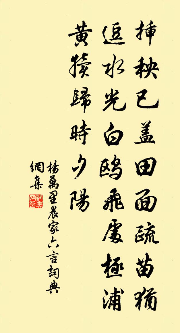 插秧已蓋田面,疏苗猶逗水光。白鷗飛處極浦,黃犢歸時夕陽。