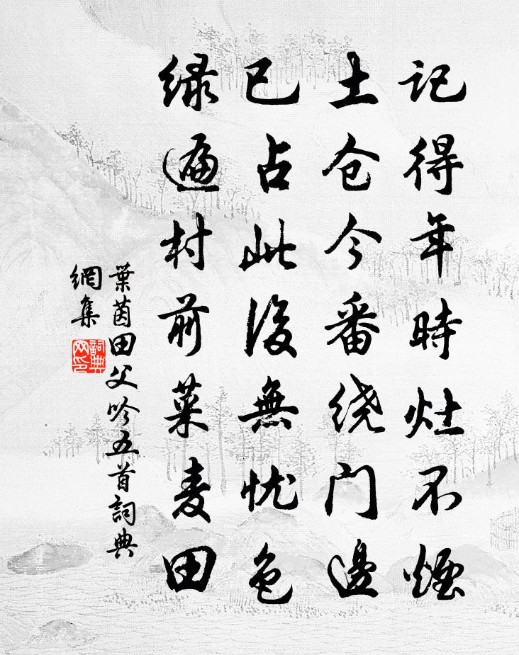 詩詞名句歷史字典書法欣賞書法字典國語詞典說文解字康熙字典古漢語字典標 題 作 者 詩 句 田父吟五首作者:葉茵 朝代:宋代田父吟五首原文記得年時灶不煙,土倉今番繞門邊。已占此後無憂色,綠遍村前菜麥田。詩詞問答問:田父吟五首的作者是誰?答:葉茵問:田父吟五首寫於哪個朝代?答:宋代葉茵田父吟五首書法欣賞田父吟五首書法作品詩詞推薦次七夕游松江韻葉茵〔宋代〕謫仙歌洞庭,坡翁賦赤壁。逢時汗漫遊,元不計何夕。慨慷睎英豪,老大謾悽惻。矧茲笠澤區,萬頃混空碧。一葦閨怨許必勝〔宋代〕房櫳微雨過,蟲思草根深。門外青苔色,無人閒到今。換衫依暮冷,開鏡倚秋心。別意猶能在,應來夢裹尋。桃源憶故人史達祖〔宋代〕雙鴛蹙月天津近。歸後嫩情常剩。燈市一年愁凝。心共梅花冷。網塵洞戶春沈靜。衰盡冶遊情性。羞見素娥嬌影。將仲子佚名〔先秦〕將仲子兮,無逾我里,無折我樹杞。豈敢愛之?畏我父母。仲可懷也,父母之言亦可畏也。將仲子兮,無逾我牆,嘉禾百詠百步橋張堯同〔宋代〕舊址依然在,荒墟未百年。還分一橋水,流入幾家田。書來上人房王之道〔宋代〕十里清風水拍天,老僧齋罷抱頭眠。丹楹畫棟看摧厭,好為僧伽作勝緣。曾谹父惠黃龍菜王洋〔宋代〕朝日團團齡碧峰,蔬盤牢饌四時同。園供小摘添幽事,雨打寒菘帶晚濃。可但牛香參玉版,直須進步禮黃龍。溪堂次韻劉貢父題文潞公草書蘇轍〔宋代〕鷹揚不減少年時,墨作龍蛇紙上飛。應笑學書心力盡,臨池寫遍未裁衣。許待制輓詞樓鑰〔宋代〕蚤擅文章價,名公屢品題。碑銘摹諫省,丘壑訪愚溪。得句追飛兔,摛毫走怒猊。遺編聞好在,後學仰筌蹄。暮春泛西湖次口號韻呈程待制十首陳造〔宋代〕幾飯南山佛老宮,詩昌譚勝每舂容。不妨重就山間宿,蔬筍香茶未闕供。送朱屯田赴辟成都蘇頌〔宋代〕贊條初罷浙江回,辟命還從蜀道來。朱紱聊光新幕府,烏星重照舊行台。秋登危棧煙霄界,曉望通闤錦繡堆。樂職和曾谹父促叢珍之集王洋〔宋代〕布穀但催耕,鳴鳩不喚晴。風添前夜急,花負去年盟。老去歡娛少,茶多懷抱清。論文一樽酒,何日向人傾。上東山墳寄敬之弟陳藻〔宋代〕東山零落古三丘,力薄那能抑得周。賴有阿連沾寸祿,我慚到老一來休。楚吟李商隱〔唐代〕山上離宮宮上樓,樓前宮畔暮江流。楚天長短黃昏雨,宋玉無愁亦自愁。偈頌十七首釋智愚〔宋代〕船上無散工,駕御有方所。打篙底打篙,搖櫓底折櫓。觸浪迎風天地寬,去來不礙東西浦。採桑子·潤州多景樓與孫巨源相遇蘇軾〔宋代〕多情多感仍多病,多景樓中。尊酒相逢。樂事回頭一笑空。停杯且聽琵琶語,細捻輕攏。醉臉春融。斜照江天一抹南紀黃文雷〔宋代〕南紀沾王澤,涵濡已百年。故應逢小劫,何得怨蒼天。舊觀寧無日,浮生自可憐。永懷千古事,感慨淚漣漣。題烏江東隆山鄧氏亭賀鑄〔宋代〕逋客今何許,空餘接隱亭。舟隨潮水上,門背夕陽扃。兔策塵生蠹,漁蓑雨化螢。題詩岩下石,聊代草堂靈。宮詞宋白〔宋代〕龍腦天香撒地衣,錦書新冊太真妃。宮官一夜鋪黃道,卻踏金蓮步步歸。菩薩蠻(贈張醫道服為別,且令餽河豚)辛棄疾〔宋代〕萬金不換囊中術。上醫元自能醫國。軟語到更闌。綈袍范叔寒。江頭楊柳路。馬踏春風去。快趁兩三杯。河豚欲上名句推薦佳期大堤下,淚向南雲滿李白《大堤曲》 春風不相識,何事入羅幃。李白《春思》 天長路遠魂飛苦,夢魂不到關山難。李白《長相思·其一》 人不可貌相,海水不可斗量。馮夢龍《醒世恆言·卷三》 浮雲遊子意,落日故人情。李白《送友人》 迢遞路回清野,人語漸無聞,空帶愁歸周邦彥《夜飛鵲·河橋送人處》 牛羊自歸村巷,童稚不識衣冠。王維《田園樂七首·其四》 江南憶,最憶是杭州。白居易《憶江南詞三首》 誠信者,天下之結也。管仲《管子·樞言》 雁濕行無次,花沾色更鮮。李世民《詠雨》