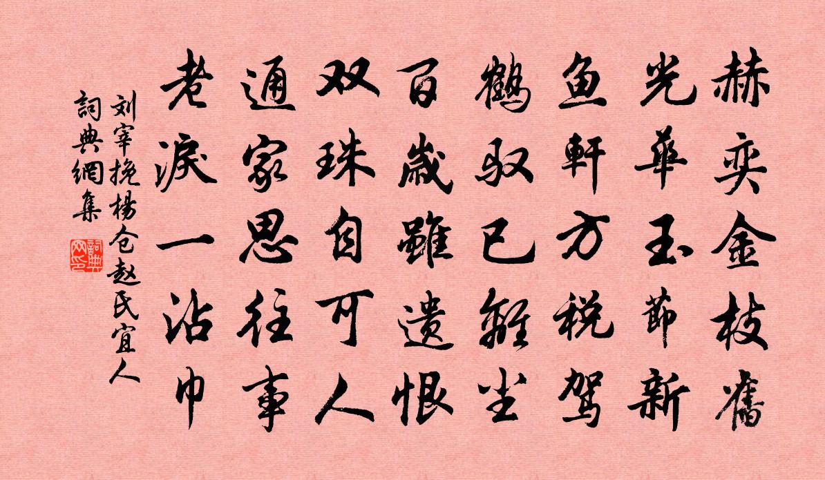 詩詞名句歷史字典書法欣賞書法字典國語詞典說文解字康熙字典古漢語字典標 題 作 者 詩 句 挽楊倉趙氏宜人作者:劉宰 朝代:宋代挽楊倉趙氏宜人原文赫奕金枝舊,光華玉節新。魚軒方稅駕,鶴馭已離塵。百歲雖遺恨,雙珠自可人。通家思往事,老淚一沾巾。詩詞問答問:挽楊倉趙氏宜人的作者是誰?答:劉宰問:挽楊倉趙氏宜人寫於哪個朝代?答:宋代劉宰挽楊倉趙氏宜人書法欣賞挽楊倉趙氏宜人書法作品詩詞推薦焦山汪元量〔宋代〕焦山寺裏白雲堆,百尺危樓百尺台。持咒聖僧漂海去,尋訪閒客渡江來。雷轟古樹蜈公出,日轉虛檐燕子回。案上謝人分寄密雲大小團毛滂〔宋代〕密雲不雨西郊黑,小龍蜿蜒出朝夕。中有濯枝三日霖,可洗流金千里赤。大龍雨足意貌閒,萬里澤流才一息。無心陰雨白居易〔唐代〕潤葉濡枝浹四方,濃雲來去勢何長。曠然寰宇清風滿,救旱功高暑氣涼。清平樂 古齊約余游山,而因循不果,用韻戲劉敏中〔元代〕山中之興以動之山靈久望。要看游山狀。酒詩囊空放蕩。不肯凌風直上。快教去結山庵。安排暮歷朝探。整頃衰【仙呂】點絳唇_道妙玄微,佚名〔元代〕道妙玄微,先須要悟明心地,非容易。見放著古聖文書,內隱著真訊息。 【混江龍】若說著胎元根蒂,只除是雜詩五首曾鞏〔宋代〕妯仕任固小,會計未可失。方今備千品,內外有卑秩。孰當責在己,施設能自必。拘文已難騁,避世固多屈。細雲讀劉蕡策陳洎〔宋代〕藥石危言治亂箴,賈生晁錯是知音。可憐當日司文者,不畏人言合愧心。柏陳師道〔宋代〕用直寧論世,名成不待官。低枝緣我有,偃蓋到誰看。秀色有新故,英姿無暑寒。要為千歲計,豈慮萬牛難。長門曲林魯〔宋代〕因宿秋山懶畫眉,入宮歲早寵恩遲。詩成莫寫溝中葉,流到人間是幾時。抒懷呈同舍宋祁〔宋代〕本自草茆賤,非貪箕斗名。客心摧似櫓,官謗沸如羹。晝役迴腸數,秋扶病體輕。長年書轉忘,多露涕先橫。已分雜詩李復〔宋代〕晨炊未登盤,飢腸已戚戚。欲問堂上人,先聞發歎息。苟念一餉飢,況艱終歲食。茫茫九州間,幾人悲罄室。吾欲一落索方千里〔宋代〕月影娟娟明秀。簾波吹皺。徘徊空度可憐宵,謾問道、因誰瘦。不見芳音長久。鱗鴻空有。渭城西路恨依然,尚夢望江南(仆既為宋壺山說其自說未盡處,壺山必有答語,仆自嘲三解)戴復古〔宋代〕石屏老,家住海東雲。本是尋常田舍子,如何呼喚作詩人。無益費精神。千首富,不救一生貧。賈島形模元自瘦,武仲伏蒙知府待制寵示新詩課成短篇以獻左右孔武仲〔宋代〕侍從榮依日月光,更因盤錯試鋒鋩。諫書不上時無事,訟缿無留日倍長。舊好葭莩容間見,新篇錦繡得家藏。自慚人定白居易〔唐代〕人定月朧明,香消枕簟清。翠屏遮燭影,紅袖下簾聲。坐久吟方罷,眠初夢未成。誰家教鸚鵡,故故語相驚。醜奴兒慢/採桑子慢盧祖皋〔宋代〕湘筠展夢,還是帶恨敧枕。對千頃、風荷涼艷,水竹清陰。半掩龜紗,幾回小語月華侵。娉婷何處,回首畫橋,朱偈頌一百二十三首釋崇岳〔宋代〕達磨九年面壁,二祖立雪齊腰。三人證龜成鱉,一塊頑銅鈍鐵。送宋知府歸閬州黃榦〔宋代〕丈夫不遇歸西州,天遣旱魃為王留。誰知冥鴻向蓬蓽,一使深鷁膠淺流。載書萬卷堪自樂,端坐十日吾何憂。使君操葉舟凌巨浪訪道祖葛立方〔宋代〕一牛鳴處是君家,乘興煙蓬蹴浪花。銀蒲流支新得路,人驚仙客在浮槎。如此江山 泛曲阿後湖 曲阿詞綜曲阿詞綜中,虞薦發〔元代〕依依楊柳,青絲縷、掩映綠波南浦。燕掠橫斜,鱗遊蕩漾,恰是湔裙時序。清泠如許。恍鏡影空磨,簟痕密聚。欲名句推薦萬里赴戎機,關山度若飛佚名《木蘭詩/木蘭辭》 獨上江樓思渺然,月光如水水如天。趙嘏《江樓舊感》 非懷北歸興,何用勝羈愁韓愈《洞庭湖阻風贈張十一署·時自陽山徙掾江陵》 春欲盡,日遲遲,牡丹時歐陽炯《三字令·春欲盡》 淇園春竹美,軍宴日椎牛。司馬光《送龔章判官之衛州·新及第》 月黑雁飛高,單于夜遁逃。盧綸《和張僕射塞下曲·其三》 秋鬢含霜白,衰顏倚酒紅。尹式《別宋常侍》 和大怨,必有餘怨;報怨以德,安可以為善?老子《老子·德經·第七十九章》 松花釀酒,春水煎茶。張可久《人月圓·山中書事》 君子之守,修其身而天下平。孟子《孟子·盡心章句下·第三十二節》