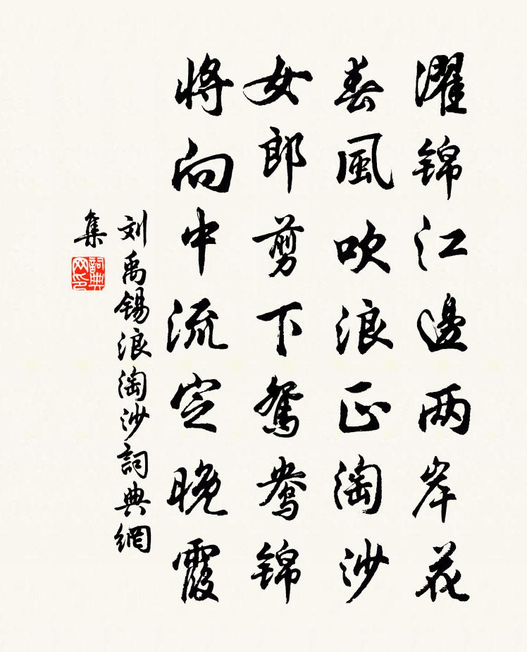 濯錦江邊兩岸花,春風吹浪正淘沙。女郎剪下鴛鴦錦,將向中流定晚霞。