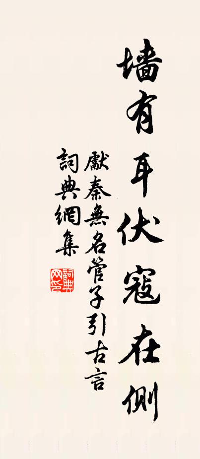 詩詞名句歷史字典書法欣賞書法字典國語詞典說文解字康熙字典古漢語字典標 題 作 者 詩 句 管子引古言作者:先秦無名 朝代:先秦管子引古言原文牆有耳。伏寇在側。詩詞問答問:管子引古言的作者是誰?答:先秦無名問:管子引古言寫於哪個朝代?答:先秦問:管子引古言是什麼體裁?答:樂府先秦無名管子引古言書法欣賞管子引古言書法作品注釋管子詩詞推薦鐘山寺樂史〔宋代〕千峰夾一徑,一徑花枕泉。聽泉復看花,行到鐘山前。古寺雲生屋,高僧月伴禪。自慚留一宿,區馬又朝天。次韻六安魏明府三首陳舜俞〔宋代〕少年心志欲摩空,漸老卑飛悔滿悰。早悟割雞堪飽腹,不須辛苦學屠龍。三代門再吟周曇〔唐代〕東鄰不事事西鄰,御物卑和物自親。天下言知天下者,兆人無主屬賢人。明堂侍祠十絕楊簡〔宋代〕玉佩珊珊出禁扉,金蓮分炬散芳菲。祠班咫尺臨黃道,惹得天香滿袖歸。頌古二十四首釋勝〔宋代〕佛法無情報爾曹,忽生忽殺在吹毛。若教韓信得妙訣,自是深明防漢高。贈相士葉秋月方逢振〔宋代〕 * 道眼明如月,學士神仙帶不來。天上貴人若相同,只消三字畫爐灰題放生池舒坦〔宋代〕南州幾萬家,舟楫江湖上。罷羅竭魚鱉,方饜口腹養。何年長者子,於此事脫放。藻荇被清流,春風不驚浪。直鉤題耕織圖二十四首奉懿旨撰趙孟頫〔元代〕孟夏土加潤,苗生無近遠。漫漫冒淺陂,芃芃被長阪。嘉穀雖已殖,惡草亦滋蔓。君子與小人,並處必為患。朝朝曲江亭望慈恩寺杏園花發周弘亮〔唐代〕江亭閒望處,遠近見秦源。古寺遲春景,新花發杏園。萼中輕蕊密,枝上素姿繁。拂雨雲初起,含風雪欲翻。容輝送陸明府歸嘉禾董嗣杲〔宋代〕塵雜莫湔遊宦非,端憂何暇寓琴徽。孝先便腹尚嘲懶,元亮折腰須問歸。所懼棄官鄉曲笑,不思獻策廟堂稀。義和春遊和胡叔芳韻真山民〔宋代〕春光潑眼明,占勝得新亭。棠醉風扶起,柳眠鶯喚醒。非無杯 * ,安得鬢皆青。且事日為樂,歌聲莫暫停。西江月史達祖〔宋代〕裙摺綠羅芳草,冠梁白玉芙蓉。次公筵上見山公。紅綬欲銜雙鳳。已向冰奩約月,更來玉界乘風。凌波襪冷一尊同句胡仔〔宋代〕潤資宿麥兩歧秀,寒勒新花幾信風。次仲氏韻孫應時〔宋代〕麴生真得聖之清,風味超然一座頃。肯向春寒慰牢落,令人心事轉和平。春雪四首趙蕃〔宋代〕早歷三時久,荒成比歲連。只疑吾邑爾,復道數州然。懍懍溝虞墜,嗷嗷釜苦懸。縣官深惻怛,長吏闕流宣。賑米陪杜充張恕鴻慶宮避暑蘇轍〔宋代〕至後雨如瀉,晴來熱更多。簿書沾汗垢,岩石思藤蘿。賴有祠宮靜,時容俗客過。老郎無不可,公子亦能和。道勝感山十詠慈航姚勉〔宋代〕佛手撐慈航,尚欲濟我人。寄語作舟者,江濤渺無津。白雲夫舊居李商隱〔唐代〕平生誤識白雲夫,再到仙檐憶酒壚。牆外萬株人絕跡,夕陽惟照欲棲烏。九月雪十月雷記異方回〔宋代〕九月二十五夜雪,南天稻梁未全結。十月二十五夜雷,東風桃李俱誤開。七十三翁駭何謂,雷舊慣聞雪則未。水旱拾羽曲文同〔宋代〕新羅砑紅裙襵齊,彩縷刺衫花倒提。新晴暖日麗菸草,金獸齧鎖藏春閨。朱橋逼江曉沙白,錦帶交風大堤窄。蘭洲名句推薦萬事到頭都是夢,休休。明日黃花蝶也愁。蘇軾《南鄉子·重九涵輝樓呈徐君猷》 胡瓶落膊紫薄汗,碎葉城西秋月團。王昌齡《從軍行七首》 旦別河橋楊柳風,夕臥伊川桃李月。宋之問《寒食還陸渾別業》 天上若無修月戶,桂枝撐損向西輪。米芾《中秋登樓望月》 不負東籬約,攜尊過草堂。妙信《九日酬諸子》 圖未就之功,不如保已成之業洪應明《菜根譚·概論》 歷覽前賢國與家,成由勤儉破由奢。李商隱《詠史二首·其二》 城邊有古樹,日夕連秋聲。李白《沙丘城下寄杜甫》 一年最好,偏是重陽。吳文英《惜黃花慢·菊》 野雲萬里無城郭,雨雪紛紛連大漠。李頎《古從軍行》