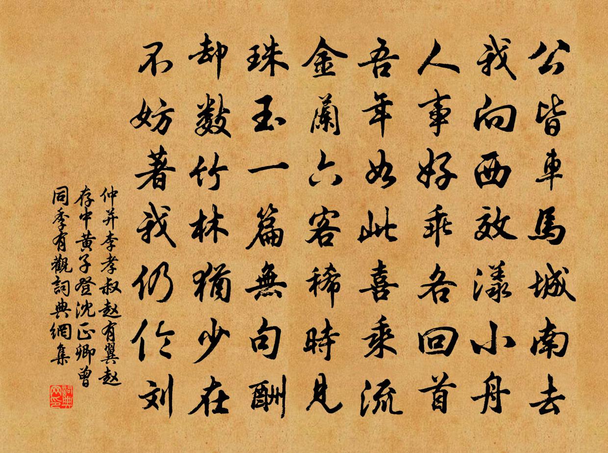 詩詞名句歷史字典書法欣賞書法字典國語詞典說文解字康熙字典古漢語字典標 題 作 者 詩 句 李孝叔趙有翼趙存中黃子登沈正卿曾同季有觀作者:仲並 朝代:宋代原文公皆車馬城南去,我向西效漾小舟。人事好乖各回首,吾年如此喜乘流。金蘭六客稀時見,珠玉一篇無句酬。卻數竹林猶少在,不妨著我仍倫劉。詩詞問答問:《李孝叔趙有翼趙存中黃子登沈正卿曾同季有觀》的作者是誰?答:仲並問:該詩寫於哪個朝代?答:宋代書法欣賞李孝叔趙有翼趙存中黃子登沈正卿曾同季有觀書法作品詩文賞析【原題】:李孝叔趙有翼趙存中黃子登沈正卿曾同季有觀梅道場之約仆偶過西山不得陪六客之末歸讀眾作因繼韻詩詞推薦次韻翁士秀見贈二首曾協〔宋代〕興來躡履便追隨,共約乘風汗漫期。述作正須陶令手,利名不上紫芝眉。名高似斗誰能挹,量大如淵不可窺。老去塞上曲·胡風略地燒連山戎昱〔唐代〕胡風略地燒連山,碎葉孤城未下關。山頭烽子聲聲叫,知是將軍夜獵還。朝中措(詠三十九數)程垓〔宋代〕真游六六洞中仙。騎鶴下三天。休道日斜歲暮,行年方是韶華。相逢一笑,此心不動,須待明年。要得安排穩當,春殘翁宏〔唐代〕又是春殘也,如何出翠幃!落花人獨立,微雨燕雙飛。寓目魂將斷,經年夢亦非。那堪向愁夕,蕭颯暮蟬輝。蘭溪雙塔楊萬里〔宋代〕高塔無尖低塔尖,一披錦衲一銀衫。問渠何故終不語,卻倩灘聲替佛談。玩郡齋海榴宋之問〔唐代〕澤國韶氣早,開簾延霽天。野禽宵未囀,山蜚晝仍眠。目茲海榴發,列映岩楹前。熠爚御風靜,葳蕤含景鮮。清晨次韻和龍圖何學士以榮憩鄉州有感舊見存之作宋庠〔宋代〕昔歲西都餞使旗,今茲何幸復相依。潁川士族占星聚,遼海鄉人看鶴歸。乘塞惠風消戰略,論文精辯破談圍。衰瓮簡李牧之章甫〔宋代〕落日還家聊面壁,剝啄誰來破幽寂。語音相似桑梓同,風骨軒然雙頰紅。亹亹清談霏玉屑,多說東湖與霜傑。江西舟行西湖詩贈諸友白玉蟾〔宋代〕二十年來雲水身,今凡七度踏京塵。絲長歲月能多少,粟大功名徒苦辛。白日戲陪人世事,綠煙鎖斷洞門春。雲岩游峽山飛來寺高紳〔宋代〕古寺清江上,維舟夕照前。山根盤到海,塔影直侵天。蘿月空禪石,霜鍾落客船。秋風懶回首,送目入雲煙。陳杰荊州之役伯文實約予聞其沒官愴甚不寐遂蘇泂〔宋代〕細雨歸帆暮,西風遠笛哀。江空人永已,興盡首重回。嗣祖焉非福,王生本不來。從今長謝客,穩臥北山隈。有贈趙崇鉘〔宋代〕別意參差繞碧欄,外頭斜月逼人寒。鉤簾恐礙雙棲鵲,乍可桃花隔霧看。逢王十二學士入翰林,因以詩贈劉禹錫〔唐代〕廄馬翩翩禁外逢,星槎上漢杳難從。定知欲報淮南詔,促召王褒入九重。題峴山圖三絕釋寶曇〔宋代〕湛輩而今豈有知,滔滔江漢定何時。無邊落日丹楓外,有客來看墮淚碑。天人吟邵雍〔宋代〕天生此身人力寄,人力盡兮天數至。天人相去不毫芒,若有毫芒卻成二。湯信卿新移書塾顧逢〔宋代〕又見榮遷去,門多客往還。別開新縫帳,重對舊青山。孤塔秋風裡,閒雲遠樹間。西窗堪夜坐,有月不須關。頃嘗將漕淮東林子長今膺是選因以小詩述懷庶虞儔〔宋代〕德星天遣出淮濆,玉節光華委十分。可但籌邊專饋餉,直須曠土盡耕耘。向來我已慚無效,此去群當勉策勛。尚有壽湖南管倉五首廖行之〔宋代〕敬仲始鹽筴,豐財此權輿。端能佐經費,農末深相須。惟皇敘八政,國裕民無癯。誰其制低昂,江左今夷吾。西江月(十之十)夏元鼎〔宋代〕行處青牛引道,飛來鶴頂呈丹。談玄玉局在西川。此日方當龍漢。千載寂寥吾道,可憐平叔多言。畫蛇添足悟真篇縣廨海棠盛開二絕句項安世〔宋代〕美人宿酒未全醒,困倚妝檯睡不成。一半醉顏無處畫,似紅如白最多情。名句推薦從善如順流,去惡如探湯。房玄齡《晉書·列傳·第五十七章》 陪都歌舞迎佳節,遙祝延安景物華。 * 《元旦口占用柳亞子懷人韻》 天仙碧玉瓊瑤,點點揚花,片片鵝毛。薛昂夫《蟾宮曲·雪》 一道鵲橋橫渺渺,千聲玉佩過玲玲。徐凝《七夕》 遷客此時徒極目,長洲孤月向誰明。李白《鸚鵡洲》 側見雙翠鳥,巢在三珠樹張九齡《感遇十二首·其四》 已忍伶俜十年事,強移棲息一枝安。杜甫《宿府》 桑柘廢來猶納稅,田園荒後尚征苗。杜荀鶴《山中寡婦 / 時世行》 春晚綠野秀,岩高白雲屯。謝靈運《入彭蠡湖口》 易求無價寶,難得有心郎。魚玄機《贈鄰女 / 寄李億員外》