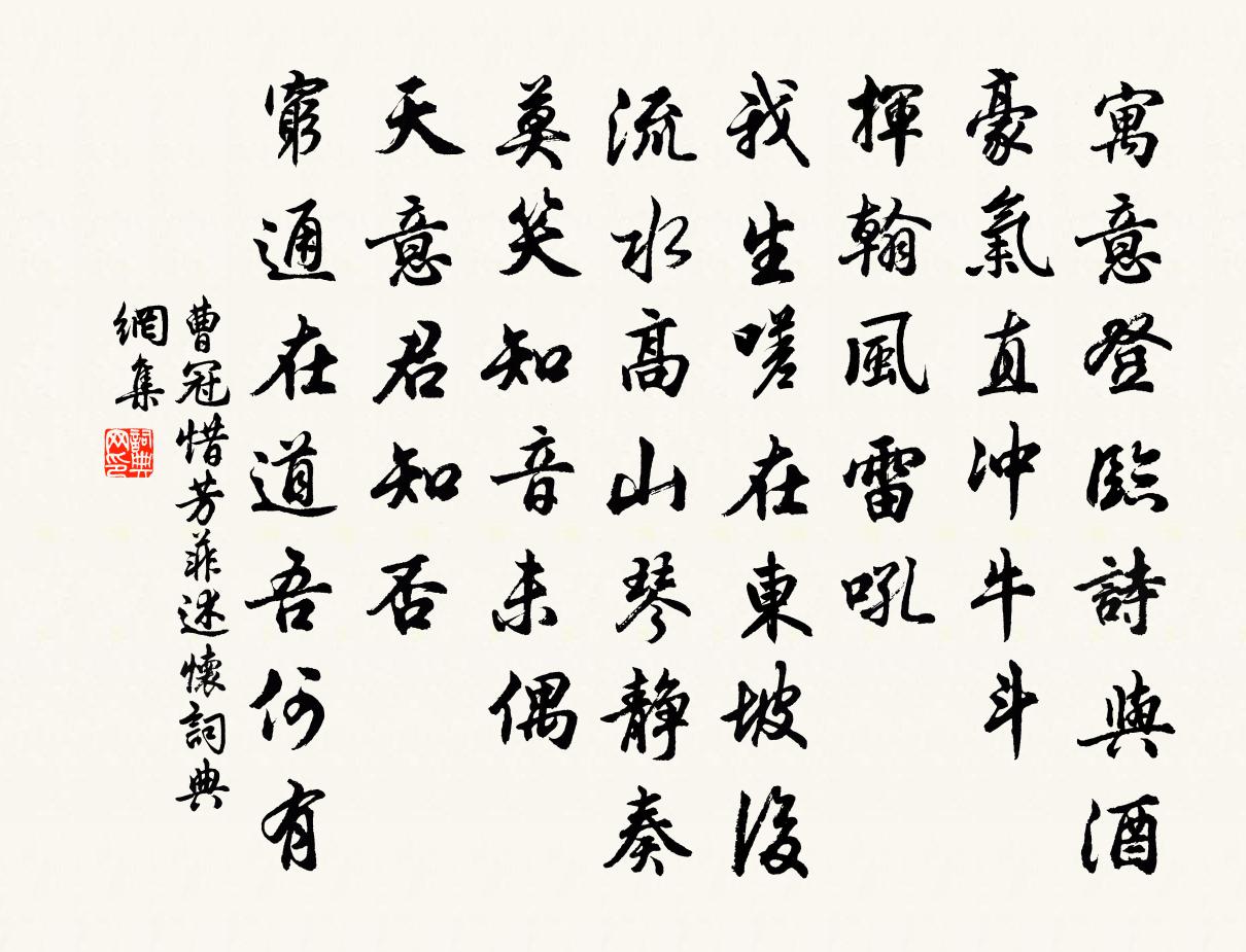詩詞名句歷史字典書法欣賞書法字典國語詞典說文解字康熙字典古漢語字典標 題 作 者 詩 句 惜芳菲(述懷)作者:曹冠 朝代:宋代惜芳菲(述懷)原文寓意登臨詩與酒。豪氣直衝牛斗。揮翰風雷吼。我生嗟在東坡後。流水高山琴靜奏。莫笑知音未偶。天意君知否。窮通在道吾何有。詩詞問答問:惜芳菲(述懷)的作者是誰?答:曹冠問:惜芳菲(述懷)寫於哪個朝代?答:宋代問:惜芳菲(述懷)是什麼體裁?答:詞曹冠惜芳菲(述懷)書法欣賞惜芳菲(述懷)書法作品詩詞推薦晏子引語佚名〔先秦〕言發於爾。不可止於遠。行存於身。不可掩於眾。賜宮人慶奴李煜〔唐代〕風情漸老見春羞,到處消魂感舊遊。 多謝長條似相識,強垂煙態拂人頭。浣溪沙·誰道飄零不可憐納蘭性德〔清代〕誰道飄零不可憐,舊遊時節好花天,斷腸人去自經年。一片暈紅才著雨,幾絲柔綠乍和煙。倩魂銷盡夕陽前。絕句六十四首張伯端〔宋代〕一陽才動作丹時,鉛鼎溫溫照幌帷。受氣之初容易識,抽添運用且防危。句徐仲雅〔唐代〕屋面盡生人耳朵,籬頭多是老翁須。平分造化雙苞去,拆破春風兩面開。雲路半開千里月,洞門斜掩一天春。鑿開宮詞張公庠〔宋代〕禁掖人閒小小風,彈棋圍坐柳陰中。正憐美酒杯中綠,又嘆飛花席上紅。早上凌霄第六峰入紫溪禮白鶴觀祠於鵠〔唐代〕路轉第六峰,傳是十里程。放石試淺深,M 壁蛇鳥驚。欲下先襞衣,路底避枯莖。回途歇嵌窟,整帶重冠纓。及西山余靖〔宋代〕萬壑千岩斗物華,搘筇閒訪道生涯。一壇星斗修真館,數里雲煙斸藥家。魚戲竹溪寒影碎,路穿松塢翠陰斜。桃源頤軒詩六首黃庭堅〔宋代〕樞機要發遲,飲食戒味厚。漁人溺於波,君子溺於口。松隱雨過二首曹勛〔宋代〕坐見青天變黑雲,雨來海上似翻盆。千岩萬壑方噴薄,寂歷斜陽已掛門。早渡揚子江(時王璠在浙西)李紳〔唐代〕日沖海浪翻銀屋,江轉秋波走雪山。青嶂迥開蹲虎戍,碧流潛伏躍龍關。地分吳楚星辰內,水迫滄溟宇宙間。焚卻鷓鴣天李之儀〔宋代〕節是重陽卻斗寒。可堪風雨累尋歡。雖辜早菊同高柳,聊楫殘蕉共小欄。浮蟻嫩,炷煙盤。恨無鶯唱舞催鸞。空驚聞嚴坦叔入朝再用前韻戴復古〔宋代〕我本江湖客,歸來二月春。居多閉門日,未卜賞花辰。繞樹鵲聲喜,隔簾鶯語新。可憐垂白叟,卻羨踏青人。達本王安石〔宋代〕未能達本且歸根,真照無知豈待言。枯木岩前猶失路,那堪春入武陵原。【越調】柳營曲喬吉〔元代〕有感薄命妾,重離別,長吁一聲腸斷也。悶弓兒難拽,愁窖兒新掘,花擔兒怕擔折。蘭舟夢水繞雲結,香閨恨燭滅芹溪八詠葉善夫〔宋代〕月光如水水連天,萬頃玻璃浸碧淵。一顆驪珠收不去,幾回驚起臥龍眠。偈頌一百三十六首釋惟一〔宋代〕涅盤心,差別智。明之既難,會之不易。如千手異執千目異雇元同一身,似萬派爭流百川競注皆歸一水。差之毫釐莎柵聯句韓愈〔唐代〕冰溪時咽絕,風櫪方軒舉。 ——韓愈此處不斷腸,定知無斷處。 ——孟郊送趙局之官陳文蔚〔宋代〕琴書結束定何時,折贈新年梅一枝。詩過釣台天欲雪,春歸湖岸柳成絲。交遊文社頓成闊,富貴帝鄉今可期。小試正月二十七雨中過蘇堤葛天民〔宋代〕一堤楊柳占春風,柳外群山細雨中。人苦未晴渾不到,只宜老眼看空濛。名句推薦客醉倚河橋,清光愁玉簫。高觀國《菩薩蠻·何須急管吹雲暝》 政者正也。君為正,則百姓從政矣。戴聖《禮記·哀公問》 亂點碎紅山杏發,平鋪新綠水蘋生。白居易《南湖早春》 客行野田間,比屋皆閉戶。姚合《莊居野行》 況是清明好天氣,不妨游衍莫忘歸。程顥《郊行即事》 人之性惡,其善者偽也。荀子《荀子·性惡》 登鸞車,侍軒轅,遨遊青天中,其樂不可言。李白《飛龍引二首·其一》 山有木兮木有枝,心悅君兮君不知。佚名《越人歌》 自笑好山如好色,只今懷樹更懷人。閒愁閒恨一番新。辛棄疾《浣溪沙·偕叔高子似宿山寺戲作》 燒痕慘澹帶昏鴉,數盡寒梅未見花。陳孚《詠永州》