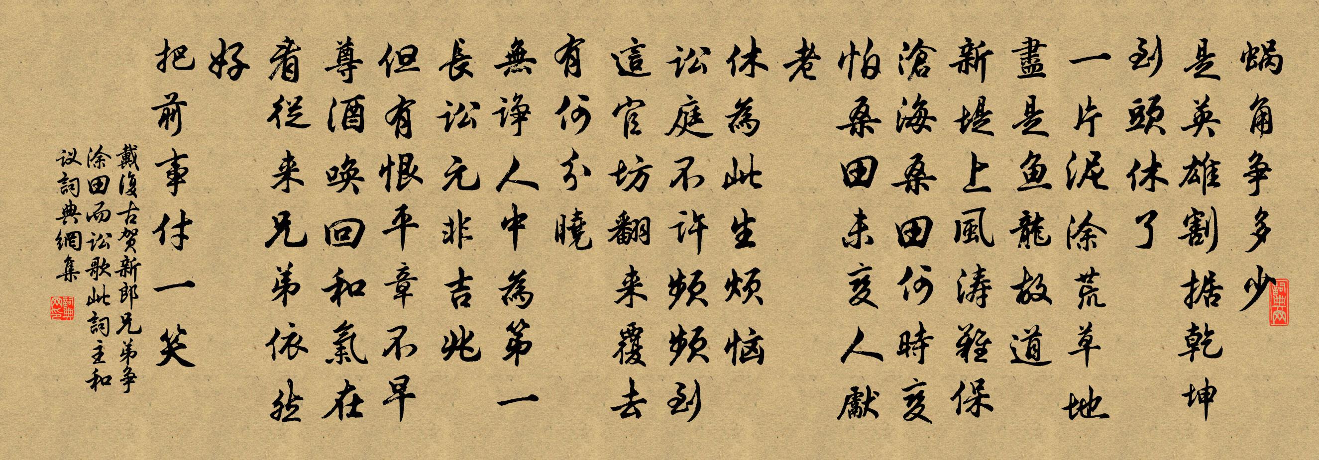 蝸角爭多少。是英雄、割據乾坤,到頭休了。