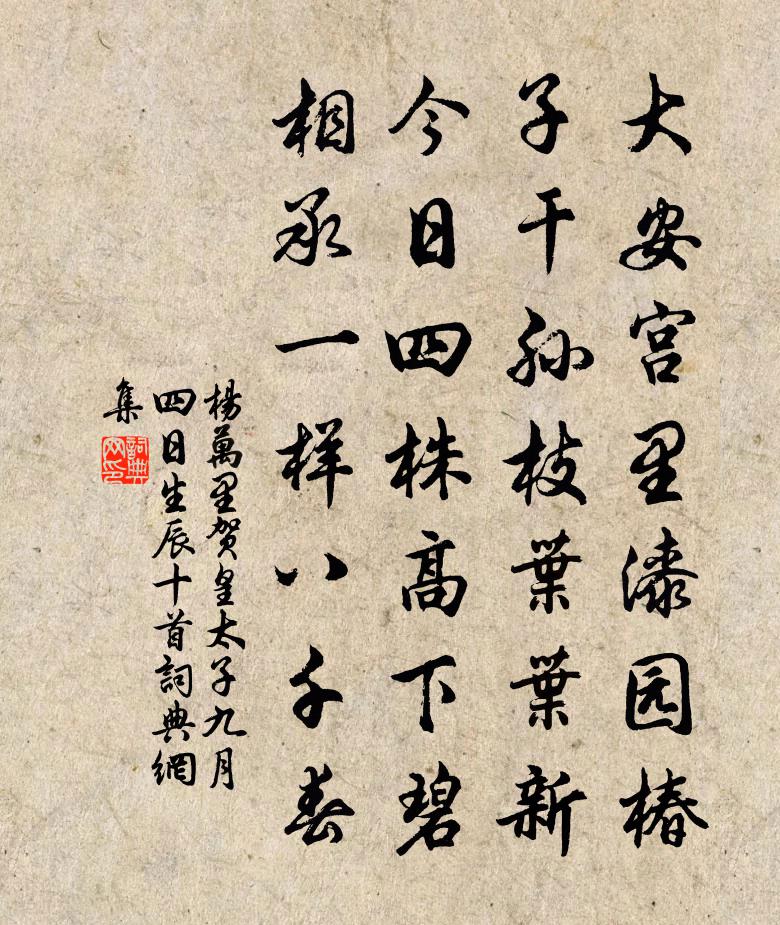 大安宮裡漆園椿,子乾孫枝葉葉新。今日四株高下碧,相承一樣八千春。