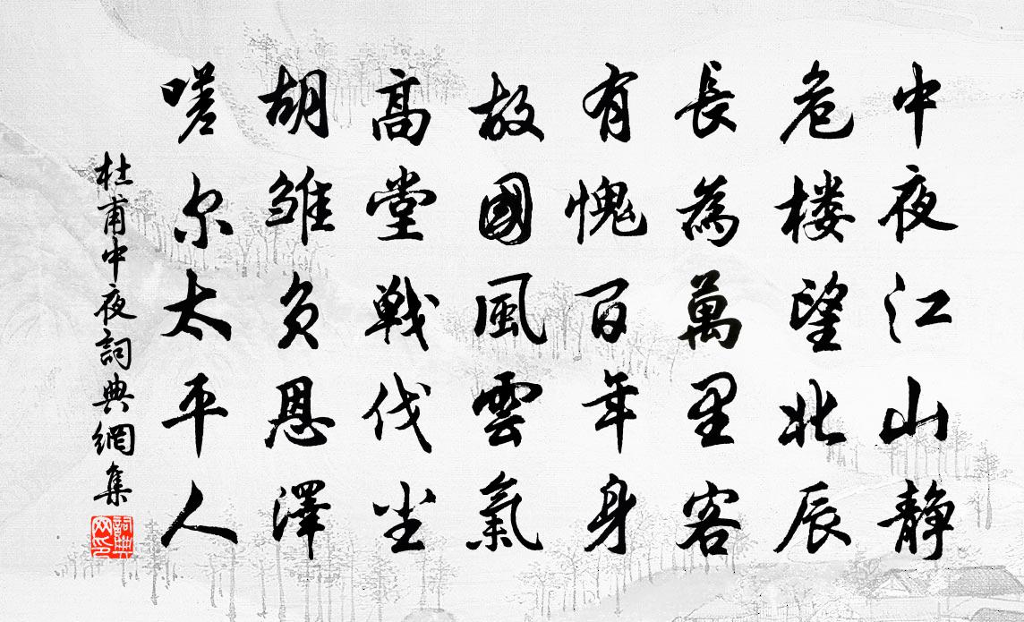 中夜江山靜,危樓望北辰。長為萬里客,有愧百年身。