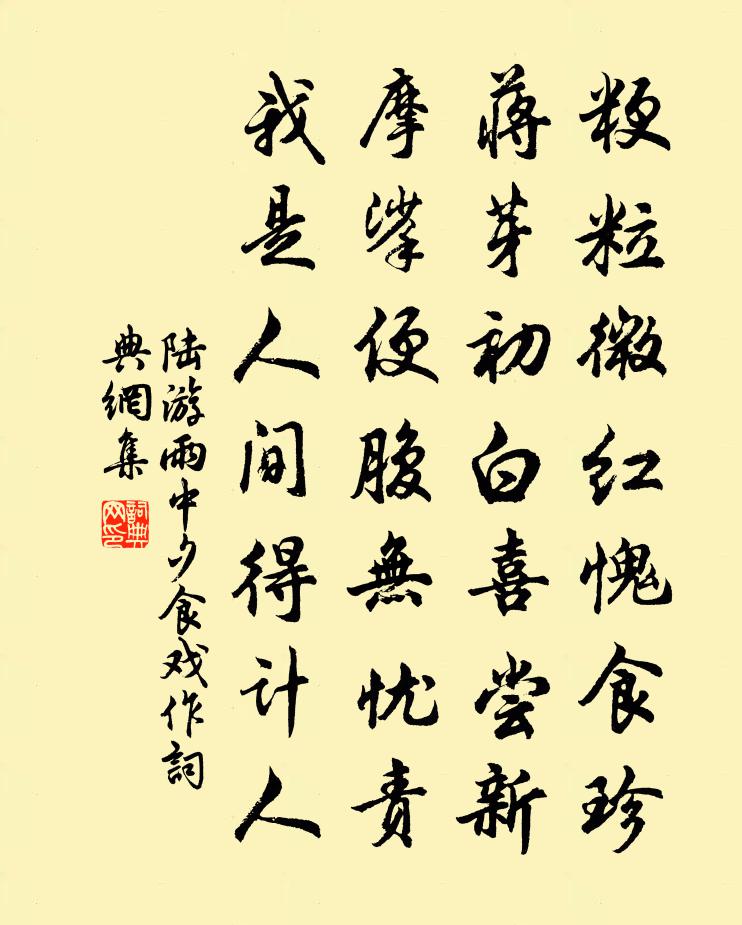 粳粒微紅愧食珍,蔣芽初白喜嘗新。摩挲便腹無憂責,我是人間得計人。