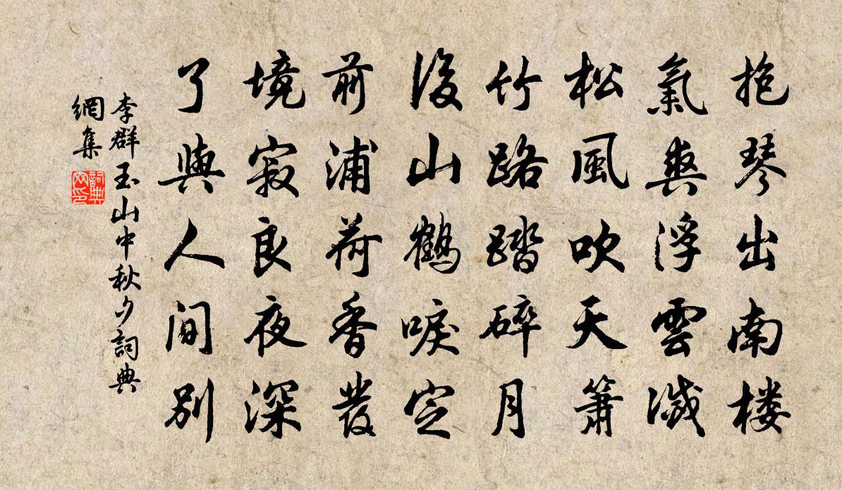 詩詞名句歷史字典書法欣賞書法字典國語詞典說文解字康熙字典古漢語字典標 題 作 者 詩 句 山中秋夕作者:李群玉 朝代:唐代山中秋夕原文抱琴出南樓,氣爽浮雲滅。松風吹天簫,竹路踏碎月。後山鶴唳定,前浦荷香發。境寂良夜深,了與人間別。詩詞問答問:山中秋夕的作者是誰?答:李群玉問:山中秋夕寫於哪個朝代?答:唐代李群玉山中秋夕書法欣賞山中秋夕書法作品注釋全唐詩:卷568-8詩詞推薦除夜樂城逢孟浩然張子容〔唐代〕遠客襄陽郡,來過海岸家。樽開柏葉酒,燈發九枝花。妙曲逢盧女,高才得孟嘉。東山行樂意,非是競繁華。編猥作姜特立〔宋代〕老來事業無多子,收拾新詩又滿編。金玉那能潤身後,等閒猶作百年傳。朝中措(黃帥憲侍兒倩奴)洪适〔宋代〕嘉禾一別十經春。清泖記垂綸。今日天涯淪落,跫然一見佳人。酒浮重碧,聲低雲葉,香趁霞裙。準擬魁星歸去,齊天樂姬翼〔元代〕自為形所累,寒餓交侵,贅疣何異。試究虛玄從初本,有一點圓明無際。塵緣漠漠,似千里晴空,幻生雲醫。仗此六言章甫〔宋代〕一丘一壑粗足,老圃老農可師。雞唱不踰風雨,蛙鳴何擇官私。詠史詩牛渚胡曾〔唐代〕溫嶠南歸輟棹晨,燃犀牛渚照通津。誰知萬丈洪流下,更有朱衣躍馬人。依韻和表臣見贈梅堯臣〔宋代〕中間會與別,不啻二十年。向來君之官,我必贈以篇。今過臨淮郡,惠好情聯聯。訪我車騎都,宴我鶯花然。此當春日宴共樂台黃公度〔宋代〕畫棟朱甍插紫清,連山帶水自紆縈。閭閻高下魚鱗比,田畝縱橫基局平。花發鳥啼春耐事,夜闌客散月多情。寸陰客中作牟融〔唐代〕十年江漢客,幾度帝京游。跡比風前葉,身如水上鷗。醉吟愁里月,羞對鏡中秋。悵望頻回首,西風憶故丘。甘雨應祈貫休〔唐代〕春雨偶愆期,草木亦未覺。君侯不遑處,退食或閉閣。東海浪滔滔,西江波漠漠。得不願身為大虬,金其角,玉其偶成曹彥約〔宋代〕詩痴正自不煩狼,只為英才輒墮中。今日已成風欲後,後生個個入樊籠。與謬栓法同行口占分水嶺詩駱羅憲〔宋代〕盡道今年雨意稠,踏歌芒時偏東疇。微官祗有半豐願,一飽高眠萬事休。一落索陸游〔宋代〕識破浮生虛妄。從人譏謗。此身恰似弄潮兒,曾過了、千重浪。且喜歸來無恙。一壺春釀。雨蓑煙笠傍漁磯,應不悼鄭彥繼書墓亭朱槔〔宋代〕蒼梧翠柏泣西風,尺冢巍然宿草中。寶劍何心求季子,只雞今日過橋公。麟經有味人誰識,鶴陣論功氣自雄。欲拂正夫飲遐舉家留佳什仆酷愛其金斗玉泉之句輒鄭獬〔宋代〕相逢漸向白頭年,世路諳來盡付天。六印雖多終是客,一壺才倒即為仙。穿天入月捉詩句,搥鼓插旗飛酒船。長願春曉毛滂〔宋代〕爐香燼冷袷衣寒,雨過園林翠作團。剩得風法何處著,紅薔薇搭小欄乾。中旬休日呈岩老鞏豐〔宋代〕近見東郊出土牛,燒燈已過又旬休。酸風鱗面慵開眼,細雨毛空怯上樓。百歲光陰真蟻穴,一年寒燠未鴻溝。偷閒連日作雨苦熱陸游〔宋代〕天地一氣爾,陰陽司闔開,鬱蒸以為雨,回薄以為雷。久郁無所泄,造化安在哉?衣其欲雨時,雖天不能回。此豈梅花喜神譜欲開八枝宋伯仁〔宋代〕燈火迫新涼,志士功名重。十年窗下愁,會見金蓮寵。青渠追和宋金都壁間韻洪咨夔〔宋代〕汗青孰與老黃間,能為君王把蜀山。懊惱秋風吹客鬢,一年三過劍門關。名句推薦語來江色暮,獨自下寒煙。李白《尋雍尊師隱居》 行雲卻在行舟下,空水澄鮮,俯仰留連,疑是湖中別有天。歐陽修《採桑子·畫船載酒西湖好》 短長亭子短長橋,橋外垂楊一萬條。錢枚《憶王孫·短長亭子短長橋》 如來不應以具足諸相見。鳩摩羅什譯《金剛經·離色離相》 誰料蘇卿老歸國,茂陵松柏雨蕭蕭。李商隱《茂陵》 當時輕別意中人,山長水遠知何處。晏殊《踏莎行·碧海無波》 東邊日出西邊雨,道是無晴卻有晴。劉禹錫《竹枝詞二首·其一》 檻菊愁煙蘭泣露。羅幕輕寒,燕子雙飛去。晏殊《蝶戀花·檻菊愁煙蘭泣露》 機在於應事;戰在於治氣尉繚《尉繚子·十二陵》 萬物靜觀皆自得,四時佳興與人同。程顥《秋日》