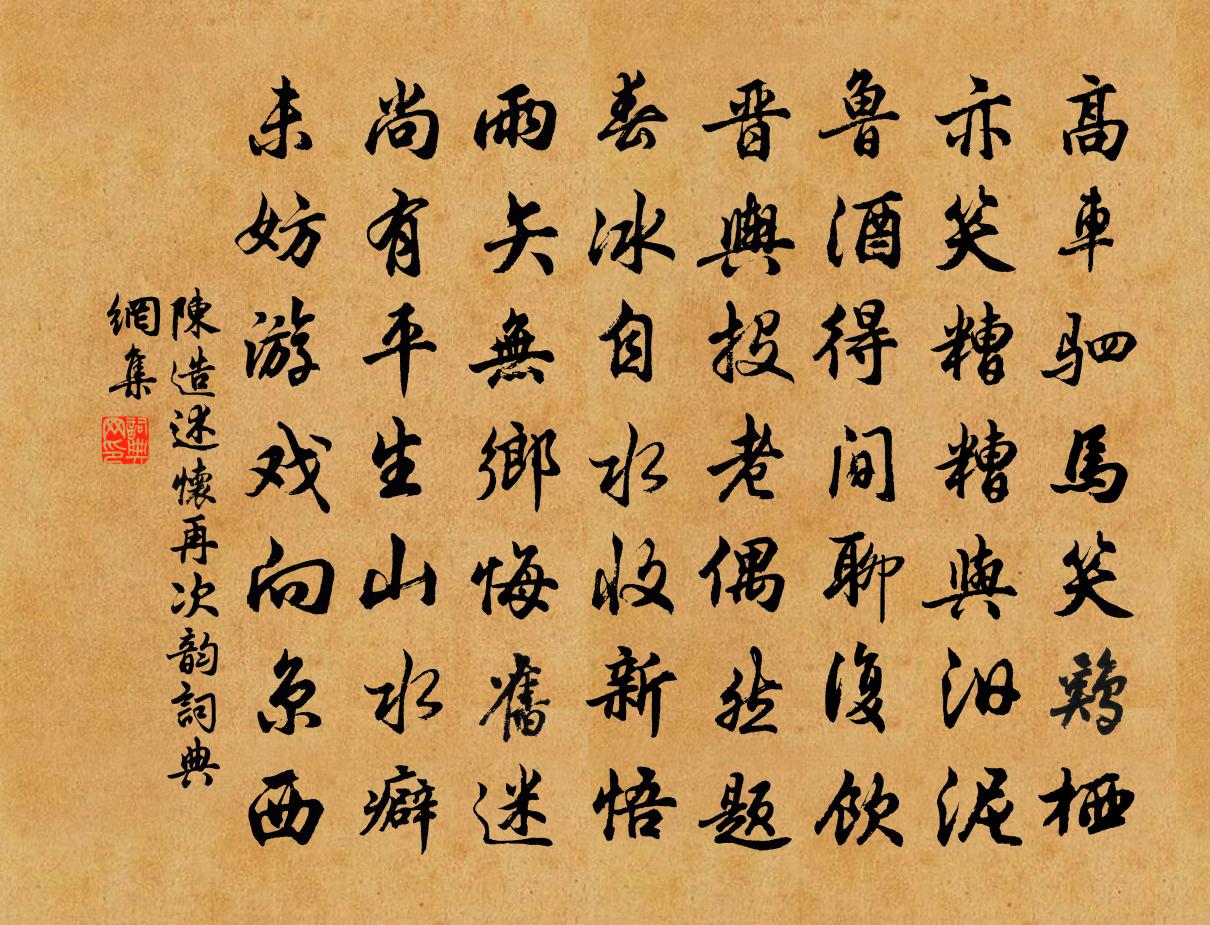 詩詞名句歷史字典書法欣賞書法字典國語詞典說文解字康熙字典古漢語字典標 題 作 者 詩 句 述懷再次韻作者:陳造 朝代:宋代述懷再次韻原文高車駟馬笑雞棲,亦笑糟糟與汨泥。魯酒得間聊復飲,晉輿投老偶然題。春冰自水收新悟,雨矢無鄉悔舊迷。尚有平生山水癖,未妨遊戲向京西。詩詞問答問:述懷再次韻的作者是誰?答:陳造問:述懷再次韻寫於哪個朝代?答:宋代陳造述懷再次韻書法欣賞述懷再次韻書法作品詩詞推薦再和前韻三首曾協〔宋代〕猛士相逢亦破顏,恰如組練壯師乾。誰令野宿三更月,綴鐵成衣徹骨寒。北高峰徐集孫〔宋代〕閒處春光淡,逢僧共采蒿。曲盤山磴險,直上塔峰高。風露侵衣冷,江湖送眼豪。近年無隱者,空負數株桃。城西即事王琮〔宋代〕清曉離家去路遙,絕憐寒景太蕭條。松深漸覺風聲緊,雲坳還知雪意銷。沙嘴客擔魚種賣,山頭人拾樹枝燒。梅華獨立杜甫〔唐代〕空外一鷙鳥,河間雙白鷗。飄颻搏擊便,容易往來游。草露亦多濕,蛛絲仍未收。天機近人事,獨立萬端憂。夜寒陸游〔宋代〕江雲作雪暗郊原,竟夜風聲萬馬奔。槁面暫朱知酒釅,曲身成直賴爐溫。幼輿正復宜岩石,倚相猶能讀典墳。米貴新灘三首李流謙〔宋代〕蜀船南來去未休,吳船西上到沙頭。人生能著幾兩屐,三峽風煙替往愁。和讀張子房傳趙希逢〔宋代〕當年罝兔視亡秦,一擊之餘果莫尋。堪笑乘輿森萬騎,也無一個眼開人。齋居有感宋庠〔宋代〕氣逐薰絃動,春隨畢雨殘。蠹桃欹廢井,新李礙游冠。處晦垂轅驥,乾時上坂丸。無人憐仲叔,平日憶豬肝。贊三十六祖頌釋印肅〔宋代〕針劄不入婆須密,正念何勞多氣力。往劫親獻如來座,襄王國裹逢知識。齊雲嶺陳岩〔宋代〕金闕瑤階路不迷,白雲翠嶺一般齊。我今要達參寥境,借作凌虛萬丈梯。藏船屋二首楊萬里〔宋代〕望見官旗御舳艫,漁船爭入沼中蘆。藏船蘆底猶有雨,屋底藏船雨也無。千佛閣樓鑰〔宋代〕平橫雲棟塞空虛,倒影仍臨碧玉壺。千佛威光歸寶所,九霄宸藻粲河圖。人天共嘆未曾有,燕雀相驚不敢踰。試問故太師和王輓詩三首韓元吉〔宋代〕甲長神京冠,王封異姓優。風雲開傑閣,水月轉芳洲。種玉階庭盛,揮金族緒周。諸郎自持橐,袞袞尚公侯。秋宿洞庭周賀〔唐代〕洞庭初葉下,旅客不勝愁。明月天涯夜,青山江上秋。一官成白首,萬里寄滄洲。只被浮名系,寧無愧海鷗。墨梅魏了翁〔宋代〕素王本自離緇涅,墨者胡為亂等差。玄里只知楊子白,皜中謾見聖人污。分付商岩譜此花。蔡州三首孔武仲〔宋代〕狂霖山群山,夜半擊堤口。水橫溢陵阿,餘波猶怒吼。東村五百戶,一塌如摧朽。硉兀聲如雷,牛馬不及走。壯者挽妹婿汪汻四首許月卿〔宋代〕奉禮徒員外,京師枉治中。二郎槐不做,四老橘成空。三鳳壁岩子,雙龍寶劍雄。萬人真莫贖,愁絕老坡翁。林少伊直院母夫人柳氏輓詞蘇籀〔宋代〕英英批鳳傑,遺懿誦高堂。淑質宗姻慕,慈憐壽凱康。委蛇瞷夫子,勤苦養尊章。駒隙八旬促,蘭陔愴隕霜。啼鵑史彌寧〔宋代〕點檢園禽誰口多,錯嫌百舌逞嘍羅。春歸怪見難留駐,攛掇元來卻是他。琵琶仙·雙槳來時姜夔〔宋代〕《吳都賦》云:“戶藏煙浦,家具畫船。”唯吳興為然。春遊之盛,西湖未能過也。己酉歲,予與蕭時父載酒南郭名句推薦故園渺何處,歸思方悠哉。韋應物《聞雁》 蜂兒不解知人苦,燕兒不解說人愁。程垓《最高樓·舊時心事》 與朋友交遊,須將他們好處留心學來,方能受益;對聖賢言語,必要我平時照樣行去,才算讀書。王永彬《圍爐夜話·第二則》 今我來思,雨雪載途。佚名《出車》 漸老多憂百事忙,天寒日短更心傷。李覯《秋晚悲懷》 西園有分,斷柳淒花,似曾相識。吳文英《瑞鶴仙·秋感》 兄弟之際,異於他人,望深則易怨,地親則易弭。顏之推《顏氏家訓·兄弟篇》 滿目山河增感慨,一時風景寄遨遊。姜塘《摘星樓九日登臨》 教亦多術矣,予不屑之教誨也者,是亦教誨之而已矣。孟子《孟子·告子章句下·第十六節》 竹葉於人既無分,菊花從此不須開。杜甫《九日五首·其一》