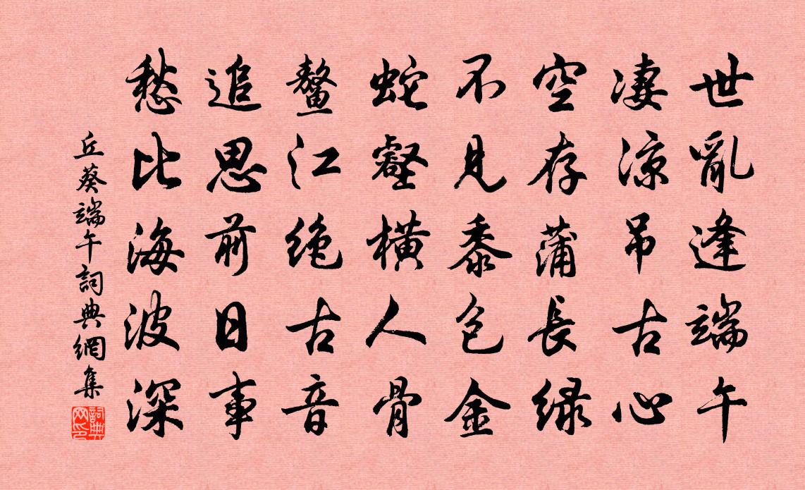詩詞名句歷史字典書法欣賞書法字典國語詞典說文解字康熙字典古漢語字典標 題 作 者 詩 句 端午作者:丘葵 朝代:宋代端午原文世亂逢端午,淒涼弔古心。空存蒲長綠,不見黍包金。蛇壑橫人骨,鰲江絕古音。追思前日事,愁比海波深。詩詞問答問:端午的作者是誰?答:丘葵問:端午寫於哪個朝代?答:宋代丘葵端午書法欣賞端午書法作品詩詞推薦送向防禦知陳州司馬光〔宋代〕千騎去翩翩,專城尚少年。韋平家好學,陰馬世稱賢。官用才能進,恩非雨露偏。想聞河潤遠,封略帝畿連。詩筆楊公遠〔宋代〕銀管空虛藏兔穎,冰懷磊磈吐天葩。有時揮掃渾無礙,盡道毫鋒自有花。翰林侍讀學士尚書右丞李公輓辭三首蘇頌〔宋代〕歲晚轘轅道,神歸嵩少原。百年封域廣,三品葬儀尊。笳吹迎風急,帷裳蔽日昏。洛人應墮淚,幾世見銘旛。水調歌頭夏元鼎〔宋代〕光諸丹經以質難。意初未釋,凡辨問數十條,乃噤不語,垂首悵然而去。後忽具信香誓狀,謂歷江、淮、閩、浙,挽費檢正三首李流謙〔宋代〕瑤墀隣近侍,華戟老方州。閉合人無論,凝香歲自秋。凶衰乘鵩集,涕淚感麟休。古佛知公恨,涪江不盡流。蛇銜草佚名〔〕昔有田夫耕地,值見傷蛇在焉。頃之,有一蛇銜草著傷口上,經日創蛇走。田夫取其餘葉治傷,皆驗。本不知草名名姝吟文天祥〔宋代〕丈夫至白首,鐘鼎重功名。未有朱門中,而無絲竹聲。與主共富貴,不見主苦辛。名姝從何來,婉孌出神京。京人殺氣不在邊孟郊〔唐代〕殺氣不在邊,凜然中國秋。道險不在山,平地有摧輈。河南又起兵,清濁俱鎖流。豈唯私客艱,擁滯官行舟。況余釋奠詩應令江總〔隋代〕於赫上嗣。毓德元良。崇賢既辟。馳道飛芳。儀刑震象。問望離方。夏戈秋鑰。日就月將。餘杭范成大〔宋代〕春晚山花各靜芳,從教紅紫送韶光。忍冬清馥薔薇釅,薰滿千村萬落香。社日過洞庭陽枋〔宋代〕社風吹雨楚江晴,舟葉輕飛過洞庭。萬里湖天天外水,君山一點望中青。見鶯三首白玉蟾〔宋代〕鮮怡寡樂負清明,簾外花如紅淚傾。又是殘春將立夏,如何到處不啼鶯。金剛隨機無盡頌大乘正宗分第三釋印肅〔宋代〕諸法元非相,示法明心量。於一微塵中,森羅及萬象。句鄒宗謨〔宋代〕遠繼杜參謀,近追蘇玉局。同蘇阮二公晚春遊西溪二首李彌遜〔宋代〕喚客班荊雜亂言,雀羅成日罷張門,自緣貧病無過轍,可是疏慵不出村。阮子何人對青白,韋郎幾日寄寒溫。北枝菩薩蠻·洛陽城裡春光好韋莊〔唐代〕洛陽城裡春光好,洛陽才子他鄉老。柳暗魏王堤,此時心轉迷。桃花春水淥,水上鴛鴦浴。凝恨對殘暉,憶君君不明堂觀禮雜詠十三首車駕回太廟王同祖〔宋代〕瑞靄祥雲傍曉開,九重法駕太宮回。一聲靜蹕千官肅,衛士傳呼御座來。六州佚名〔宋代〕齊天宇,四海洽淳風。接寶胄,垂真檢,景祚無窮。成玉牒、日觀歸功。冀野升方鼎,脽上由崇。欽檜井、雲蹕巡游杏溪蘭若姚合〔唐代〕踏得度溪灣,晨游暮不還。月明松影路,春滿杏花山。戲狖跳林末,高僧住石間。未肯離腰組,來此復何顏。寶祐二年皇子冠二十首佚名〔宋代〕豈芑詒謀,建爾元子。揆禮行年,筮寶敬事。八音克諧,嘉福至止。於以冠之,成其福屐。名句推薦鐘山抱金陵,霸氣昔騰發。李白《登梅岡望金陵贈族侄高座寺僧中孚》 琵琶弦上說相思。當時明月在,曾照彩雲歸。晏幾道《臨江仙·夢後樓台高鎖》 沉舟側畔千帆過,病樹前頭萬木春。劉禹錫《酬樂天揚州初逢席上見贈》 迸籜分苦節,輕筠抱虛心。柳宗元《巽公院五詠·苦竹橋》 蘭生幽谷,不為莫服而不芳。舟在江海,不為莫乘而不浮。君子行義,不為莫知而止休。劉安及其門客《淮南子·說山訓》 聚斂者,召寇、肥敵、亡國、危身之道也荀子《荀子·王制》 明眸皓齒誰復見,只有丹青余淚痕。蘇軾《虢國夫人夜遊圖》 日暮蒼山遠,天寒白屋貧。劉長卿《逢雪宿芙蓉山主人》 渺萬裡層雲,千山暮雪,隻影向誰去?元好問《摸魚兒·雁丘詞 / 邁陂塘》 未有知而不行者。王陽明《傳習錄·卷上·徐愛錄》