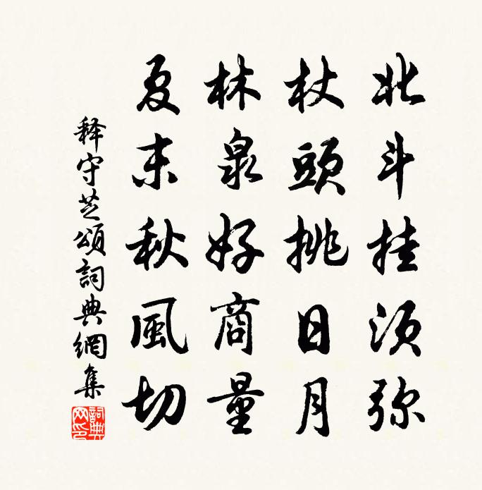 詩詞名句歷史字典書法欣賞書法字典國語詞典說文解字康熙字典古漢語字典標 題 作 者 詩 句 頌作者:釋守芝 朝代:宋代頌原文北斗掛須彌,杖頭挑日月。林泉好商量,夏末秋風切。詩詞問答問:頌的作者是誰?答:釋守芝問:頌寫於哪個朝代?答:宋代釋守芝頌書法欣賞頌書法作品詩詞推薦賀李昌時禁苑新命唐彥謙〔唐代〕振鷺翔鸞集禁闈,玉堂珠樹瑩風儀。不知新到靈和殿,張緒何如柳一枝?雨華台次胡仲芳韻劉過〔宋代〕寒意濕菸草,浮生吹浪花,繞台皆峻岭,陳跡一飛霞。子醉辭吐鳳,吾狂字落鴉。兒童應笑客,風颭角巾斜。題安國觀盧尚書〔唐代〕夕照紗窗起暗塵,青松繞殿不知春。君看白首誦經者,半是宮中歌舞人。望日示康廣宏司馬光〔宋代〕清晨三綠袍,羅拜北堂高。積善因前烈,餘光及爾曹。勿矜從仕早,當念起家勞。修立皆由己,何人可佩刀。和程丞游清水岩黃龍山韻黃龍山王炎〔宋代〕老南蛻骨幾何年,揖客支筇謾曲拳。本自心清無染著,豈因境靜息攀緣。我行不值揮犀語,公到惟堪掃榻眠。尚有瑞上人求詩戴表元〔宋代〕寶葉山中源悟師,布衲百結面如痴。十年相憶忽在眼,談笑甚似仍耽詩。講學陸游〔宋代〕遷善以美身,講學以盡性,能為可行爾,用舍固有命。天方斫斯文,魯叟虛歷聘。黎元則可哀,窮死吾何病!小疾書興張鎡〔宋代〕卷懷無與適,著冠試徐行。廊西小堂幽,叢篁雜荷聲。吹衣怯風猛,簾垂一床橫。坐余忽屢嘆,安閒吾半生,無端春遊朱翌〔宋代〕久不出門心已灰,佳晴作意苦相催。鶯花世界共遊戲,竹石弟史仍往來。心有所之無遠近,興雖已盡更徘徊。江邊古柏釋文珦〔宋代〕庭前雙柏子,曾入祖師禪。黛色參天古,貞心比石堅。材堪舟楫用,名在邶鄘篇。歲晚冰霜里,清標獨蔚然。寄懷三首李覯〔宋代〕齪齪復齪齪,淺謀同燕雀。不思明日憂,但敢今日樂。欲儒抱書卷,未去眼中瞙。誰將古人淚,更為今人落。送珙首座歸溫州釋可湘〔宋代〕江月松風何處無,戒珠心印強名模。煩君歸問老真覺,因甚闍梨氣不除。山居歲暮任璡〔宋代〕讀罷羲文先後天,蕭然一室裊寒煙。山中歲月那知得,但見梅花又一年。和斯立重賦晁說之〔宋代〕是非真未定,楚客莫咻齊。侈美珍炰鱉,粗疏鄙飯藜。評文歸藻鑒,得實應參奎。蕭酒裛塵雨,清明避日霓。露華閒居自遣樂雷發〔宋代〕雨積桑樞長昔邪,誰能載酒訪揚家。漢庭用少臣今老,魯俗皆冠我獨髽。憂國苦無蠲忿草,看書喜對決明花。衰頹六橋閒步薛師傳〔宋代〕出郭青岑近,臨流白鳥飛。笙歌春雨歇,草樹夕陽微。山色邀藜杖,湖風颭葛衣。虛亭林處士,不見鶴來歸。南鄉子(除夕又作)李處全〔宋代〕和氣作春妍。已作寒歸塞地天。歲月翩翩人老矣,華顛。膽冷更長自不眠。節物映椒盤。柏酒香浮白玉船。捧勸大再贈陳高眼二首姚勉〔宋代〕狀元出應河連讖,人說先生相法真。更有河連丞相出,不知高眼屬何人。何處春深好二首張耒〔宋代〕何處春深好,春深禪宿家。茶爐寒夙火,佛案曉添花。壞宅無妖火,通途有寶車。院深人不到,幡影逐風斜。奉送范司空赴朔方(得游字)呂溫〔唐代〕築壇登上將,膝席委前籌。虜滅南侵跡,朝分北顧憂。抗旌回廣漠,撫劍動旄頭。坐見黃雲暮,行看白草秋。山橫名句推薦認得醉翁語,山色有無中蘇軾《水調歌頭·黃州快哉亭贈張偓佺》 推手遽止之,濕衣淚滂滂韓愈《聽穎師彈琴》 嫩寒鎖夢因春冷,芳氣籠人是酒香。曹雪芹《紅樓夢·第五回》 手紅冰碗藕,藕碗冰紅手。蘇軾《菩薩蠻·回文夏閨怨》 謀先事則昌,事先謀則亡。劉向《說苑·談叢》 君子素其位而行,不願乎其外。子思《中庸·第十四章》 此生誰料,心在天山,身老滄洲。陸游《訴衷情·當年萬里覓封侯》 秋已盡,日猶長,仲宣懷遠更淒涼。李清照《鷓鴣天·寒日蕭蕭上瑣窗》 香汗薄衫涼,涼衫薄汗香。蘇軾《菩薩蠻·回文夏閨怨》 枕上潛垂淚,花間暗斷腸。魚玄機《贈鄰女 / 寄李億員外》