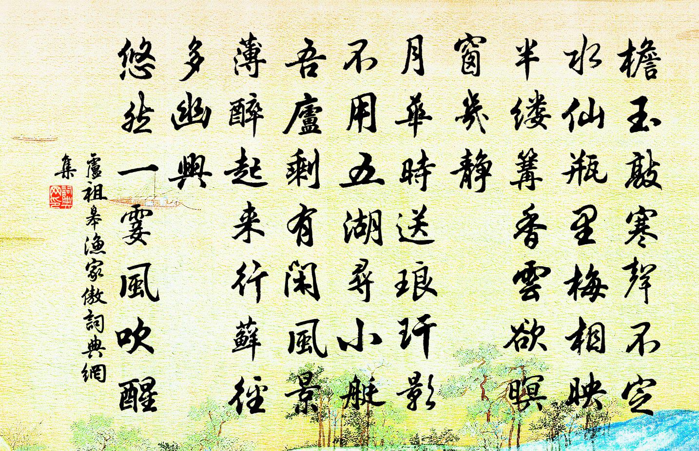 檐玉敲寒聲不定。水仙瓶里梅相映。