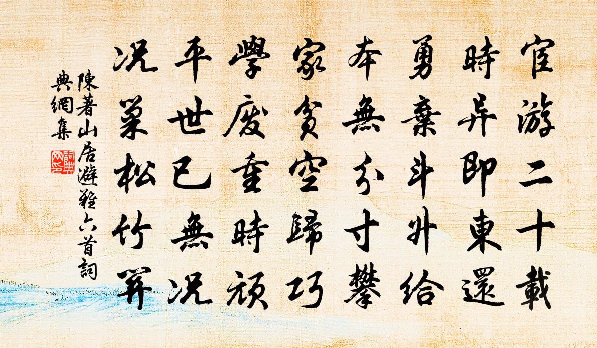 詩詞名句歷史字典書法欣賞書法字典國語詞典說文解字康熙字典古漢語字典標 題 作 者 詩 句 山居避難六首作者:陳著 朝代:宋代山居避難六首原文宦遊二十載,時異即東還。勇棄斗升給,本無分寸攀。家貧空歸巧,學廢重時頑。平世已無況,況巢松竹關。詩詞問答問:山居避難六首的作者是誰?答:陳著問:山居避難六首寫於哪個朝代?答:宋代陳著山居避難六首書法欣賞山居避難六首書法作品詩詞推薦懷舊晁說之〔宋代〕伊昔昇平事,中州見最先。洛花凝曉月,鞏樹靄寒煙。相業歸貂寵,胡塵溺漢天。幾多垂白叟,涕淚日潸然。送時漕大卿淮四檢法崔與之〔宋代〕卿月高華照楚墟,澄清雅意見登車。星分屯壘雲中戍,風引艅艎塞下儲。十二聚民行惠政,三千議獄謹刑書。最聲次韻張子野竹林寺二首王安石〔宋代〕京峴城南隱映深,兩牛鳴地得禪林。風泉隔屋撞哀玉,竹月緣階貼碎金。藻井仰窺塵漠漠,青燈對宿夜沈沈。扁舟句傅九萬〔宋代〕笑他思著專鱸者,欲感秋風始去官。聞軍過方回〔宋代〕老膽堪多恐,焦脾更積憂。軍聲時洶洶,債事日悠悠。西路危單騎,東灘乏便舟。情懷無一可,風雨五更頭。晚春客愁五絕方回〔宋代〕江外蘆芽老,城中柳絮飛。春風猶幾日,誰與濯征衣。老夫白居易〔唐代〕七八年來游洛都,三分遊伴二分無。風前月下花園裡,處處唯殘個老夫。世事勞心非富貴,人生實事是歡娛。誰能題醴泉驛二首李曾伯〔宋代〕路遙須到日,官滿有歸時。一點終身痛,中途孺子悲。老難堪此境,咎必有其基。扶憊隨緣去,空餘淚雨垂。次韻傅茂元二絕劉子翬〔宋代〕濠樂亭前花已披,馬軍送酒故來遲。只愁風雨卷春去,紅染芳效一徑泥。寄徐秀才斯遠並呈莊賢良器之陸游〔宋代〕徐子作別十年余,無人可寄一紙書;閒門美睡畏剝啄,自怪一念常關渠。西風蕭蕭吹槁葉,秋光正滿蝸牛廬,讀書興慶池侍宴應制韋元旦〔唐代〕滄池漭沆帝城邊,殊勝昆明鑿漢年。夾岸旌旗疏輦道,中流簫鼓振樓船。雲峰四起迎宸幄,水樹千重入御筵。宴光試墨張耒〔宋代〕金案冰窗淨絕塵,硯寒龍尾縠生紋。澄江清淺汀洲靜,忽有蒼螭下吐雲。朝中措(昌甫作長短句呈朱卿、余倅,因和韻)韓淲〔宋代〕水南何事興偏濃。花草小園中。山氣靜分餘靄,泉聲幽轉流淙。午橋坐上英豪客,今昔為誰容。不是倚樓人在,登胡文定公輓詩三首劉子翬〔宋代〕有意扶名教,躬行語默中。楷模陶士器,藥石補天聰。衡岳鄰新卜,伊川道已東。傳經知有子,接武大明宮。菩薩蠻(望行人)向滈〔宋代〕小樓不放珠簾卷。菱花羞照啼妝面。金鴨水沈煙。待君來共添。鵲聲生暗喜。翠袖輪纖指。細細數歸程。臉桃春色河中孫學士以詩見寄因次本韻繼和三章用為酬魏野〔宋代〕入居蘭省歸群望,出守薄關自聖知。清禁乍辭仙漏遠,白樓閒上彩牋隨。伯夷廟下停金勒,大舜門中亞繡旗。遙想偈頌一百一十七首釋紹曇〔宋代〕三月休徵,修文偃琥。治格太平,生靈鼓舞。無端塞馬嘶,又欲揚塵簸土。密運機籌,肅行師旅。塞北安南一戰收偶成孫應時〔宋代〕小齋隨分有琴書,此外蕭然一物無。地僻最饒間意味,日長還得睡工夫。四時風月吾心友,千里雲山古畫圖。天賜江神子/江城子謝薖〔宋代〕破瓜年紀柳腰身。懶精神。帶羞瞋。手把江梅,冰雪斗清新。不向鴉兒飛處著。留乞與,眼中人。水精船里酒粼粼讀騷葉茵〔宋代〕舉世昏昏醉未醒,獨醒寂螢楚江濱。後人愛把離騷讀,不道離蚤誤後人。名句推薦晚風庭院落梅初。淡雲來往月疏疏。李清照《浣溪沙·髻子傷春慵更梳》 列德而尚賢。雖在農與工肆之人,有能則舉之。墨子《墨子·08章 尚賢(上)》 微雨靄芳原,春鳩鳴何處。韋應物《東郊》 天下之百姓皆上同於天子,而不上同於天,則災猶未去也。墨子《墨子·11章 尚同(上)》 知音少,弦斷有誰聽。岳飛《小重山·昨夜寒蛩不住鳴》 知往日所往之非,則學日進矣王永彬《圍爐夜話·第五六則》 雁行緣石徑,魚貫度飛梁。鮑照《代出自薊北門行》 柳色黃金嫩,梨花白雪香。李白《宮中行樂詞八首》 魚書經歲絕,燭淚流殘月。徐燦《菩薩蠻·秋閨》 上有流思人,懷舊望歸客。謝朓《送江水曹還遠館》