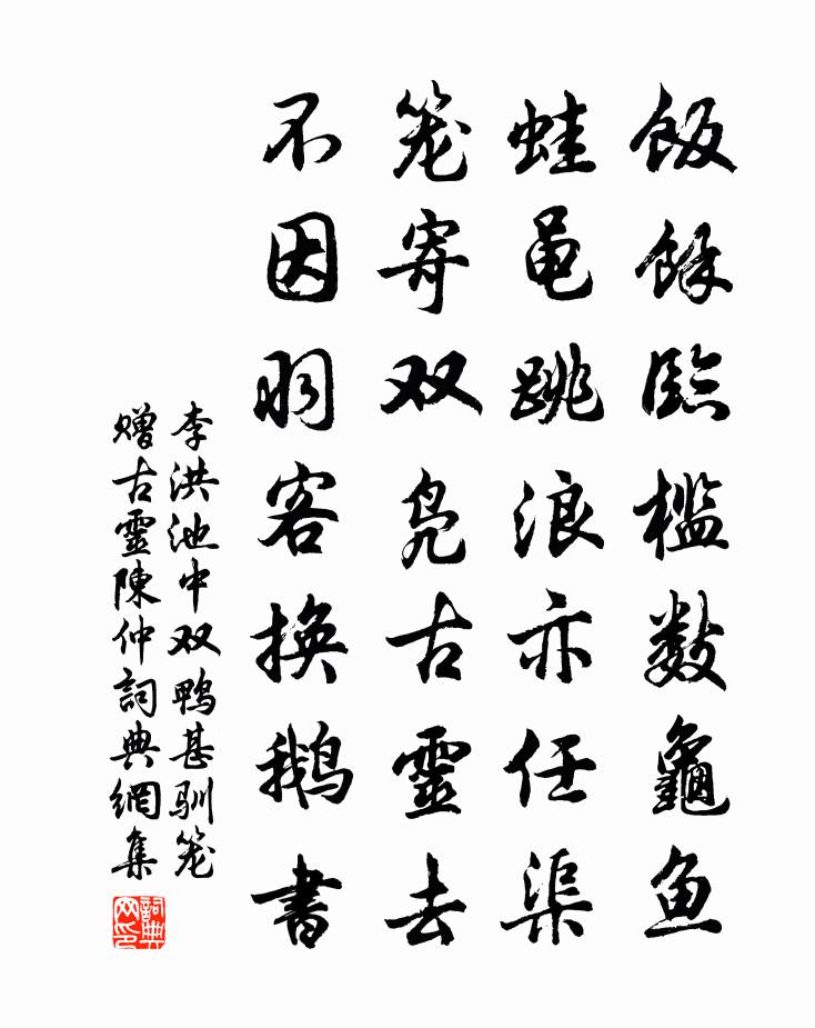 詩詞名句歷史字典書法欣賞書法字典國語詞典說文解字康熙字典古漢語字典標 題 作 者 詩 句 池中雙鴨甚馴籠贈古靈陳仲作者:李洪 朝代:宋代池中雙鴨甚馴籠贈古靈陳仲原文飯餘臨檻數龜魚,蛙黽跳浪亦任渠。籠寄雙鳧古靈去,不因羽客換鵝書。詩詞問答問:池中雙鴨甚馴籠贈古靈陳仲的作者是誰?答:李洪問:池中雙鴨甚馴籠贈古靈陳仲寫於哪個朝代?答:宋代李洪池中雙鴨甚馴籠贈古靈陳仲書法欣賞池中雙鴨甚馴籠贈古靈陳仲書法作品詩詞推薦再至凌風亭韓元吉〔宋代〕目盡西風落照邊,危亭負景故依然。重來身忝二千石,老去心驚十九年。種柳已高丹檻外,栽花猶占綠窗前。不堪赤松三詠小桃源姜特立〔宋代〕四山古木老煙雲,流水桃花幾換春。舉世但夸羊化石,那知不有武陵人。送胡茶馬赴京西漕度正〔宋代〕夾岸黃花弄夕曛,歸艎擊汰不堪聞。愁容政想峨眉月,喜氣遙占峴首雲。酒罷樓頭觀妙算,公餘壠畔訪清汾。明年上平西劉處玄〔元代〕想人生,老與少,似春秋。恰幼年、卻變白頭。莫爭空假,無常氣斷臥荒丘。大都三萬六千日,多病多愁。崇真道送裕師骨蘇泂〔宋代〕輕幡裊裊思悠悠,夢破依然到鼎州。送客名還家裡去,青山白骨自風流。高宗祀明堂前朝享太廟二十一首真宗〔宋代〕於皇我後,祗廿專精。齋肅有容,祖考是承。造次匪懈,孝思純誠。神聽有格,福祿來寧。代弟茝詠梅畫十景飛花陳著〔宋代〕獨占初春早卸芳,肯隨桃李炫儂妝。如今不到壽陽額,自做孤村流水香。田家留客行范成大〔宋代〕行人莫笑田家小,門戶雖低堪灑掃。大兒系驢桑樹邊,小兒拂席軟勝氈。木臼新春雪花白,急炊香飯來看客:好人臨江仙佚名〔宋代〕隴首雲收天色暮,寒光射月初開。崑荊山玉莫疑猜。琳琅疑此地,仙子不紅腮。麗質霜裾真性雅,餘香暗送人來。九日在邇索居無聊取滿城風雨近重陽為韻賦七戴表元〔宋代〕粲粲 * 花,照我原上土。拒霜亦多熊,終日相媚嫵。春花豈不美,嗟此風露苦。正命何所尤,生遲後甘雨。野人家趙蘭皋〔宋代〕總為門為馬足塵,敗簑懸壁亦天真。看渠只是芸田者,處世強如識字人。隔水架茅知避俗,得魚沽酒卻分鄰。市朝小溪釋曇穎〔宋代〕小溪莊上掩柴扉,雞犬無聲月色微。一雙小舟臨斷岸,趁潮來此趁潮歸。既為誼夫賦墳廬詩乃蒙和韻再成十首為謝兼簡郭印〔宋代〕法法本來空,無垢亦無淨。直向異類行,何曾失正性。送酒與邵堯夫因戲之司馬光〔宋代〕林下雖無憂可銷,許由聞說掛空瓢。請君呼取孟光飲,共插花枝煮藥苗。大晟府擬撰釋奠十四首佚名〔宋代〕[大呂為角]生而知之,有教無私。成均之祀,威德孔時。維茲初丁,潔我盛粢。永管其道,萬世之師。孫權勸學司馬光〔宋代〕初,權謂呂蒙曰:“卿今當塗掌事,不可不學!”蒙辭以軍中多務。權曰:“孤豈欲卿治經為博士邪?但當涉獵,句釋曉瑩〔宋代〕即看青女夜飛霜。冒雪馬上作宋祁〔宋代〕大雪浹天畿,晨驂望禁扉。二儀連皓氣,萬物共清輝。樓迥標銀闕,台寒壓粉圍。瑞花真有意,偏著入朝衣。燕歸梁(為人生日作)趙鼎〔宋代〕綽約彤霞降紫霄。是仙子風標。湘裙明佩響瓊瑤。散馥郁、暗香飄。小春十月寒猶淺,妝粉弄梅梢。秦樓風月待吹風流子袁去華〔宋代〕吳山新搖落,湖光淨、鷗鷺點漣漪。望一簇畫樓,記沽酒處,幾多鳴櫓,爭趁潮歸。瑞煙外,繚牆迷遠近,飛觀聳名句推薦專一則勝,離散則敗。尉繚《尉繚子·兵令上》 君行逾十年,孤妾常獨棲。曹植《明月上高樓》 日間不做虧心事,半夜敲門不吃驚。馮夢龍《喻世明言·卷三十八》 讀書不下苦功,妄想顯榮,豈有此理?王永彬《圍爐夜話·第一一四則》 拱把之桐梓,人苟欲生之,皆知所以養之者。孟子《孟子·告子章句上·第十三節》 竹葉於人既無分,菊花從此不須開。杜甫《九日五首·其一》 他鄉生白髮,舊國見青山。司空曙《賊平後送人北歸》 故鄉今夜思千里,霜鬢明朝又一年。高適《除夜作》 沖天香陣透長安,滿城盡帶黃金甲。黃巢《不第後賦菊》 疏籬下、試覓重陽,醉擘青露菊。吳文英《一寸金·秋感》