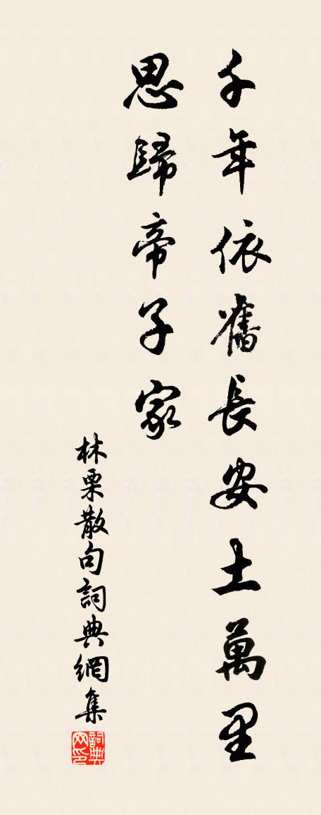 詩詞名句歷史字典書法欣賞書法字典國語詞典說文解字康熙字典古漢語字典標 題 作 者 詩 句 句作者:林栗 朝代:宋代句原文千年依舊長安土,萬里思歸帝子家。詩詞問答問:句的作者是誰?答:林栗問:句寫於哪個朝代?答:宋代林栗句書法欣賞句書法作品詩詞推薦題畫竹仇遠〔宋代〕直節老欲枯,初篁瘦而勁。祖孫知幾傳,不改君子性。春問湖莊曹彥約〔宋代〕問訊湖莊事,經年意若何。為渠魂入夢,老我鬢添皤。雪霽春應好,山明水漸多。遣兒徵僕役,除道莫蹉跎。四月奉教作李嶠〔唐代〕暄籥三春謝,炎鍾九夏初。潤浮梅雨夕,涼散麥風餘。葉暗庭幃滿,花殘院錦疏。勝情多賞托,尊酒狎林箊。奉和聖制送張說上集賢學士賜宴(賦得今字)陸堅〔唐代〕聖主崇文教,層霄降德音。尊賢澤既厚,式宴寵逾深。復有夔龍相,良哉簡帝心。得人惟邁昔,多士諒推今。書殿跋青陽尉古賦劉克莊〔宋代〕青陽少府筆如椽,袖出騷人體物篇。往昔上林推蜀客,後來赤壁有坡仙。自言避地僑江表,誰誦凌雲向上前。螢雪予居苕溪上與白石洞天為鄰潘德久字余日白石姜夔〔宋代〕南山仙人何所食,夜夜山中煮白石。世人喚作白石仙,一生費齒不費錢。仙人食罷腹便便,七十二峰生肺肝。真租秋日焚香讀書戲作陸游〔宋代〕世事無端自糾紛,放翁隱几對爐熏。好官何恨輸玄保,奇字猶須屬子云。婆律一銖能敵國,水沉盈握有兼斤。閉門山居即事釋紹嵩〔宋代〕碧樹高岩底,柴門引徑斜。採茶尋遠澗,護藥插新笆。澄水含斜漢,寒空散晚霞。寂寥無與晤,聊欲玩煙花。和范茂才陳宓〔宋代〕小小平欄容易攀,欄邊楊柳又成班。是非榮辱不到地,南北東西都見山。但解心寬長有趣,不因境勝始能閒。從今【黃鐘】山隊子 酒色財氣四首湯舜民〔元代〕曲生堪愛,暈桃花上臉腮。百篇一斗恣開懷,誰承望捉月騎鯨再不來。酒,則被你斷送了文章李太白。 憐香惜春閨雜詠自迷華岳〔宋代〕蒼生千里望雲霓,何事英雄去路迷。見說九重新有夢,濟川人在此岩西。何處難忘酒二首王安石〔宋代〕何處難忘酒,君臣會合時。深堂拱堯舜,密席坐皋夔。和氣襲萬物,歡聲連四夷。此時無一盞,真負鹿鳴詩。秋夜偶成 其二王冕〔元代〕露華泥泥濕桐絲,漸覺新涼襲敝幃。肯羨輕生歸馬革,獨憐清苦臥牛衣。種桃未必全忘世,採藥終然會息機。欲問高宗建炎初祀昊天上帝佚名〔宋代〕[太簇為徽一奏]禮崇官祀,備物芳誠。昭格穹昊,明德惟聲。風馬雲車,肸鄉居歆。申錫地疆,麥我思成。晚望李長吉〔宋代〕無數寒鴉來過鍾,物華心跡偶然同。不知海北江南路,更有愁人立晚風。酒香亭向阮賢〔清代〕漢武好神仙,為覓長生酒。方朔妙詼諧,早潤滑稽口。至今湖上亭,酒香渺何有?郡治燕堂庭中梅花楊萬里〔宋代〕林中梅花如隱士,只多野氣也無塵,庭中梅花如賁人,也無野氣也無塵。不疏不密隨宜了,旋落旋開無不好。珠簾寓興鮑溶〔唐代〕念來若望神,追往如話夢。夢神不無跡,誰使煩心用。魯聖虛泣麟,楚狂浪歌鳳。那言阮家子,更作窮途慟。自題白居易〔唐代〕老宜官冷靜,貧賴俸優饒。熱月無堆案,寒天不趁朝。傍看應寂寞,自覺甚逍遙。徒對盈樽酒,兼無愁可銷。小松章孝標〔唐代〕爪葉鱗條龍不盤,梳風幕翠一庭寒。莫言只是人長短,須作浮雲向上看。名句推薦夜來風雨聲,花落知多少。孟浩然《春曉》 開花必早落,桃李不如松。李白《箜篌謠》 大凡物不得其平則鳴韓愈《送孟東野序》 冰合井泉月入閨,金缸青凝照悲啼。李白《夜坐吟》 秋夜訪秋士,先聞水上音。袁枚《夜過借園見主人坐月下吹笛》 來歲花前。又是今年憶去年。呂本中《減字木蘭花·去年今夜》 事不至大,無以驚人。案不及眾,功之匪顯。來俊臣《羅織經·瓜蔓卷第十二》 歸鴻聲斷殘雲碧。背窗雪落爐煙直。李清照《菩薩蠻·歸鴻聲斷殘雲碧》 唯不求利者為無害,唯不求福者為無禍。劉安及其門客《淮南子·詮言訓》 一年滴盡蓮花漏。碧井酴酥沈凍酒。毛滂《玉樓春·己卯歲元日》