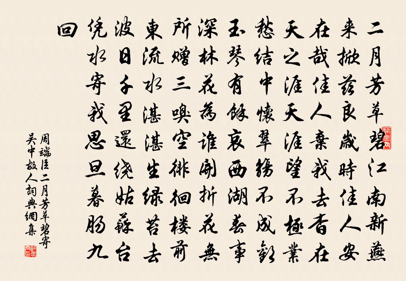 詩詞名句歷史字典書法欣賞書法字典國語詞典說文解字康熙字典古漢語字典標 題 作 者 詩 句 二月芳草碧寄吳中故人作者:周端臣 朝代:宋代二月芳草碧寄吳中故人原文二月芳草碧,江南新燕來。掀茲良歲時,佳人安在哉。佳人棄我去,杳在天之涯。天涯望不極,業愁結中懷。翠觴不成歡,玉琴有餘哀。西湖春事深,林花為誰開。折花無所贈,三嗅空徘徊。樓前東流水,湛湛生綠苔。去波日千里,還繞姑蘇台。憑水寄我思,旦暮腸九回。詩詞問答問:二月芳草碧寄吳中故人的作者是誰?答:周端臣問:二月芳草碧寄吳中故人寫於哪個朝代?答:宋代周端臣二月芳草碧寄吳中故人書法欣賞二月芳草碧寄吳中故人書法作品詩詞推薦寄江南諸相知四錫〔宋代〕詩成奏入冕旒前,小諫官資驟轉遷。帶職喜為仙館吏,立班常近御爐煙。清華拜命知深忝,謇諤非才愧昔賢。多謝和子由除夜元日省宿致齋三首蘇軾〔宋代〕江淮流落豈關天,禁省相望亦偶然。等是新年未相見,此身應坐不歸田。白髮蒼顏五十三,家人強遣試春衫。朝回送王景彝學士使虜梅堯臣〔宋代〕持節共知過碣石,銜蘆相背有飛鴻。地寒狐腋著不暖,沙闊馬蹄行未窮。隴上牛羊沖密霰,帳前徒御立酸風。歸時擬古意於濆〔唐代〕白玉若無玷,花顏須及時。國色久在室,良媒亦生疑。鴉鬟未成髻,鸞鏡徒相知。翻慚效顰者,卻笑從人遲。白霅和石山衛宗武〔宋代〕扁舟汎清霅,游屐遍戀。幽討離家久,新吟借客看。槐陰風轉夏,梅子雨留寒。不謂浮雲跡,煩君上筆端。忘憂堂文同〔宋代〕磴道循城近,垣牆占地幽。軒窗誰指畫,硯席我優遊。不許簿書到,恐為圖史羞。此心元自適,何處欲忘憂。修史亭二首司空圖〔唐代〕少年已慣擲年光,時節催驅獨不忙。今日無疑亦無病,前程無事擾醫王。籬落輕寒整頓新,雪晴步屣會諸鄰。自從題三軒譙令憲〔宋代〕回頭四十九年非,又向盆城把一麾。蘇子北窗明月放,謫仙紫極感秋時。來游偶契二賢跡,欲賦難酬五字計。前輩龜雖壽曹操〔兩漢〕神龜雖壽,猶有竟時。騰蛇乘霧,終為土灰。(騰 一作:螣)老驥伏櫪,志在千里。烈士暮年,壯心不已。盈縮靜樂軒喜成張諤〔唐代〕山縣為官不見山,一朝列嶂忽當關。抽身牒拆時舒眼,領客杖藜聊解顏。常樂本來由我靜,倦飛每爾愧知還。莫嫌水調歌頭佚名〔宋代〕不能煩惱得,掉臂便歸休。前度風檣,這回潦轍幾悠悠。幸得有雲一谷,更自有書萬卷,著甚麽來由。月采混魚目讀華陀傳陸游〔宋代〕六籍唯殘聖道醇,中更秦火不成塵。華陀老黠徒驚俗,吾豈無書可活人!金書大士心經為圓相大悲咒身衣贊釋智遇〔宋代〕以波羅密多圓其相,以喝囉怛那蒙其身。咒呾從此發,還著於本人。不解圓通二十五,吉祥靈草暗藏春。龜堂雜興陸游〔宋代〕二三鄰曲偶相尋,小醉悠然臥竹陰。醒後自看還自笑,溪雲猶未是無心。終南山二十韻李洞〔唐代〕關內平田窄,東西截杳冥。雨侵諸縣黑,雲破九門青。暫看猶無暇,長棲信有靈。古苔秋漬斗,積霧夜昏螢。怒恐古寺曾由基〔宋代〕殘經閒竹几,淪茗供花瓷。法窟寂無語,禪容晚帶飢。蟲縈道子畫,蛩響外孫碑。風定聞疏磬,玄關卻自知。登牛者蛾眉亭二首楊萬里〔宋代〕謪仙攜妓戲人寰,也被千花妒玉顏。半點閒情千古恨,一波秋水兩春山。錦袍宮燭雲霄上,白薴烏紗江海間。欲寄衡州早春偶游黃溪口號呂溫〔唐代〕偶尋黃溪日欲沒,早梅未盡山櫻發。無事江城閉此身,不得坐待花間月。五月十日曉寒甚聞布穀鳴有感陸游〔宋代〕弊褲久當脫,短褐竟未送。老怯五更寒,重衾擁殘夢。群虱方得意,飽血藏衣縫。竹簟何時陳?紈扇殆無用。長夏二十七日自陽平至斜谷宿於南山中蟠龍寺蘇軾〔宋代〕橫槎晚渡碧澗口,騎馬夜入南山谷。(音浴。)谷中暗水響瀧瀧,嶺上疏星明煜煜。寺藏岩底千萬仞,路轉山腰三名句推薦宰相必起於州部,猛將必發於卒伍。韓非及後人《韓非子·顯學》 眾口鑠金,積毀銷骨。司馬遷《史記·張儀列傳》 長於春夢幾多時,散似秋雲無覓處。晏殊《木蘭花·燕鴻過後鶯歸去》 梅須遜雪三分白,雪卻輸梅一段香。盧鉞《雪梅·其一》 世人結交須黃金,黃金不多交不深。張謂《題長安壁主人》 亞夫營畔柳濛濛,隋主堤邊四路通。汪遵《楊柳》 鵲飛山月曙,蟬噪野風秋。上官儀《入朝洛堤步月》 百戰沙場碎鐵衣,城南已合數重圍。李白《從軍行》 羌笛何須怨楊柳,春風不度玉門關。王之渙《涼州詞二首·其一》 又聞子規啼夜月,愁空山李白《蜀道難》