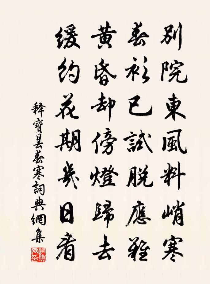 詩詞名句歷史字典書法欣賞書法字典國語詞典說文解字康熙字典古漢語字典標 題 作 者 詩 句 春寒作者:釋寶曇 朝代:宋代春寒原文別院東風料峭寒,春衫已試脫應難。黃昏卻傍燈歸去,緩約花期幾日看。詩詞問答問:春寒的作者是誰?答:釋寶曇問:春寒寫於哪個朝代?答:宋代釋寶曇春寒書法欣賞春寒書法作品詩詞推薦金陵府舍重建金山亭二首蘇頌〔宋代〕故時台榭對池心,空有名傳擬穴金。鬋理茅茨修竹茂,經營軒檻綠楊深。橋橫斷岸虹流彩,花滿芳園鳥囀音。盛府地遠釋文珦〔宋代〕地遠隔凡塵,因而此隱淪。閒知雲意度,清愛水精神。蔬食聊充腹, * 足蔽身。休嫌吾懶拙,懶拙廻吾真。宮詞宋白〔宋代〕魚龍百戲鬧嘈嘈,戲罷珠樓日色高。移入芳林排小宴,赤瑛盤裡進櫻桃。酬李廓精舍南台望月見寄姚合〔唐代〕看月空門裡,詩家境有餘。露寒僧梵出,林靜鳥巢疏。遠色當秋半,清光勝夜初。獨無台上思,寂寞守吾廬。友龍侄來別留詩次韻毛滂〔宋代〕樵青煎茶青竹里,汝欲過門鵲先喜。我家千里凌風駒,豈比虺聵鞭不起。我亦西遊倦始歸,久闊相望老白眉。歸家治徑錢時〔宋代〕草迷三徑綠芊芊,可是山翁懶得便。直自酴醾花去後,不曾行到大門前。過登源英濟廟祈雨虞儔〔宋代〕古廟出靈響,吾儕非過求。山田雖欠雨,陂水尚通溝。出郭漸無日,祈年望有秋。豚蹄真狹甚,明信或堪羞。即事王銍〔宋代〕住依溪口破殘村,身伴漁樵不見尋。坐對秋陰晚蕭瑟,風吹敗葉入廓深。夏樹文同〔宋代〕夏樹始繁密,條縷方且柔。左右覆吾廬,合如張碧油。新蟬噪晴午,餘響藏深幽。軒窗轉炎日,清影為我留。蚊蚋遣興·浮世忙忙蟻高駢〔唐代〕浮世忙忙蟻子群,莫嗔頭上雪紛紛。沈憂萬種與千種,行樂十分無一分。越外險巇防俗事,就中拘檢信人文。醉鄉奉和樂道韓維〔宋代〕昔聞有客薦揚雄,清世文章又見公。奏賦獨高天下士,辭榮遠繼古人風。懷賢不啻三秋久,置酒須期十日中。幸有鴛鴦湖棹歌 之十三朱彝尊〔清代〕金衣楚雀白?雞,不住裴公島上啼。白馬未嘶雲屋外,紅船先渡板橋西。抵袁陽施德〔宋代〕聲聲啼鳴叫鉤輈,山自巑岏水自流。西望長沙三百里,行人道是古袁州。曲磵縈紆樹密蒙,放船正值楝花風。王程羈臥山中盧照鄰〔唐代〕臥壑迷時代,行歌任死生。紅顏意氣盡,白璧故交輕。澗戶無人跡,山窗聽鳥聲。春色緣岩上,寒光入溜平。雪盡同樊潤州游郡東山皇甫冉〔唐代〕北固多陳跡,東山復盛游。鐃聲發大道,草色引行騶。此地何時有,長江自古流。頻隨公府步,南客寄徐州。余甘子程敦厚〔宋代〕愁苦人意未相諳,率以初嘗廢后甘。王氏有詩旌橄欖,可憐遺詠在巴南。滿庭芳黃庭堅〔宋代〕初綰雲鬟,才勝羅綺,便嫌柳陌花街。占春才子,容易托行媒。其奈風情債負,煙花部、不免差排。劉郎恨,桃花向竹吟黃山隱〔唐代〕積塵為太山,掬水成東海。富貴有時乖,希夷無日改。絳節出崆峒,霓衣發光彩。古者有七賢,六個今何在。夜話贈華師陸游〔宋代〕少喜洛陽俠,今成衡岳僧。深培地爐火,明照佛龕燈。衰鬢晨霜白,禪心古澗澄。猶能遍參在,為我買行縢。和晏太尉三月初五日宋祁〔宋代〕東南郊日上團紅,浩蕩天區望始窮。獨愛暖雲如擘絮,紛紛無事映晴空。名句推薦法之不行,自於貴戚。司馬遷《史記·秦本紀》 巫峽啼猿數行淚,衡陽歸雁幾封書。高適《送李少府貶峽中王少府貶長沙》 菊暗荷枯一夜霜。新苞綠葉照林光。蘇軾《浣溪沙·詠橘》 有其言,無其行,君子恥之戴聖《禮記·雜記下》 世情看冷暖,人面逐高低。施耐庵《水滸傳·第三十七回》 子不能治子之身,惡能治國政。墨子《墨子·48章 公孟》 為有雲屏無限嬌,鳳城寒盡怕春宵。李商隱《為有》 誰信多情道,相思漸覺詩狂少。吳綺《惜分飛·寒夜》 黃蘆掩映清江下,斜纜著釣魚艖。關漢卿《大德歌·冬景》 饒人不是痴漢,痴漢不會饒人。佚名《增廣賢文·上集》