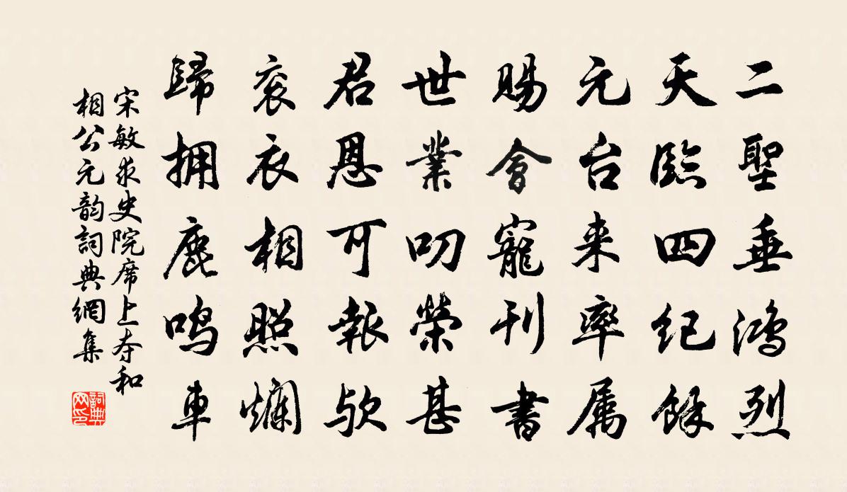 詩詞名句歷史字典書法欣賞書法字典國語詞典說文解字康熙字典古漢語字典標 題 作 者 詩 句 史院席上奪和相公元韻作者:宋敏求 朝代:宋代史院席上奪和相公元韻原文二聖垂鴻烈,天臨四紀余。元台來率屬,賜會寵刊書。世業叨榮甚,君恩可報歟。袞衣相照爛,歸擁鹿鳴車。詩詞問答問:史院席上奪和相公元韻的作者是誰?答:宋敏求問:史院席上奪和相公元韻寫於哪個朝代?答:宋代宋敏求史院席上奪和相公元韻書法欣賞史院席上奪和相公元韻書法作品詩詞推薦雨夜感舊陸游〔宋代〕雨來猛打窗,燈暗猶照壁。老人耿不寐,撫事悲夙昔。風生桔柏渡,馬病金牛驛。裊枝猿下飲,登樹熊自擲。危巢失調名詹克愛〔宋代〕後會不知誰健,茱萸莫厭重看。為王漕壽釋寶曇〔宋代〕十日西風便老成,挽回金氣愈高明。朱轓玉節非吾事,雪竹霜松不世情。未可買山歸卜築,卻須持橐慰平生。如公客有卜居不遂薄游汧隴因題許渾〔唐代〕海燕西飛白日斜,天門遙望五侯家。樓台深鎖無人到,落盡春風第一花。撲蝴蝶(蜀中作)丘崈〔宋代〕鳴鳩乳燕。春在梨花院。重門鎮掩。沈沈簾不捲。紗窗紅日三竿,睡鴨餘香一線。佳眠悄無人喚。謾消遣。行雲無再次韻贈俞德瑞陳造〔宋代〕珠軒繡轂輾香塵,回首西湖羅綺春。便合行歌訪花柳,可辭買笑費金銀。清吟自屬當千客,勸醉那無第一人。肯學贈畫工懷玉曾豐〔宋代〕撙齋一味好喔詩,試看傳神筆是非。雖得掀髯搜句狀,更參會意點頭機。呈唐德輿兼寄呈可久三首趙蕃〔宋代〕敬作沙隨問,歸來安穩不。一官成棄卻,微恙想今瘳。詩篋猶堪倒,錢囊不用謀。更思從二老,何日具扁舟。依韻和正仲賦楊兵部吳興五題明月樓梅堯臣〔宋代〕霅霅前溪白,蒼蒼後嶺巍。人疑槎上客,星合蚌中暉。影轉闌乾迥,杯行漏鼓稀。只知夸粉黛,不向桂邊歸。同存子侄造成蓮蕩舟中作陽枋〔宋代〕此行為愛盪中蓮,萬里清風駕客船。兩壁青山看不盡,舉頭天際有飛鳶。寄題喻叔奇國傅郎中園亭二十六詠水樂楊萬里〔宋代〕渠水來從林外泓,水知湖近各爭鳴。何人月下攜枯木,寫取穿雲落澗聲。道中即事方岳〔宋代〕春泥滑滑欲濺裾,肯為梅花顧草廬。喚作詩人看得未,雨笞笠雪一肩輿。頌古九首釋梵思〔宋代〕一喝非唯三日聾,龍威虎勢也潛蹤。從前汗馬無人識,只要重論蓋代功。寒食只旬日間風雨不已曾幾〔宋代〕年光胡不少留連,熟食清明又眼前。改望深宮傳蠟燭,可堪小市禁炊煙。滿城風雨無杯酒,故國松楸欠紙錢。老病書鄉僧庵何籌齋〔宋代〕靜答光陰轉法華,生涯更藉菊為家。山園隔樹翻秋雨,石逕縈池浴晚霞。學鳳尾翹無限草,似雞冠樣不勝花。蕭槮本齋趙蕃〔宋代〕王之母之弟,徐子父之友。徐學自贛翁,王則因病叟。游目鄉閭中,孰若二士秀。為汝名本齋,乞言置汝右。如病宇文紹恭所藏其父德聞手書其祖家訓一卷晁公溯〔宋代〕蜀士相與語,故家誰得如。千年令威宅,一紙伏波書。張益州畫像記蘇洵〔宋代〕至和元年秋,蜀人傳言有寇至,邊軍夜呼,野無居人,謠言流聞,京師震驚。方命擇帥,天子曰:“毋養亂,毋助盧灘雜興五首錢時〔宋代〕生身不作第三流,肯作坳堂一芥舟。時止時行皆正位,孰雲吾道付滄洲。水調歌頭楊炎正〔宋代〕一笛起城角,吹破小梅愁。東風猶未,誰遣春信到吾州。聞得東來千騎,鼓舞兒童竹馬,和氣與空浮。桃李未陰處名句推薦芰荷迭映蔚,蒲稗相因依。謝靈運《石壁精舍還湖中作》 說大人,則藐之,勿視其巍巍然。孟子《孟子·盡心章句下·第三十四節》 常將有日思無日,莫把無時當有時。佚名《增廣賢文·上集》 小時不識月,呼作白玉盤。李白《古朗月行》 往者不可諫,來者猶可追。孔子弟子《論語·微子篇》 擁紅妝,翻翠蓋,花影暗南浦。高觀國《祝英台近·荷花》 獨坐幽篁里,彈琴復長嘯。王維《竹里館》 未知鹿死誰手房玄齡《晉書·載記·第五章》 回樂烽前沙似雪,受降城外月如霜。李益《夜上受降城聞笛》 誤落塵網中,一去三十年。陶淵明《歸園田居·其一》
