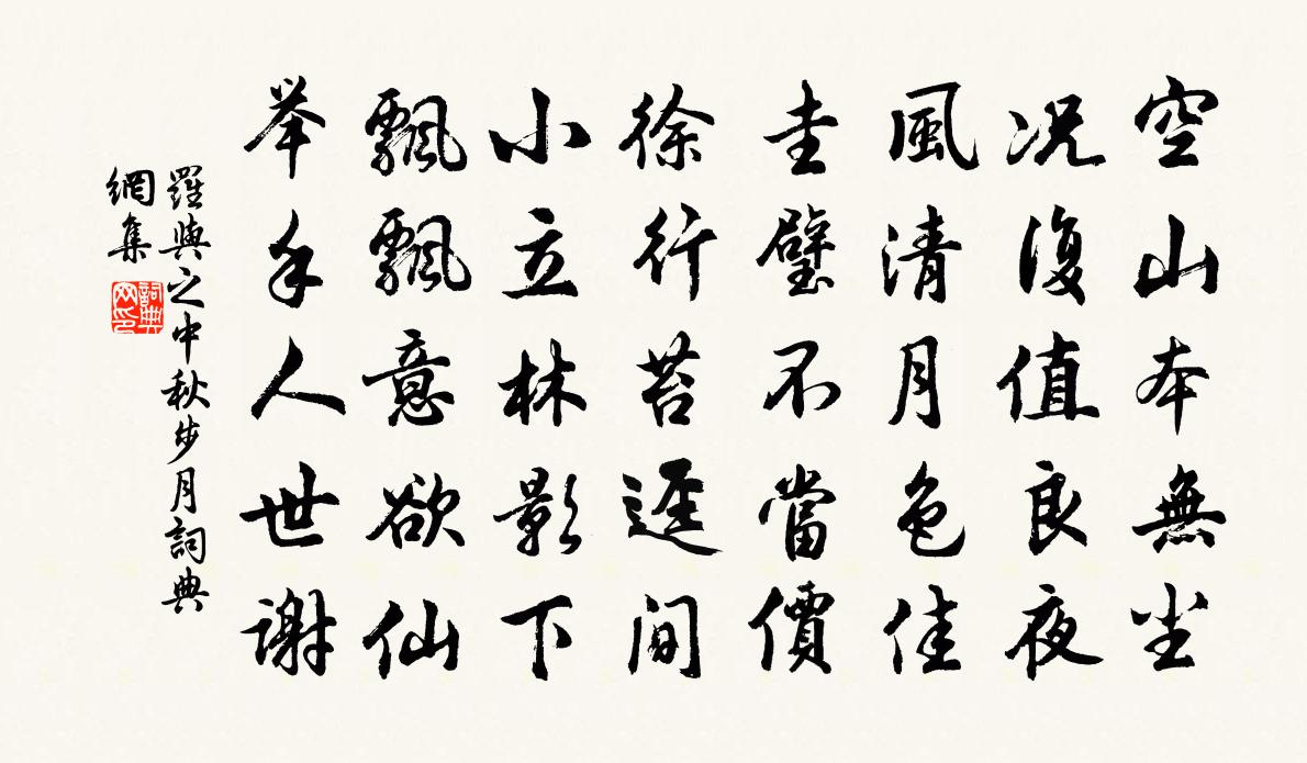 詩詞名句歷史字典書法欣賞書法字典國語詞典說文解字康熙字典古漢語字典標 題 作 者 詩 句 中秋步月作者:羅與之 朝代:宋代中秋步月原文空山本無塵,況復值良夜。風清月色佳,圭璧不當價。徐行苔逕間,小立林影下。飄飄意欲仙,舉手人世謝。詩詞問答問:中秋步月的作者是誰?答:羅與之問:中秋步月寫於哪個朝代?答:宋代羅與之中秋步月書法欣賞中秋步月書法作品詩詞推薦襄城道中懷曼叔韓維〔宋代〕吾交作尉地,南望一淹留。歲月催人老,山川記子游。向城非昔勇,遇物更春愁。獨喜高陽近,嵐光逼馬頭。端午帖子皇帝合六首歐陽修〔宋代〕彩索盤中結,楊梅棕里紅。宮闈九重樂,風俗萬方同。江神子/江城子張炎〔宋代〕奇峰相對接球庭。乍微晴,又微陰。舍北江東,如蓋自亭亭。翻笑天台連雁盪,隔一片、不逢君。此中幽趣許誰鄰朝中措陳三聘〔宋代〕求田何處是生涯。雙鬢已先華。隨分夏涼冬暖,賞心秋月春花。吾年如此,愁來問酒,困後呼茶。結社竹林詩老,逢謝偃高適〔唐代〕紅顏愴為別,白髮始相逢。唯餘昔時淚,無復舊時容。鷓鴣天(次韻史少弼致政賦李參政壁西園海棠)魏了翁〔宋代〕日日春風滿範圍。海棠又發去年枝。月籠火樹更深後,露滴燕支曉起時。看不足,醉為期。宵征寧問角巾敧。一春長壽仙促拍(太母生辰)曹勛〔宋代〕舜德日輝光,正初冬盛期。東朝喜、誕生時。向彤闈、清淨均化有,自然和氣。長生久視,金殿熙熙。宴瑤池。褘南歌子溫庭筠〔唐代〕轉眄如波眼,娉婷似柳腰。花里暗相招。憶君腸欲斷,恨春宵。答葉司理趙師秀〔宋代〕寂寞坐高齋,兵來與訊偕。喜看君字畫,癯似我形骸。頗欲徵陳作,遙知動遠懷。夢魂思一遇,風雨暗長淮。驀山溪洪皓〔宋代〕鰲山鳳闕,多少飛瓊侶。顒俟翠華臨,慶新春、金波盈五。蓮燈開遍,侍從盡登樓,簪花赴。傳柑處。咫尺聆天語臨江仙(陳守美任)陳韡〔宋代〕三十四年台榭,八千餘里江津。去時楊柳正輕顰。重來桃李少,不似舊時春。風掃半空煙雨,玉虹翠浪如新。可憐於忽操王令〔宋代〕於忽乎,不可以為,其又奚為。謂雞斯飛,誰得而羈。謂豕斯突,何取於縛。是皆以食而得之,吾方飢而噫。雞兮次章房陵韻四首陳造〔宋代〕章子五車讀,詩外未一施。清篇忽見屬,了不計吾誰。投暗率如此,世路宜暮遲。獨無牙曠手,並坐弦君詩。蝶戀花·記得珠簾初卷處康有為〔清代〕記得珠簾初卷處,人倚闌乾,被酒剛微醉。翠葉飄零秋自語,曉風吹墮橫塘路。 詞客看花心意苦,墜粉零香,果千秋歲(重到桃花塢)陳三聘〔宋代〕當年漁隱,路轉桃溪匯。流水下,青山外。客行花徑曲,月上松門對。撐艇子,雪中蓑笠親曾載。老去誰傾蓋。腰和張時可姜特立〔宋代〕一榻蕭然文字林,閉門十日臥春陰。園林寒重鶯氣寂,風雨時長草色深。坐念治聲違社酒,遙知搜句攪春心。莫愁山中懷故人許琮〔宋代〕歡多清景略,會數別離輕。病骨無人問,空山正月明。落花懷舊韻,鳴鳥感新晴。再看思君處,流泉石上平。松江趙嘏〔唐代〕松江菰葉正芳繁,張翰逢秋憶故園。千里帆遮館娃寺,一川風暖采香村。潮聲漸遇仙人宅,鶴市曾迷子夜魂。我有檯曆劉克莊〔宋代〕檯曆傳聞兩建寅,放燈時候始鞭春。不愁窮臘梅開晚,豫喜年來麥食新。理鬊楊萬里〔宋代〕發脫心知不再生,新年底急頓星星。城邊老柳也欺我,春里滿頭依舊青。名句推薦早知潮有信,嫁與弄潮兒。李益《江南曲》 獨行潭底影,數息樹邊身。賈島《送無可上人》 贈人以言,重於金石珠玉;觀人以言,美於黼黻、文章;聽人以言,樂於鐘鼓琴瑟。荀子《荀子·非相》 上善若水,水善利萬物而不爭。老子《老子·道經·第八章》 愛人利人者,天必福之;惡人賊人者,天必禍之。墨子《墨子·04章 法儀》 春風桃李花開日,秋雨梧桐葉落時。白居易《長恨歌》 無作牛山悲,惻愴淚沾臆。李白《君子有所思行》 已知泉路近,欲別故鄉難。夏完淳《別雲間》 一民之軌,莫如法。厲官威名,退淫殆,止詐偽,莫如刑。刑重,則不敢以貴易賤;法審,則上尊而不侵。韓非及後人《韓非子·有度》 暮雨相呼失,寒塘欲下遲。崔塗《孤雁二首·其二》