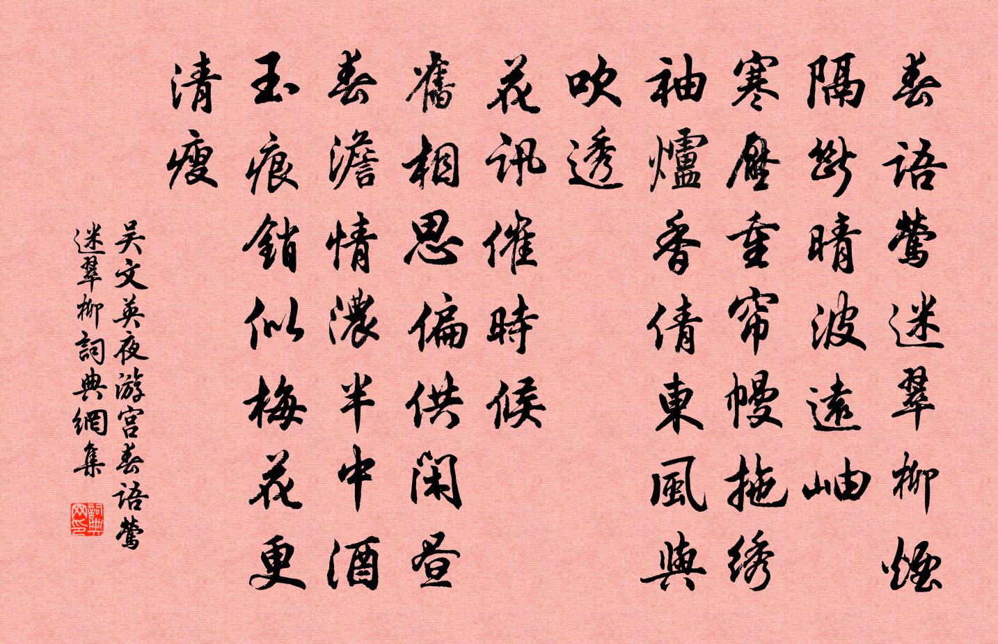 吳文英夜遊宮·春語鶯迷翠柳書法欣賞