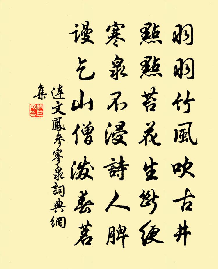 詩詞名句歷史字典書法欣賞書法字典國語詞典說文解字康熙字典古漢語字典標 題 作 者 詩 句 參寥泉作者:連文鳳 朝代:宋代參寥泉原文羽羽竹風吹古井,點點苔花生斷綆。寒泉不浸詩人脾,謾乞山僧潑春茗。詩詞問答問:參寥泉的作者是誰?答:連文鳳問:參寥泉寫於哪個朝代?答:宋代連文鳳參寥泉書法欣賞參寥泉書法作品詩詞推薦縣齋秋懷程公許〔宋代〕幼學自魯鄒,心卑管商。誰令簡書縛,課我星火忙。我自友古人,渠肯兄孔方。飛檄浩盈幾,泛窺陷中腸。閣束且郢州城西馬定遠〔宋代〕秋江白水浪花粗,墟落人歸鳥自呼。新月高城三百雉,角聲吹徹小單于。臨江仙(送宜春令)趙長卿〔宋代〕萬里西風吹去旆,滿城無奈離情。甘棠也似戴公深。曉來風露里,葉葉做秋聲。十載兩番遺愛在,須知愁滿宜春。宮詞張祜〔唐代〕自倚能歌曲,先皇掌上憐。新曲何處唱?腸斷李延年。杭州訪吉祥璘上人追感蘇才翁同賞牡丹蔡襄〔宋代〕曾乘春飲繞花畦,花底余香入燕泥。剪處佳人傳燭下,歸時明月到雲西。重來草樹驚秋色,零落交朋感舊題。若使秋浦老漁釋文珦〔宋代〕秋浦老漁人不識,清溪數灣船一隻。釣竿垂垂釣絲直,眼光過似豀光碧。得魚歸來不自吃,開籠分與白鷳食。卻來觀化釋斯植〔宋代〕閒觀造化余,靜極悅自性。胡蝶忽飛來,吾心已無競。元方用韻寄若拙弟邀同賦元方將托若拙覓顏淵陳與義〔宋代〕夢中與世極周流,錯認三刀是得州。擬學耕田給公上,要為同社燕春秋。囊間已辦青芒屨。桑間想聞黃栗留。儻有山居雜詩九十首曹勛〔宋代〕三伏暑可畏,貧富方共之。雨忽兼飄風,涼與清氣隨。一餉滌炎暍,萬里失蒸炊。大哉天地德,好生常所施。慶元三年奉上孝宗徽號三首真宗〔宋代〕巍巍孝廟,聖德天通。同符藝祖,克紹高宗。有和有冊,載推載崇。鏤玉繩金,登奉祏宮。南澗尋韓仲止不遇翁卷〔宋代〕樹樹有佳陰,山蟬不住吟。掬來南澗水,清若主人心。屋上雲飛冷,籬根蘚積深。留詩在岩壁,明日更相尋。四月五日,車駕朝獻,景靈宮省前迎鴐起居口楊萬里〔宋代〕鳳輦雲行露未銷,鸞旗風動柳相高。晴雷出地傅清蹕,霽日吹紅染御袍。喜見天顏浮玉藻,歸從原廟薦櫻桃。小臣周仲章都官示卷因以贈之梅堯臣〔宋代〕赭白西北來,本是天馬種。朝秦暮至吳,嵩華如歷冢。伯樂曾未逢,垂頭牧青隴。今朝顧我鳴,振鬣耳聳聳。聲生楊花詞三首李廌〔宋代〕特地飛來有意,等閒卻去無情。若比邇來時態,秪應時態猶輕。浣溪沙晁端禮〔宋代〕紫蔓凝陰綠四垂。暗香撩亂撲羅衣。醉眠惟有落花知。玉筍纖纖初嗅罷,烏雲娜娜亂簪時。此般風韻雅相宜。晚步舍東陸游〔宋代〕籬槿花開柿葉丹,土溝東去過牛欄。草煙漠漠天將暮,布褐蕭蕭客正寒。答余洪範二首黃庭堅〔宋代〕道在東西祖,詩如大小山。一家同雪月,萬事廢機關。天上麒麟閣,山中虎豹閒。何時得丘壑,明鏡失朱顏。紬史蘇籀〔宋代〕延陵皋壤決歸歟,習氣過憂觚不觚。何怪倚門嗟抗髒,近來合樂寵侏儒。過關自欲聞雞唱,居肆何須較馬摸。乖合謹和老人初冬寓筆十絕洪咨夔〔宋代〕避風台上深情寵,偃月堂中盡意謀。爭奈天公無面目,滿林黃葉一番秋。寄題時氏小飛來三首姜特立〔宋代〕須彌納芥不為夸,曾向壺中貯九華。靈隱寺前天竺後,好峰都落在君家。名句推薦花漸凋疏不耐風,畫簾垂地晚重工,墮階縈蘚舞愁紅孫光憲《浣溪沙·花漸凋疏不耐風》 過江千尺浪,入竹萬竿斜。李嶠《風》 阿婆還似初笄女,頭未梳成不許看。袁枚《遣興》 微微風簇浪,散作滿河星。查慎行《舟夜書所見》 美女渭橋東,春還事蠶作。李白《陌上桑》 玉人初上木蘭時。懶妝斜立澹春姿。吳文英《浣溪沙·題李中齋舟中梅屏》 輔弼之臣瓦解,而邪諂之人並進班固《漢書·傳·東方朔傳》 法令至行,公平無私劉向《戰國策·秦一·衛鞅亡魏入秦》 怯於邑斗,而勇於寇戰。商鞅《商君書·戰法》 柳葉隨歌皺,梨花與淚傾。黃庭堅《南歌子·槐綠低窗暗》