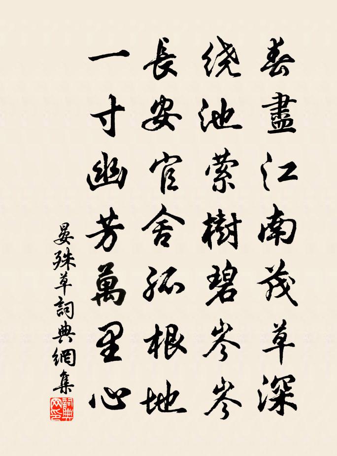 詩詞名句歷史字典書法欣賞書法字典國語詞典說文解字康熙字典古漢語字典標 題 作 者 詩 句 草作者:晏殊 朝代:宋代草原文春盡江南茂草深,繞池縈樹碧岑岑。長安官舍孤根地,一寸幽芳萬里心。詩詞問答問:草的作者是誰?答:晏殊問:草寫於哪個朝代?答:宋代問:晏殊的名句有哪些?答:晏殊名句大全晏殊草書法欣賞草書法作品詩詞推薦醜奴兒/採桑子周邦彥〔宋代〕南枝度臘開全少,疏影當軒。一種宜寒。自共清蟾別有緣。江南風味依然在,玉貌韶顏。今夜憑闌。不似釵頭子細次韻潁小弟秋日蘇泂〔宋代〕游鱗羈羽憑浮沉,老大悽然感歲陰。風底波紋生別浦,雨餘山影出疏林。殘年不足償多病,萬事寧須付有心。滿眼欸乃歌二章戲王穉川黃庭堅〔宋代〕花上盈盈人不歸,棗下纂纂實已垂。臘雪在時聽馬嘶,長安城中花片飛。花月二首蘇泂〔宋代〕月邊那復有炎光,望月疏花意已涼。吳質不須仍倚樹,老來無柰許多香。子由將赴南都,與余會宿於逍遙堂,作兩絕句蘇軾〔宋代〕別期漸近不堪聞,風雨蕭蕭已斷魂。猶勝相逢不相識,形容變盡語音存。清廟佚名〔先秦〕於穆清廟,肅雍顯相。濟濟多士,秉文之德。對越在天,駿奔走在廟。不顯不承,無射於人斯。客中懷西湖二首董嗣杲〔宋代〕一日無詩氣還濁,百年有限身更孱。西湖多少好風月,何時買屋安蕭閒。批周宗書後李建勛〔唐代〕偶罷阿衡來典郡,固無閒物可應官。憑君為報群胥道,莫作循州刺史看。和陶飲酒二十首蘇軾〔宋代〕晁子天麒麟,結交未及仕。高才固難及,雅志或類已。各懷伯業能,共有丘明恥。歌呼時就君,指我醉鄉里。吳公將發洛中枉令狐相公手札兼辱二篇寵行以長句白居易〔唐代〕尺素忽驚來梓澤,雙金不惜送蓬山。八行落泊飛雲雨,五字鎗鏦動佩環。玉韻乍聽堪醒酒,銀鉤細讀當披顏。收藏題資州東岩鄭鋼〔宋代〕逕轉得幽谷,雲岩屹相向。谽谺偃重檐,彎環依疊嶂。緬想融結初,鐫鑱自天匠。了無斧鑿跡,但覺盤根壯。深可思遠人(一作寄遠客)張籍〔唐代〕野橋春水清,橋上送君行。去去人應老,年年草自生。出門看遠道,無信向邊城。楊柳別離處,秋蟬今復鳴。十詩謝寥計使陳造〔宋代〕欲留苦滯淫,欲去復仿佛。臥漳仍登龍,兩心正交相。粲粲金玉人,納納錦繡腸。安得雲隨龍,意和即公傍。玉樓春(冬日上江西漕魯大卿)石孝友〔宋代〕漢皇受禪新堯統。沼躍潛魚儀舞鳳。五雲色備觀台書,萬世功成賢相用。江湖襟帶蠻荊控。摩撫民勞輸土貢。願傾同諸公有懷絕句皇甫冉〔唐代〕舊國迷江樹,他鄉近海門。移家南渡久,童稚解方言。村巷詩吳可〔宋代〕村巷深深桑柘煙,園林寂靜落花天。柴門有客忙相揖,搖手低聲蠶大眠。游彭城公白蓮莊歐陽修〔宋代〕謝墅多幽賞,華軒曾共尋。人閒聊載酒,台迥獨披襟。水落陂光淡,城當山氣陰。惟餘桃李樹,日覺翠蹊深。送圭士庵歸蜀釋法薰〔宋代〕昔日隨流今逆流,昔時今日有來田。李將軍本穿楊手,誤向南山射石頭。秋懷十首末章稍自振起亦古義也陸游〔宋代〕改朔甫再宿,月見西南隅,纖纖一銀勾,掛空疑有無。我行青楓岸,遠水浮雙鳧。新寒入短衣,感此風霜初。頗欲鷓鴣天(紹興壬戌中秋前數夕與楊謹仲,魯子明,劉曼容及駒兄弟待月新橋)向子諲〔宋代〕駕月新成碧玉梁。青天萬里瀉銀潢。廣寒宮裡無雙樹,無熱池邊不盡香。承露液,釀秋光。直須一舉累千觴。不知名句推薦鬧里掙錢,靜處安身。佚名《增廣賢文·上集》 斷崖蒼蘚對立久,凍雨為洗前朝悲。黃庭堅《書摩崖碑後》 山中也有千年樹,世上難逢百歲人。佚名《增廣賢文·上集》 知者不惑,仁者不憂,勇者不懼。孔子弟子《論語·子罕篇》 君子恥其言而過其行。孔子弟子《論語·憲問篇》 澗戶寂無人,紛紛開且落。王維《辛夷塢》 規小節者不能成榮名,惡小恥者不能立大功。司馬遷《史記·七十列傳·魯仲連鄒陽列傳》 年年郡縣送征人,將與遼東作丘坂。王建《遼東行》 君為女蘿草,妾作菟絲花。李白《古意》 治大者不治細,成大功者不成小列子及其弟子《列子·楊朱》
