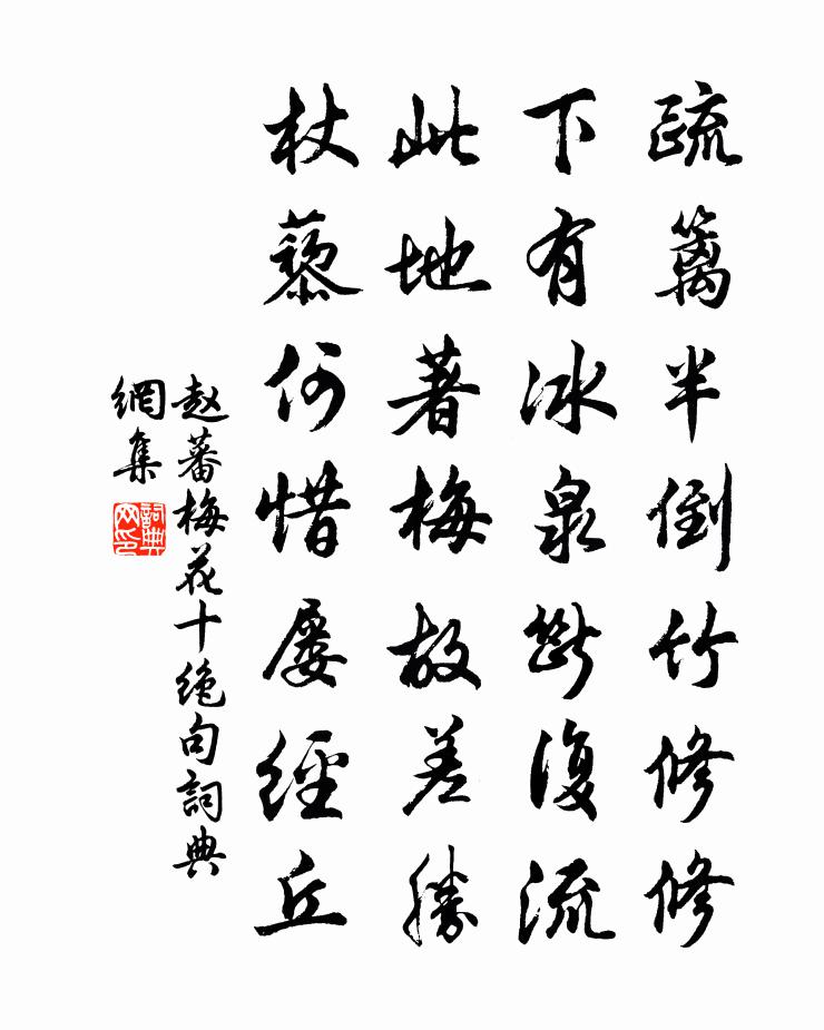 詩詞名句歷史字典書法欣賞書法字典國語詞典說文解字康熙字典古漢語字典標 題 作 者 詩 句 梅花十絕句作者:趙蕃 朝代:宋代梅花十絕句原文疏籬半倒竹修修,下有冰泉斷複流。此地著梅故差勝,杖藜何惜屢經丘。詩詞問答問:梅花十絕句的作者是誰?答:趙蕃問:梅花十絕句寫於哪個朝代?答:宋代趙蕃梅花十絕句書法欣賞梅花十絕句書法作品詩詞推薦江神子·博山道中書王辛棄疾〔宋代〕一川松竹任橫斜,有人家,被雲遮。雪後疏梅,時見兩三花。比著桃源溪上路,風景好,不爭多。旗亭有酒徑須賒謁嚴子陵祠林景熙〔宋代〕客星謫下桐江湄,傲睨煙雨何年歸。空遺清氣滿林壑,草木不受春風肥。我來維舟奠椒醑,薜荔祠荒泣山鬼。亂峰挽艮岩梅府卿方回〔宋代〕改卜龜圖後,閒居二十年。商須才聘幣,剡曲竟回船。□□無虛日,粢盛有薄田。何須似裴李,綠野及平泉。自嘆陸游〔宋代〕晨興袖手觀空寂,飯罷寬腰習按摩。堪嘆一生閒日月,為身時少為人多。陪郡侯出郊勸農六絕洪咨夔〔宋代〕茅屋人家蓐食煙,相呼趁雨好翻田。去年下麥泥如鐵,一寸春膏直幾錢。昭化洪咨夔〔宋代〕梅子收霖雨,榆花斷瘴煙。濃雲明白鳥,深草暗烏犍。歲月灘聲裹,家山客枕邊。老來圭角盡,。戒得是韋弦。題方家峪劉寺山門顧逢〔宋代〕灑墨起雲端,神威聳眾觀。直疑鮮甲動,相對骨毛寒。瞠目真如活,騰空似不難。傳聞風雨夜,雷電繞闌乾。送張詹事致政歸嵩山舊隱(青字)權德輿〔唐代〕解龜辭漢庭,卻憶少微星。直指常持憲,平反更恤刑。閒思紫芝侶,歸臥白雲扃。明詔優筋力,安車適性靈。群公浣溪沙(雙筍)張炎〔宋代〕空色莊嚴玉版師。老斑遮護錦繃兒。只愁一夜被風吹。潤處似沾篔穀雨,斫來如帶渭川泥。從空托出鎮帷犀。偈十六首釋行瑛〔宋代〕去年逢表春,朱顏映桃李。今年逢青春,白髮壓雙耳。人生七十年,疾若東流水。不了本來心,生死何由離。送凝神張先生還茅山曹勛〔宋代〕我家天台玉霄峰,旁臨雲海空復空。水光際天接山影,山間樓閣相溟濛。仙人騎鯨度空碧,步虛聲下飄天風。纓冠寒女吟李白〔唐代〕昔君布衣時,與妾同辛苦。一拜五官郎,便索邯鄲女。妾欲辭君去,君心便相許。妾讀蘼蕪書,悲歌淚如雨。憶昔感遇岑參〔唐代〕北山有芳杜,靡靡花正發。未及得采之,秋風忽吹殺。君不見拂雲百丈青松柯,縱使秋風無奈何。四時常作青黛色次韻林子長陳造〔宋代〕詩壇舊同歃,攀附不無因。攬轡今膚使,回轅記老身。雲泥知已隔,譚笑尚容親。不記棋前酒,當時定幾巡。送呂武仲司戶范純之司法赴南宮試袁說友〔宋代〕欣然願作送行詩,盛事江邦獨見之。釃酒且同明月醉,驅車未怕朔風吹。相逢暫入紅蓮幕,穩去高攀丹桂枝。莫負孟子博學反約陳普〔宋代〕事理紛紛未易窮。其間脈終要通融。能於博處知其約,漸次收功一貫中。愍嘆孫嵩〔宋代〕救地扶天力不支,猶為落落怪男兒。泥中龍逝江神駭,波際鯨枯海若悲。恨入煙雲連嘆縣,魂隨霜雪薄燕垂。可憐江樓宴別白居易〔唐代〕樓中別曲催離酌,燈下紅裙間綠袍。縹緲楚風羅綺薄,錚鏦越調管弦高。寒流帶月澄如鏡,夕吹和霜利似刀。樽酒郊居陸游〔宋代〕索米官倉例坐愚,東方未可戲侏儒。行藏要付他年看,富貴真堪一笑無。等死不過賒歲月,長閒勿更問妻孥。狂豪酬陳叔裕四首王炎〔宋代〕扣關倒屣略從容,驚見文章豹管中。水闊山遙俱倦客,花明柳暗又東風。錦囊收拾語皆好,黃卷沉潛經可窮。會看名句推薦人世幾回傷往事,山形依舊枕寒流。劉禹錫《西塞山懷古》 槲葉落山路,枳花明驛牆。溫庭筠《商山早行》 有生之樂,無死之心劉向《戰國策·齊六·田單將攻狄》 早知潮有信,嫁與弄潮兒。李益《江南曲》 吳興才人怨春風,桃花滿陌千里紅。李賀《送沈亞之歌·並序》 相識滿天下,知心能幾人?佚名《增廣賢文·上集》 長條別有風流處,密映錢塘蘇小家。寇準《柳·曉帶輕煙間杏花》 是故置本不安者,無務豐末。墨子《墨子·02章 修身》 年年越溪女,相憶采芙蓉。杜荀鶴《 * 怨》 刑過不辟大臣,賞善不遺匹夫。韓非及後人《韓非子·有度》
