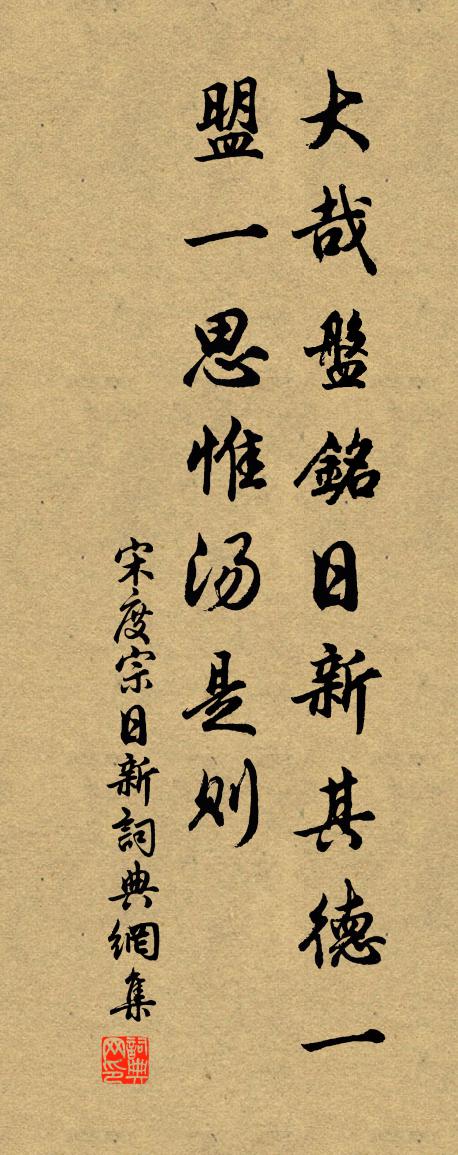 詩詞名句歷史字典書法欣賞書法字典國語詞典說文解字康熙字典古漢語字典標 題 作 者 詩 句 日新作者:宋度宗 朝代:宋代日新原文大哉盤銘,日新其德。一盟一思,惟湯是則。詩詞問答問:日新的作者是誰?答:宋度宗問:日新寫於哪個朝代?答:宋代宋度宗日新書法欣賞日新書法作品詩詞推薦和王鞏見寄三首蘇轍〔宋代〕江秋北風多,歸帆未應駛。天寒雁南向,家書空滿紙。契闊幸安平,婚嫁須纓珥。交遊何為者,空復念君至。吳歈一首送丘宗卿自平江移會稽贈壽老范成大〔宋代〕農圃規模昔共論,雲奎卜築又逢君。眉庵壽老長隨喜,好個拋梁伏願文。欲雨陸游〔宋代〕荷鍤決新渠,芟茅補舊廬。共知秋必雨,有備即安居。西江月辛棄疾〔宋代〕八萬四千偈後,更誰妙語披襟。紉蘭結佩有同心。喚取詩翁來飲。鏤玉栽冰著句,高山流水知音。胸中不受一塵侵挽蔡西山先生劉礪〔宋代〕念昔摳衣日,寧知輩行殊。師才驚宇宙,鄙學困蟲魚。紀曆深皇極,談兵淺律書。傷心濂水別,有惑更誰祛。和王安之少卿雨後邵雍〔宋代〕焦勞九夏余,一雨物皆蘇。蛙鼓不足聽,蚊雷未易驅。非唯仰歲給,抑亦了官輸。林下閒遊客,何妨儘自愉。聞石湖海棠盛開亟攜家過之三絶范成大〔宋代〕家人扶上錦城頭,蜂蝶圑中爛熳遊。報答春光須小醉,紅雲洞裹按伊州。詠史陳耆卿〔宋代〕沛公家業本無能,休責渠曹不治生。看取帝王他日事,方知俗眼未分明。王少清歸蜀不成復下鄂渚詩項安世〔宋代〕行止不可計,別離當奈何。賦歸重作客,欲泝竟沿波。湖上橘方熟,洲邊魚正多。西山舊相識,不厭屢經過。陸寶山朱長文〔唐代〕陸家山色隱平蕪,文彩如虹照碧虛。痛爾臨刑思鶴淚,輸他謝病食江鱸。擬古八首陳普〔宋代〕東方有樂國,開闢先柏皇。鸞鳳為雞鶩,麒麟為犬羊。晨霞作朝食,太和為酒漿。土無干戈禍,人各千年長。下視玲瓏玉(半閒堂賦春雪)姚雲文〔宋代〕開歲春遲,早贏得、一白瀟瀟。風窗淅簌,夢驚金帳春嬌。是處貂裘透暖,任尊前回舞,紅倦柔腰。今朝。虧陶家同工部李侍郎適訪司馬子微沈佺期〔唐代〕紫微降天仙,丹地投雲藻。上言華頂事,中問長生道。華頂居最高,大壑朝陽早。長生術何妙,童顏後天老。清晨提覺太尉張求頌釋如淨〔宋代〕平生道德邁前賢,著漢衣冠拜漢天。自是名高閒不得,阿難依舊世尊前。偈頌二十五首釋如淨〔宋代〕進院得住便住,退院要行便行。個條烏拄杖,莫怪太生獰。頌古三十二首釋明辯〔宋代〕盤走珠兮珠走盤,當機脫略好生觀。世人知貴不知價,信手拈來也不難。代人上師垣生辰三首仲並〔宋代〕化工作意辦春來,斗柄明朝後日回。東風先到江南岸,江山濯濯無塵埃。靈光蔥蔥隨處有,夜半兩兩明三台。天遣筍脯一平馳寄因和雲歲詩為一笑春筍未盛尚續張栻〔宋代〕權門極珍羞,未辦食龍肉。我家湘楚山,籜龍飫奴僕。淮南戶戶有黃虀,公今徑歸亦不痴。更包筍脯贈行李,定應水調歌頭 以上穀神篇卷下林轅〔元代〕樹老堪移接,人老豈容枯。玄元食母,還丹入口是良圖。乞得西家紅釀,又覓東鄰白醞,裝做一葫蘆。就我鐺中煮木蘭花(甘泉岩)曾原郕〔宋代〕斷崖拋雪瀑,又潛溜、入山跟。聽暗壁潺湲,山中紫霧,山下紅雲。當年七僧甚處,但空餘、老剎靠嶙峋。底事神名句推薦紗窗日落漸黃昏,金屋無人見淚痕。劉方平《春怨》 霰雪紛其無垠兮,雲霏霏而承宇。屈原《九章》 日落波平。愁損辭鄉去國人。朱敦儒《採桑子·彭浪磯》 知是人家花落盡,菜畦今日蝶來多。高啟《春暮西園》 虜騎聞之應膽懾,料知短兵不敢接,車師西門佇獻捷。岑參《走馬川行奉送出師西征 / 走馬川行奉送封大夫出師西征》 泛樓船兮濟汾河,橫中流兮揚素波。劉徹《秋風辭》 羞日遮羅袖,愁春懶起妝。魚玄機《贈鄰女 / 寄李億員外》 一任紫玉無情,夜寒吹裂納蘭性德《琵琶仙·中秋》 樓頭殘夢五更鐘,花底離情三月雨。晏殊《玉樓春·春恨》 喚起一天明月,照我滿懷冰雪,浩蕩百川流。辛棄疾《水調歌頭·和馬叔度游月波樓》