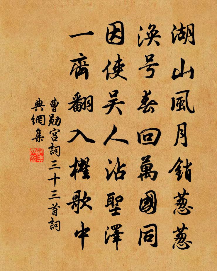 詩詞名句歷史字典書法欣賞書法字典國語詞典說文解字康熙字典古漢語字典標 題 作 者 詩 句 宮詞三十三首作者:曹勛 朝代:宋代宮詞三十三首原文湖山風月銷蔥蔥,渙號春回萬國同。因使吳人沾聖澤,一齊翻入櫂歌中。詩詞問答問:宮詞三十三首的作者是誰?答:曹勛問:宮詞三十三首寫於哪個朝代?答:宋代曹勛宮詞三十三首書法欣賞宮詞三十三首書法作品詩詞推薦廬山獨夜徐凝〔唐代〕寒空五老雪,斜月九江雲。鐘聲知何處,蒼蒼樹里聞。鷗渚亭次韻茂洪西湖三詩張鎡〔宋代〕出城猶記四年前,朝看西湖到暮煙。自有南湖相暖熱,可曾頻過六橋邊。促織蘇軾〔宋代〕月叢號耿耿,露葉泣漙漙。夜長不自暖,那憂公子寒。宋正紀輓詞二首郭印〔宋代〕姻好通來十八春,酒杯詩卷最相親。休心失約尋真侶,轉首誰知作古人。庵畔松篁長泣雨,室中書史暗凝塵。我嘗雜興陸游〔宋代〕瞿聃揚墨寧非學,治獄行兵亦有師。惟是儒生知擇術,百年窮達守書詩。騷詞二章釋善珍〔宋代〕山曇曇兮起雲,山浪浪兮流水。神何為兮山中,豈懷忠兮放棄。沃牛炙兮療飢,挈壺兮荷鍤隨之,生不封侯兮死何六州歌頭(淵明祠)袁去華〔宋代〕柴桑高隱,邱壑歲寒姿。北窗下,羲黃上,古人期。俗人疑。束帶真難事,賦歸去,吾廬好,斜川路,攜筇杖,看吊赤水李先生徐夤〔唐代〕三年悲過隙,一室類銷冰。妻病入仙觀,子窮隨岳僧。荒丘寒有雨,古屋夜無燈。往日清猷著,金門幾欲征。破榴施樞〔宋代〕峰殼盈盈萬顆珠,潤於瑪瑙浸冰壺。吟心先自清如水,嚼了寒霜骨更臞。奉酬楊侍郎丈因送八叔拾遺戲贈詔追南來諸賓二首柳宗元〔唐代〕貞一來時送彩箋,一行歸雁慰驚弦。翰林寂寞誰為主,鳴鳳應須早上天。一生判卻歸休,謂著南冠到頭。冶長雖解八絕詩歸雲洞王禹偁〔宋代〕碧洞何眈眈,呀然倚山根。朝雲出如嘔,暮雲歸如吞。大塊氣不死,茲為玄牝門。怪石攡左右,勢若貙虎蹲。旁行喜遷鶯俞文豹〔宋代〕小梅幽絕。向冰谷深深,雲陰冪冪。飽閱年華,慣諳冷淡,只恁清臞風骨。任他萬紅千紫,句引狂蜂游蝶。惟只共三日侍華光殿曲水宴代人應詔詩 十謝朓〔南北朝〕天地既成。泉流既清。薄暮沾幸。屬奉文明。將標齊配。刻掃秦京。願馳龍漠。飲馬懸旌。二神峰陳岩〔宋代〕伯仲怡然意甚真,齊肩握手笑相親。雲陰解駮排空立,秀出人間棣萼春。中谷有蓷佚名〔先秦〕中谷有蓷,暵其乾矣。有女仳離,嘅其嘆矣。嘅其嘆矣,遇人之艱難矣!中谷有蓷,暵其修矣。有女仳離,條其嘯詠棋子贈弈僧張喬〔唐代〕黑白誰能用入玄,千回生死體方圓。空門說得恆沙劫,應笑終年為一先。八翁十首張載〔宋代〕青牛西去伯陽翁,當年夫子嘆猶龍。立言為恐真風喪,豈知言立喪真風。玉繡球花董嗣杲〔宋代〕潔身自擁翠枝寒,遺得春魂寄素顏。夜月曳光凝絕徑,晚風拋影入空關。幾團白雲能嬌膩,五色流蘇只等閒。宛似赴霅任君有詩相送仍懷舊賞因次其韻梅堯臣〔宋代〕湖山饒邃處,曾省牧之游。雁落葑田闊,船過菱渚秋。野煙昏古寺,波影動危樓。到日尋題墨,猶應舊壁留。頌古三十二首釋明辯〔宋代〕打起黃鶯兒,莫教枝上啼。幾回驚妾夢,不得到遼西。名句推薦不在其位,不謀其政。孔子弟子《論語·泰伯篇》 迴廊四合掩寂寞,碧鸚鵡對紅薔薇。李商隱《日射》 空山不見人,但聞人語響。王維《鹿柴》 料黛眉重鎖隋堤,芳心還動梁苑。盧祖皋《宴清都·初春》 人生若只如初見,何事秋風悲畫扇。納蘭性德《木蘭花·擬古決絕詞柬友》 天朗氣清,惠風和暢王羲之《蘭亭集序 / 蘭亭序》 喜傳語者,不可與語。好議事者,不可圖事。陳繼儒《小窗幽記·集醒篇》 客心已百念,孤游重千里。何遜《相送》 君子不自大其事,不自尚其功戴聖《禮記·表記》 物莫非指,而指非指。公孫龍《公孫龍子·指物論》