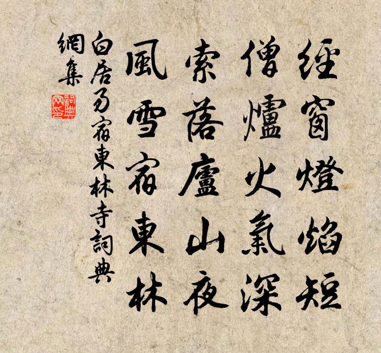 經窗燈焰短,僧爐火氣深。索落廬山夜,風雪宿東林。