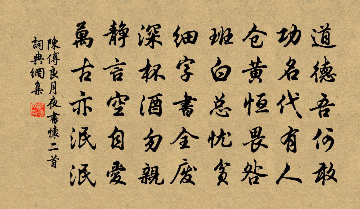 詩詞名句歷史字典書法欣賞書法字典國語詞典說文解字康熙字典古漢語字典標 題 作 者 詩 句 月夜書懷二首作者:陳傅良 朝代:宋代月夜書懷二首原文道德吾何敢,功名代有人。倉黃恆畏咎,班白總憂貧。細字書全廢,深杯酒勿親。靜言空自愛,萬古亦泯泯。詩詞問答問:月夜書懷二首的作者是誰?答:陳傅良問:月夜書懷二首寫於哪個朝代?答:宋代陳傅良月夜書懷二首書法欣賞月夜書懷二首書法作品詩詞推薦題太湖竹軒王之道〔宋代〕粉節儲霜競出籬,我來猶及筍生時。清風一榻君休問,明月半窗予自知。和張王臣登清斯亭韻三首廖行之〔宋代〕一夜寒窗剪燭花,細尋詩派憶京華。愛人慾贈兩溪竹,弔古誰荒大澤葭。味永黃雞羹苦菜,香清瀋水著榠樝。拈來送林道會歸平陽王朝佐〔宋代〕研硃點易已多年,洞底煙霞別有天。千里漫來騎只鶴,一官歸去領群仙。藥爐暖養燒丹火,茶灶晴分瀹茗泉。安得野行白居易〔唐代〕草潤衫襟重,沙乾屐齒輕。仰頭聽鳥立,信腳望花行。暇日無公事,衰年有道情。浮生短於夢,夢裡莫營營。酒肆行韋應物〔唐代〕豪家沽酒長安陌,一旦起樓高百尺。碧疏玲瓏含春風,銀題彩幟邀上客。回瞻丹鳳闕,直視樂游苑。四方稱賞名已與謬栓法同行口占分水嶺詩駱羅憲〔宋代〕盡道今年雨意稠,踏歌芒時偏東疇。微官祗有半豐願,一飽高眠萬事休。偈頌一百零四首釋紹曇〔宋代〕宿雨初晴,嵐光翠滴。瀑瀉懸崖,雲籠怪石。無位真人,面門出入。淨地上不許狼籍。過秀溪長句曹勛〔宋代〕去年來此上已日,今年重來未寒食。臨溪照影老自羞,慚愧春光尚相識。秀溪何許好春容,最是溪深樹密中。海棠題禪師房王建〔唐代〕浮生不住葉隨風,填海移山總是空。長向人間愁老病,誰來閒坐此房中。早春歸山中舊居(一作寓居有懷呈舊知)薛能〔唐代〕綠草閉閒院,悄然花正開。新年人未去,戊日燕還來。雨地殘枯沫,燈窗積舊煤。歸田語不忘,樗散料非才。頌古二十七首釋雲賁〔宋代〕脫得邊城戍役身,卻來偷賞上園春。御街前畔低聲語,不覺沖他貌事人。郊壇齋宮七首任希夷〔宋代〕玉津宏建中興初,禁籞風光勝兩都。慚愧逢辰瞻蠖滬,卻民歸老臥廜{外廣內穌}用韻寄孫推官二首趙蕃〔宋代〕淚垢悲啼失母雛,可思營室共銜蕪。未能因事賦歸去,尚此折腰成走趨。豈謂微官堪顧藉,不難征路指虛無。重輕送侄孫周上人歸剡余亦入吳門釋行海〔宋代〕兩年相伴白雲間,一棹秋風又獨還。目斷江南無過雁,小樓寂寞對青山。楊秘監補外贈送張鎡〔宋代〕止是尋常月,今宵不愛明。江邊有歸客,都下減詩情。上自憐公直,人知暫此行。賢郎先返舍,應喜候門迎。哭護國上人張謂〔唐代〕昔喜三身淨,今悲萬劫長。不應歸北斗,應是向西方。舍利眾生得,袈裟弟子將。鼠行殘藥碗,蟲網舊繩床。別起奉和御製恭謝南郊夏竦〔宋代〕高真降佑開鴻業,哲後祈褫福下民。靖館齋心成鉅典,嘉壇報貺奉嚴禋。時遵夏曆春當孟,禮憲周郊日在辛。圖籙寄宣州鄭諫議杜牧〔唐代〕大夫官重醉江東,瀟灑名儒振古風。文石陛前辭聖主,碧雲天外作冥鴻。五言寧謝顏光祿,百歲須齊衛武公。再拜宿劉行首家作二首釋道濟〔宋代〕暫假夫妻一宿眠,禪心淫慾不相連。昨宵姑順君台意,多與虔婆五貫錢。陪駕幸終南山和宇文內史詩庾信〔南北朝〕玉山乘四載。瑤池宴八龍。黿橋浮少海。鵠蓋上中峰。飛狐橫塞路。白馬當河沖。水奠三川石。山封五樹松。長虹名句推薦攜來百侶曾游,憶往昔崢嶸歲月稠。 * 《沁園春·長沙》 尊卑失序,如冠履倒置;富貴不歸,如錦衣夜行。程登吉《幼學瓊林·卷二·衣服》 半夜倚喬松,不覺滿衣雪。孟郊《苦寒吟》 知者樂水,仁者樂山。孔子弟子《論語·雍也篇》 此地一為別,孤蓬萬里征。李白《送友人》 菊花何太苦,遭此兩重陽?李白《九月十日即事》 斷虹霽雨,淨秋空,山染修眉新綠。黃庭堅《念奴嬌·斷虹霽雨》 酌酒會臨泉水,抱琴好倚長松。王維《田園樂七首·其七》 昨別今已春,鬢絲生幾縷。韋應物《長安遇馮著》 林壑斂暝色,雲霞收夕霏。謝靈運《石壁精舍還湖中作》