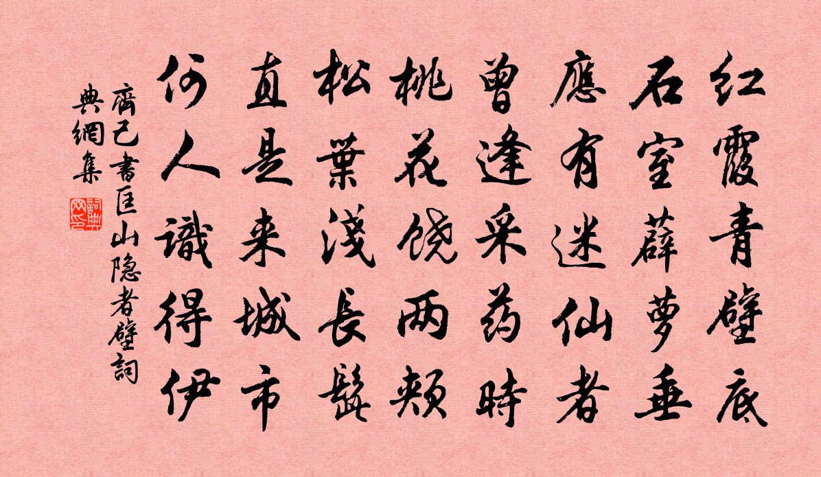 紅霞青壁底,石室薜蘿垂。應有迷仙者,曾逢採藥時。