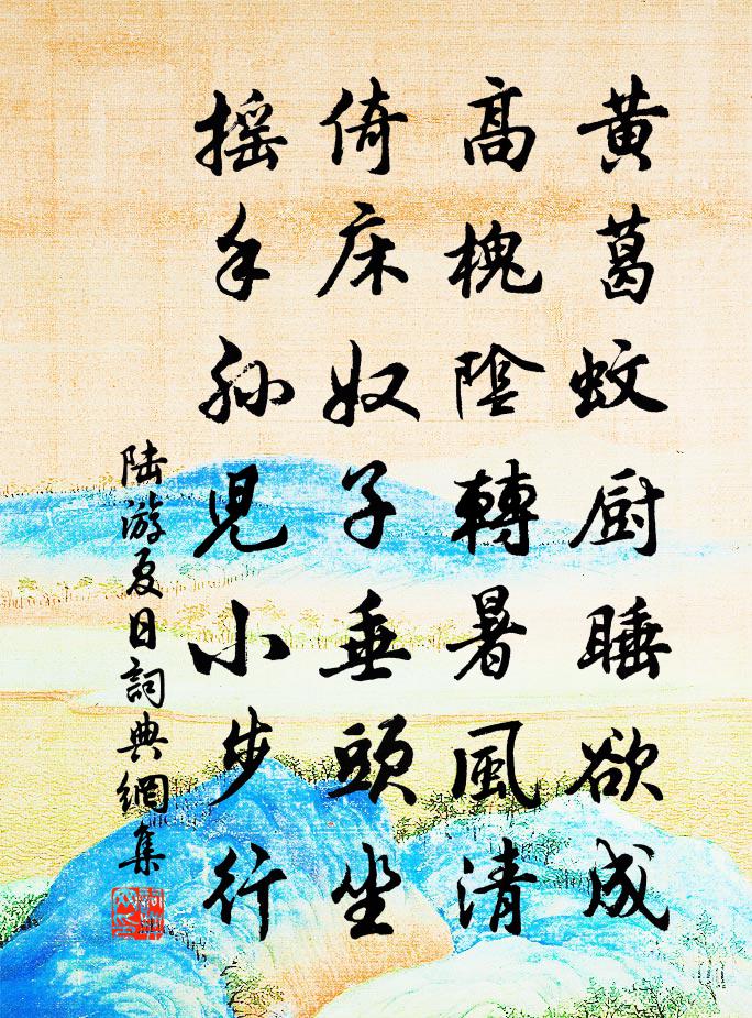 詩詞名句歷史字典書法欣賞書法字典國語詞典說文解字康熙字典古漢語字典標 題 作 者 詩 句 夏日作者:陸游 朝代:宋代夏日原文黃葛蚊廚睡欲成,高槐陰轉暑風清。倚床奴子垂頭坐,搖手孫兒小步行。詩詞問答問:夏日的作者是誰?答:陸游問:夏日寫於哪個朝代?答:宋代問:陸游的名句有哪些?答:陸游名句大全陸游夏日書法欣賞夏日書法作品詩詞推薦過鼎澧胡寅〔宋代〕沅澧春風拂馬鞭,客愁何事四無邊。於今榛棘三州地,自昔坻京百姓天。安得鳴雞連比屋,空餘歸雁落平川。一觴被衣為齧缺歌佚名〔先秦〕形若槁骸,心若死灰。真其實知,不以故自持。媒媒晦晦,無心而不可謀。彼何人哉!虎丘寺見元相公二年前題名愴然有詠劉禹錫〔唐代〕滻水送君君不還,見君題字虎丘山。因知早貴兼才子,不得多時在世間。聚星堂前紫薇花歐陽修〔宋代〕亭亭紫薇花,向我如有意。高煙晚溟濛,清露晨點綴。豈無陽春月,所得時節異。靜女不爭寵,幽姿如自喜。將期晉康郡侯面人曾氏輓詩二首李彌遜〔宋代〕身備難半福,心明最上宗。夜台亡宿恨,旦宅漫遺蹤。塵暗魚機帳,雲低馬鬣封。酸風一襟淚,哀人暮山松。荷露烹茶乾隆〔清代〕秋荷葉上露珠流,柄柄傾來盎盎收。白帝精靈青女氣,惠山竹鼎越窯甌。學仙笑彼金盤妄,宜詠欣茲 * 浮。李相用大東萊臨川詩韻示諸兒馬廷鸞〔宋代〕惠子五車書,彼富吾何慊。滔滔歲崢嶸,濯濯木荏苒。前榮悼虛誇,新懦就退斂。東鄰有碩師,簦篋孰雲遠。斯文滿庭芳楊 * 〔宋代〕春過園林,雨餘池沼,嫩荷點點青圓。晝長人靜,芳樹欲生煙。一徑幽通邃竹,松風漱、石齒濺濺。平生志,功名朱村道中趙蕃〔宋代〕綠竹人家近小塘,暮秋村釀熟村場。我行甚亟忘休歇,孤負木犀來往香。詠武安山塔趙蕃〔宋代〕矗矗南山塔,亭亭古邑標。閒遊賒積歲,共宿憶消宵。尖出知天近,層分見木雕。未須輪犢健,直欲便鵬搖。惜牡丹徐夤〔唐代〕今日狂風揭錦筵,預愁吹落夕陽天。閒看紅艷只須醉,謾惜黃金豈是賢。南國好偷夸粉黛,漢宮宜摘贈神仙。良時立春二首強至〔宋代〕待得春來解病顏,東風猶細北風頑。未全青帝行新令,臘去元須浹日間。六一泉徐集孫〔宋代〕惠勤已蛻老歐仙,物逐人非井便乾。不是坡翁重到此,此泉安得到今寒。送張丞歸平江吳儆〔宋代〕來何遲暮去何忙,不道離人慾斷腸。清節如君誰可繼,遺風他日愈難忘。鱸肥酒熟歸時好,水綠山青去興長。便恐偈頌二百零五首釋正覺〔宋代〕生也死也,不道不道。只知憨狗怒逐塊,誰見死蛇驚出草。著眼家林里許看,不萌枝上春陽早。送鮑必達兼寄章季亨趙蕃〔宋代〕人物稱夷白,星文仰少微。常雲馬群盡,乃得雁行飛。天外一再見,客中先後歸。因行謝章子,別久頓書稀。浣溪沙陳允平〔宋代〕一枕華胥夢不成。碧筒香潤玉醪傾。日長花影過池亭。雪藕臂寒鸚較怯,采菱歌發鷺頻驚。白苹洲上雨初晴。詩二首劉望之〔宋代〕歸計墮何許,出溪仍泝流。夢回牛溉路,行到馬湖秋。送陝尉邵國華南歸魏野〔宋代〕召棠陰里邵梅仙,守選南歸路七千。辛苦已傷過嶺外,別離那忍向花前。到京店舍逢新火,度越封疆入瘴煙。相顧小巷舒邦佐〔宋代〕蕭條一徑微,來往覺人稀。忽聽鄰家鬧,歡尋稚子歸。卷書真是懶,添火且相依。強起扶行處,斜陽正滿扉。名句推薦一朝哭都市,淚盡歸田畝。元結《農臣怨》 不經一番寒徹骨,怎得梅花撲鼻香。黃櫱禪師《上堂開示頌》 月華今夜黑,全見梨花白。楊基《菩薩蠻·水晶簾外娟娟月》 慘慘柴門風雪夜,此時有子不如無。黃景仁《別老母》 前事之不忘,後事之師。劉向《戰國策·趙一·張孟談既固趙宗》 一場愁夢酒醒時,斜陽卻照深深院。晏殊《踏莎行·小徑紅稀》 繡嶺宮前鶴髮翁,猶唱開元太平曲李洞《繡嶺宮詞》 攜盤獨出月荒涼,渭城已遠波聲小。李賀《金銅仙人辭漢歌》 浮雲柳絮無根蒂,天地闊遠隨飛揚。韓愈《聽穎師彈琴》 水繞陂田竹繞籬,榆錢落盡槿花稀。張舜民《村居·水繞陂田竹繞籬》