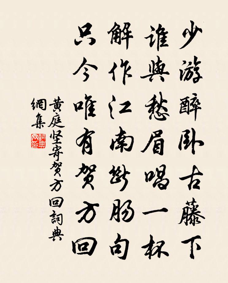 少游醉臥古藤下,誰與愁眉唱一杯。解作江南斷腸句,只今唯有賀方回。